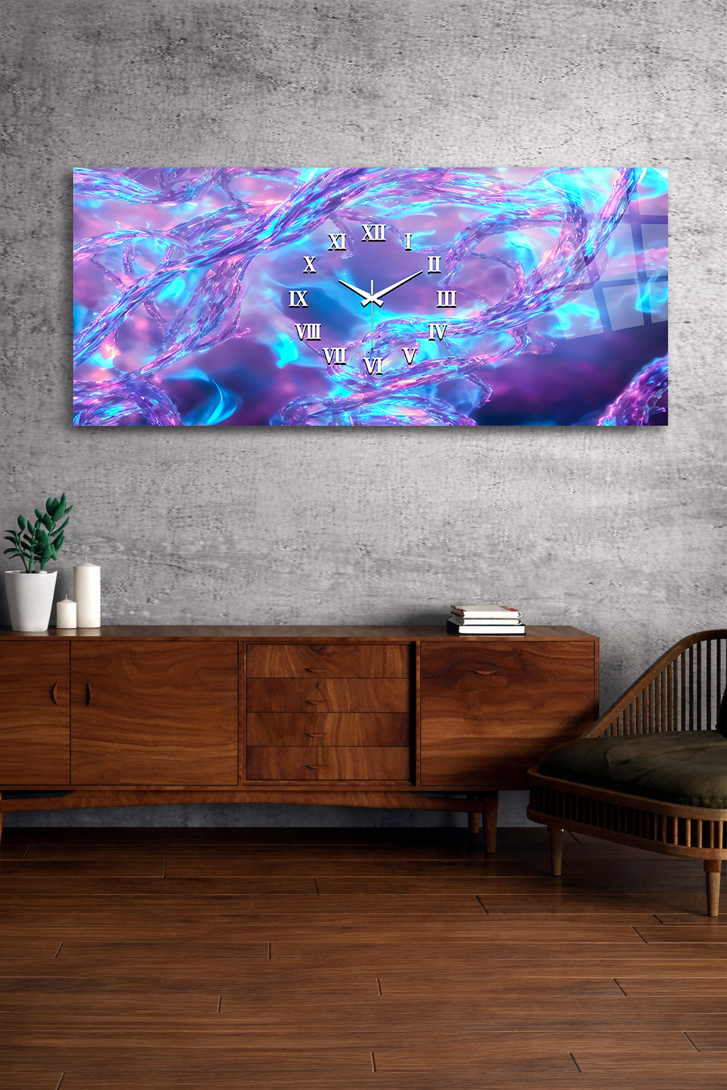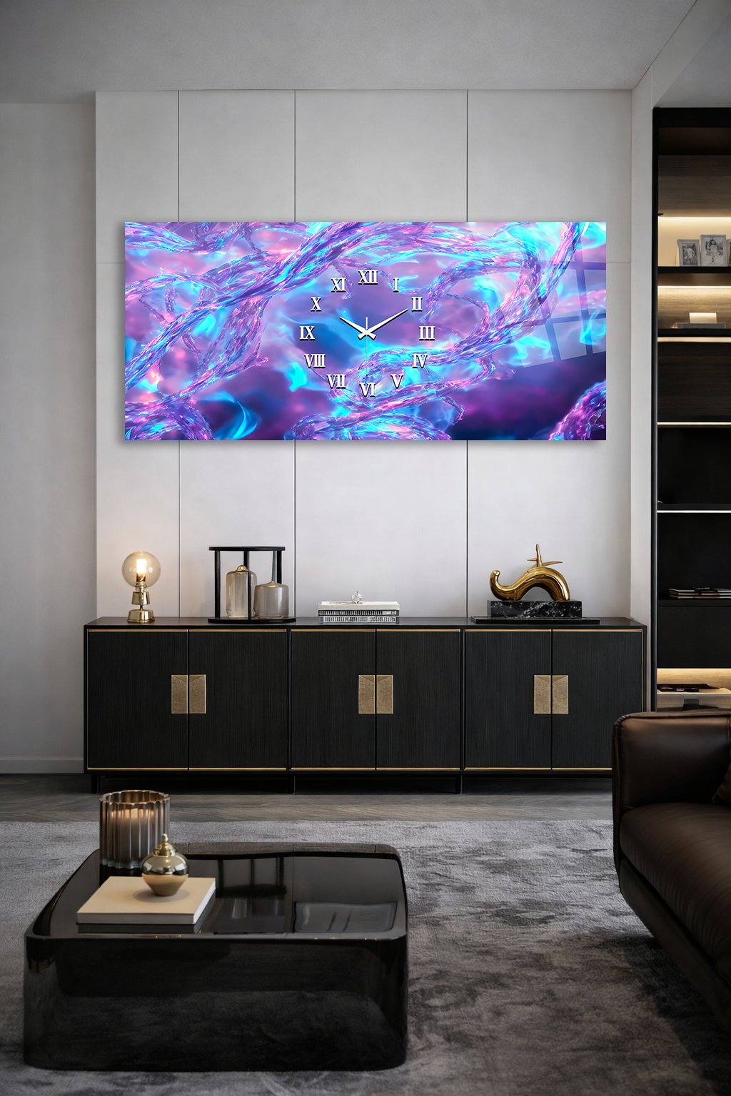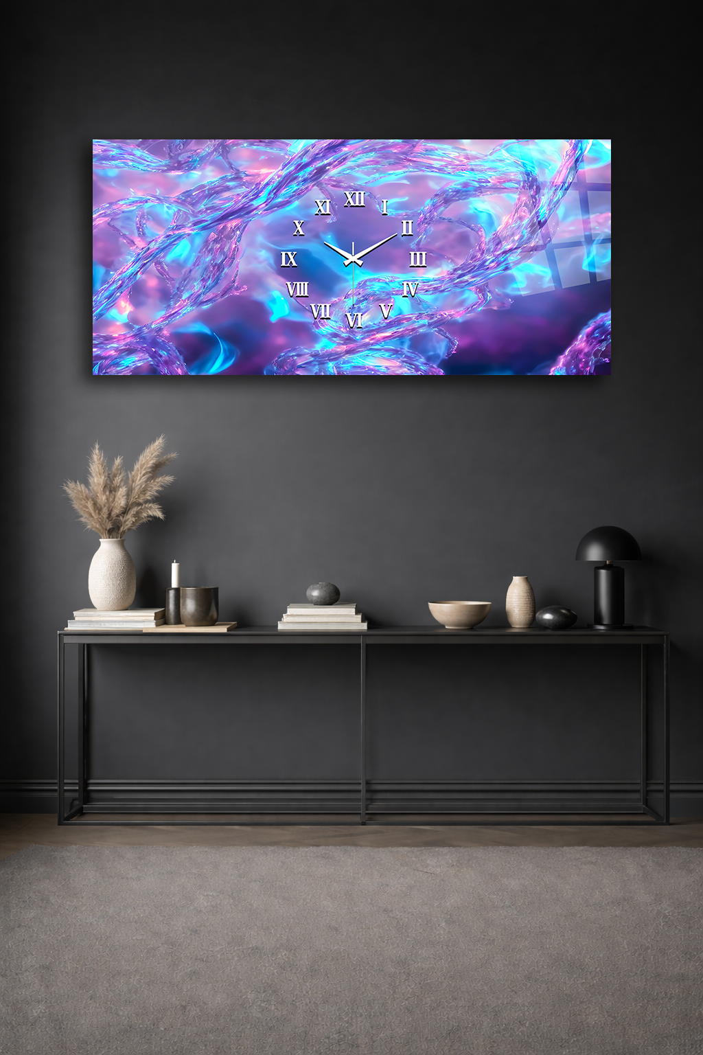 Hem şık bir tablo hem de işlevsel bir saat olarak tasarlanan bu özel ürün, ev ve ofis dekorasyonuna modern bir dokunuş katar.