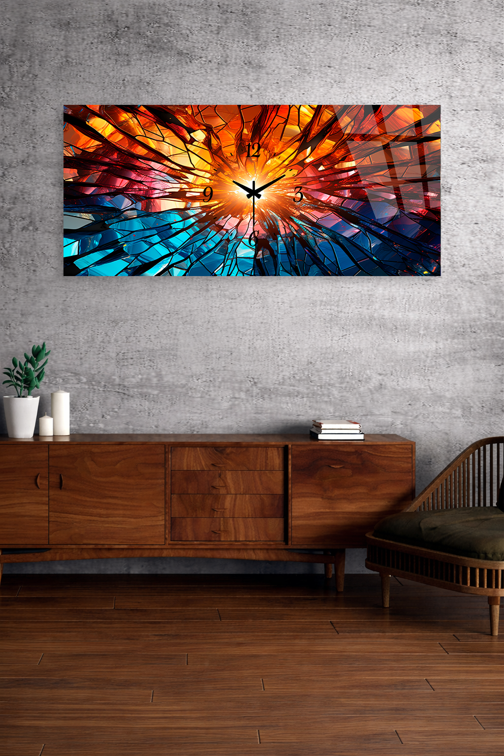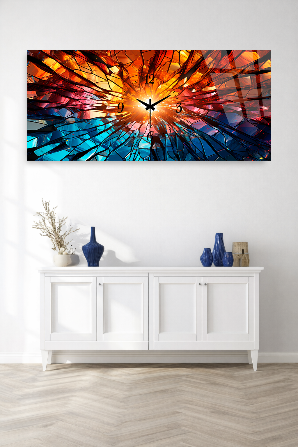 Kırılmaz cam duvar saati, dekoratif tablo görünümü ile zamanı estetikle buluşturur.