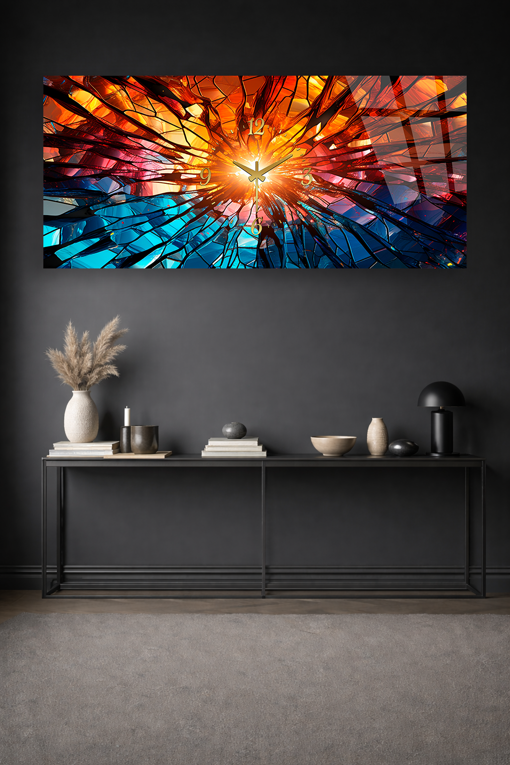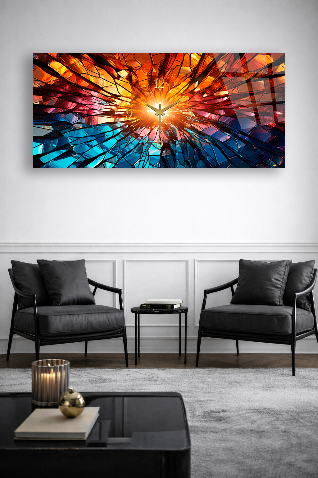 KIRILMAZ CAM DUVAR SAATİ , HEM TABLO HEM SAAT SOYUT RENK PATLAMASI TASARIM EV OFİS HEDİYESİ