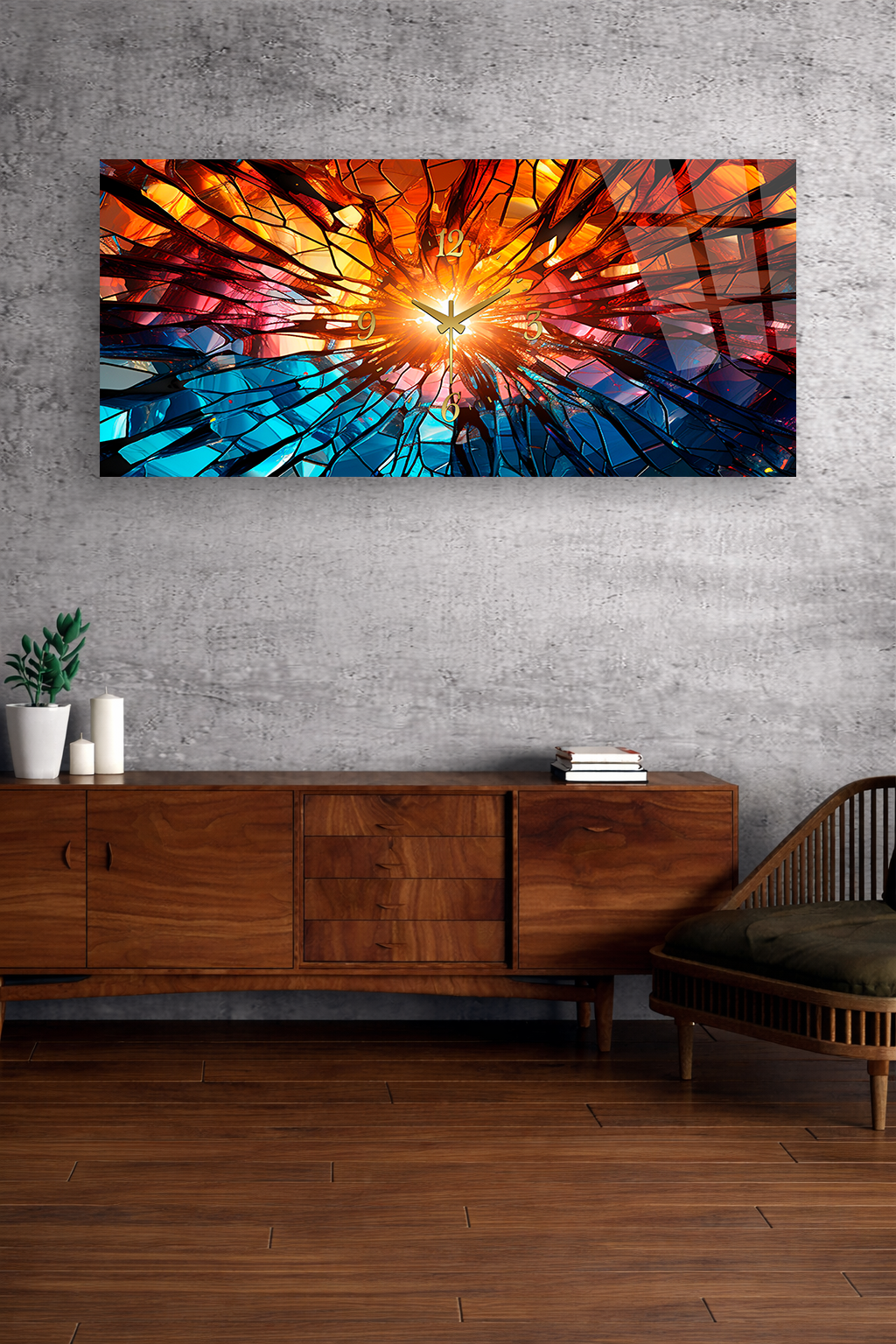 Kırılmaz cam duvar saati, dekoratif tablo görünümü ile zamanı estetikle buluşturur.