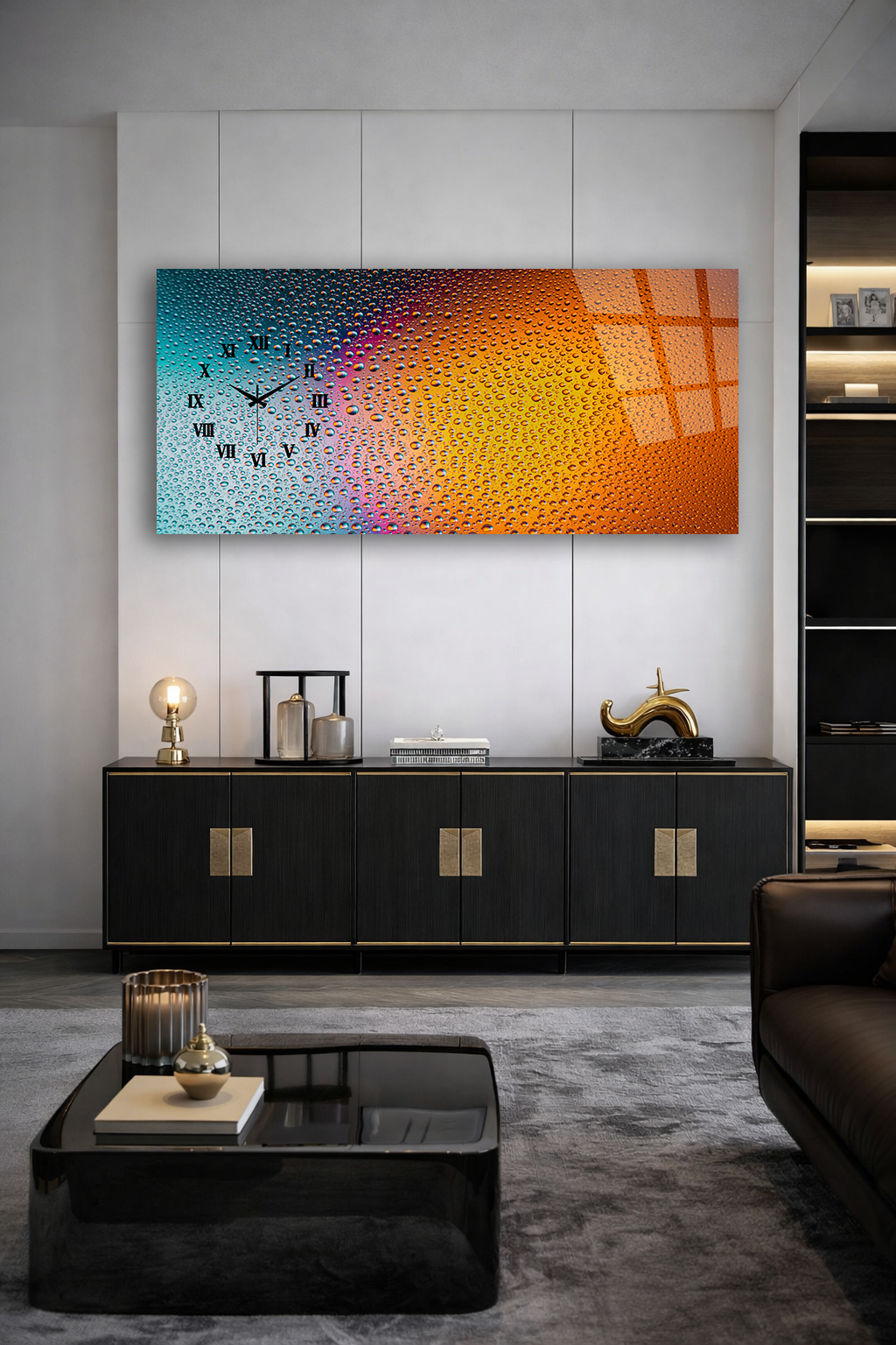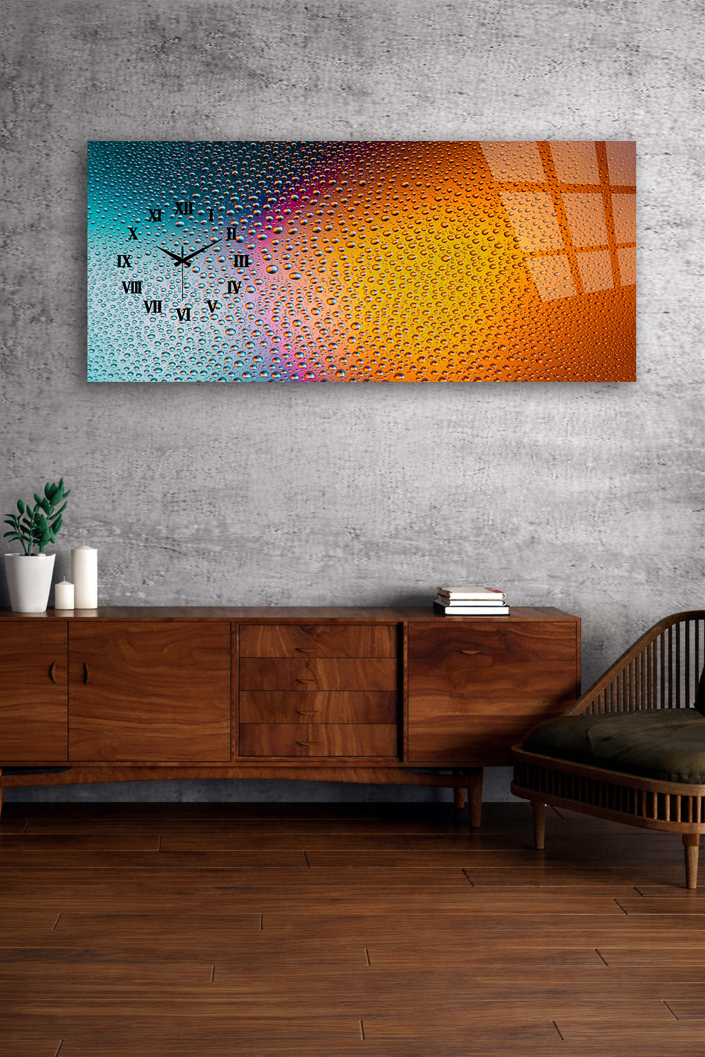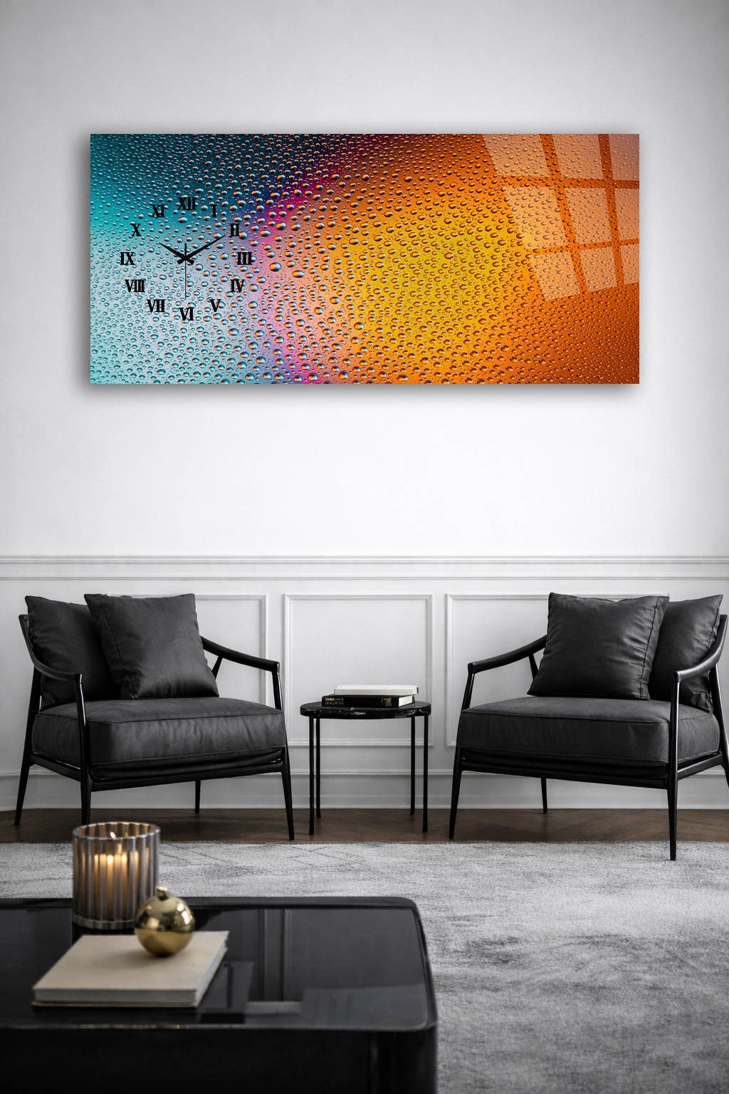 KIRILMAZ CAM DUVAR SAATİ , HEM TABLO HEM SAAT SU DAMLALI RENK GEÇİŞLİ MODERN EV OFİS HEDİYESİ