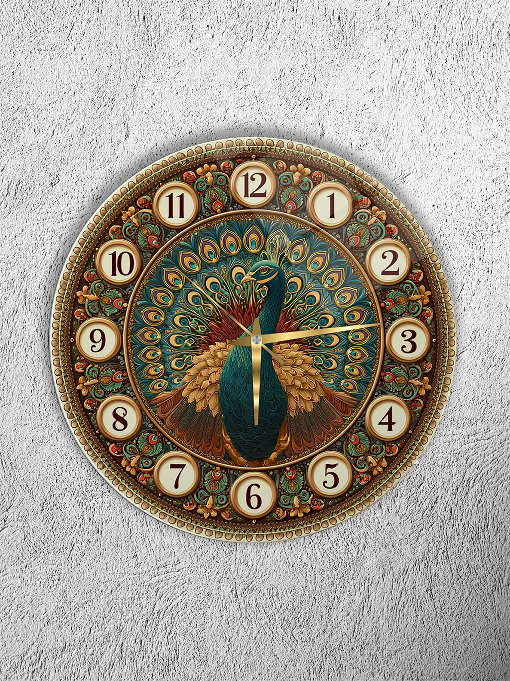 KIRILMAZ CAM DUVAR SAATİ, HEM TABLO HEM SAAT TAVUS KUŞU OSMANLI DESENLİ DEKORATİF EV OFİS HEDİYESİ