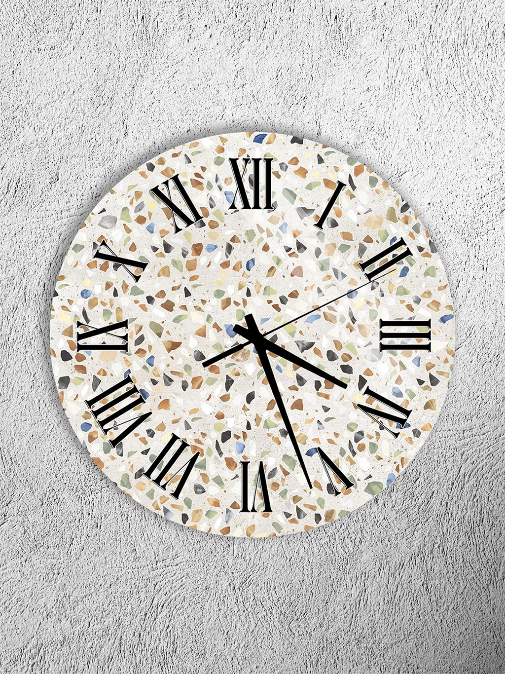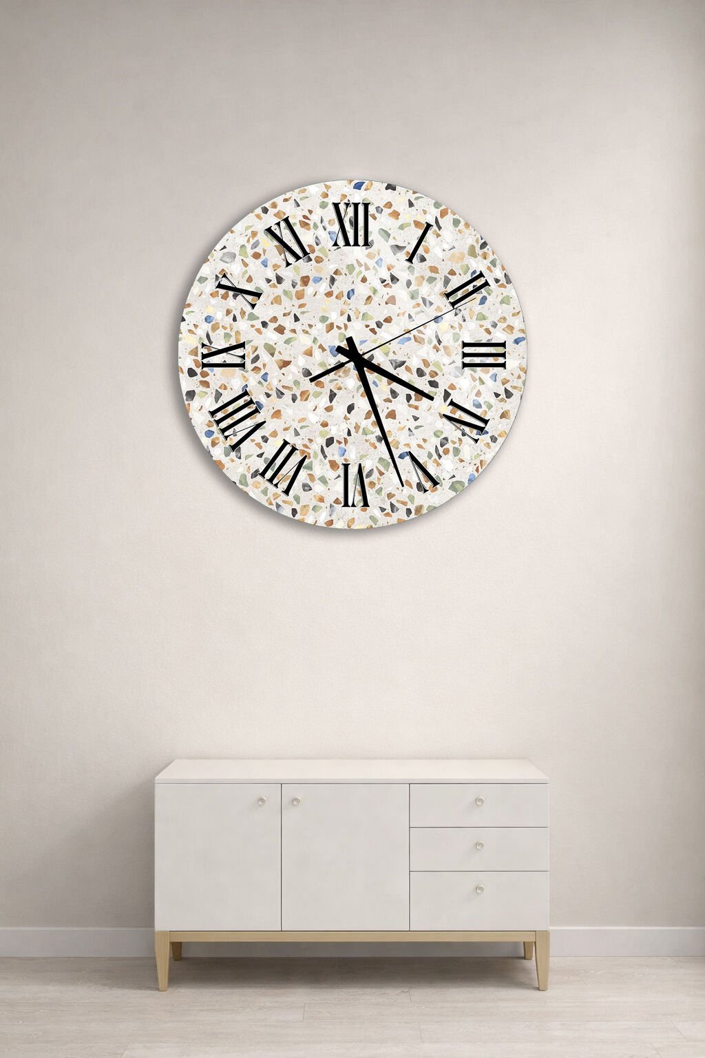 KIRILMAZ CAM DUVAR SAATİ , HEM TABLO HEM SAAT TERRAZZO TAŞ DESENLİ DOĞAL MODERN DEKOR EV OFİS HEDİYESİ