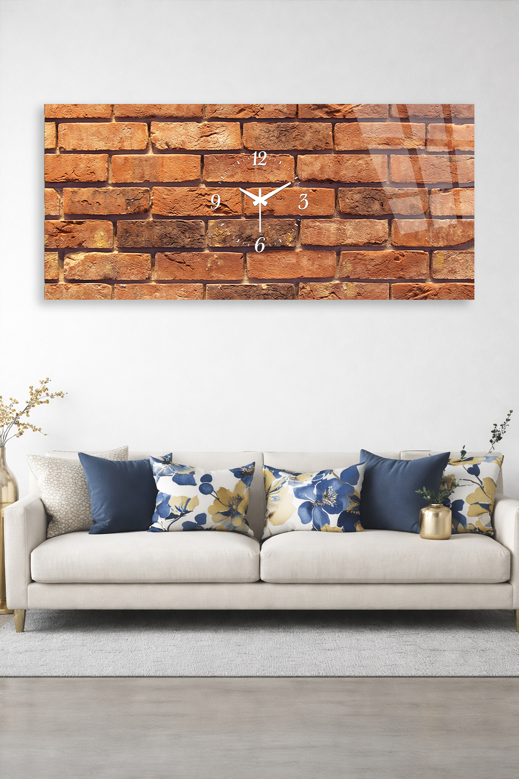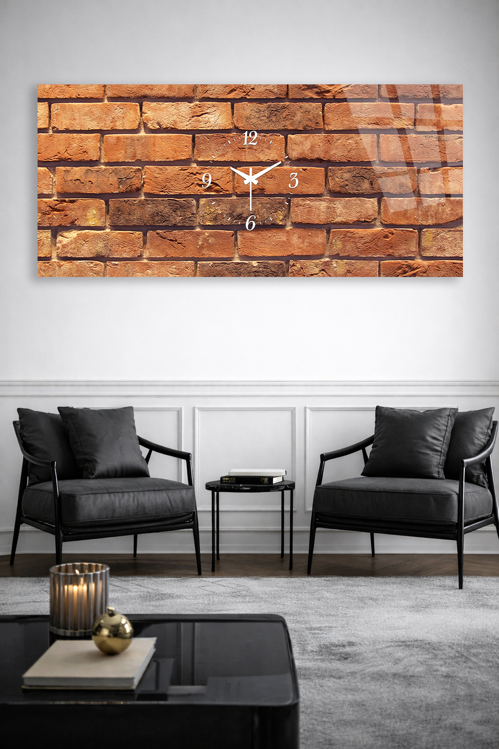 KIRILMAZ CAM DUVAR SAATİ , HEM TABLO HEM SAAT TUĞLA DUVAR DESEN MODERN EV OFİS HEDİYESİ