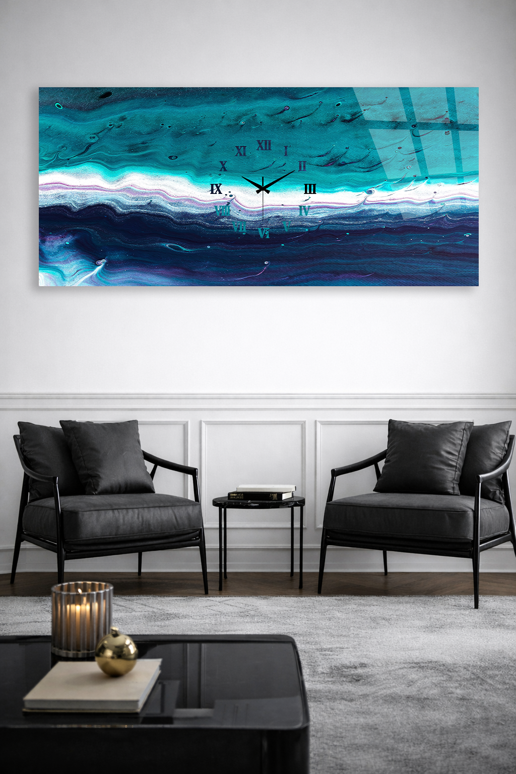 Hem şık bir tablo hem de işlevsel bir saat olarak tasarlanan bu özel ürün, ev ve ofis dekorasyonuna modern bir dokunuş katar.