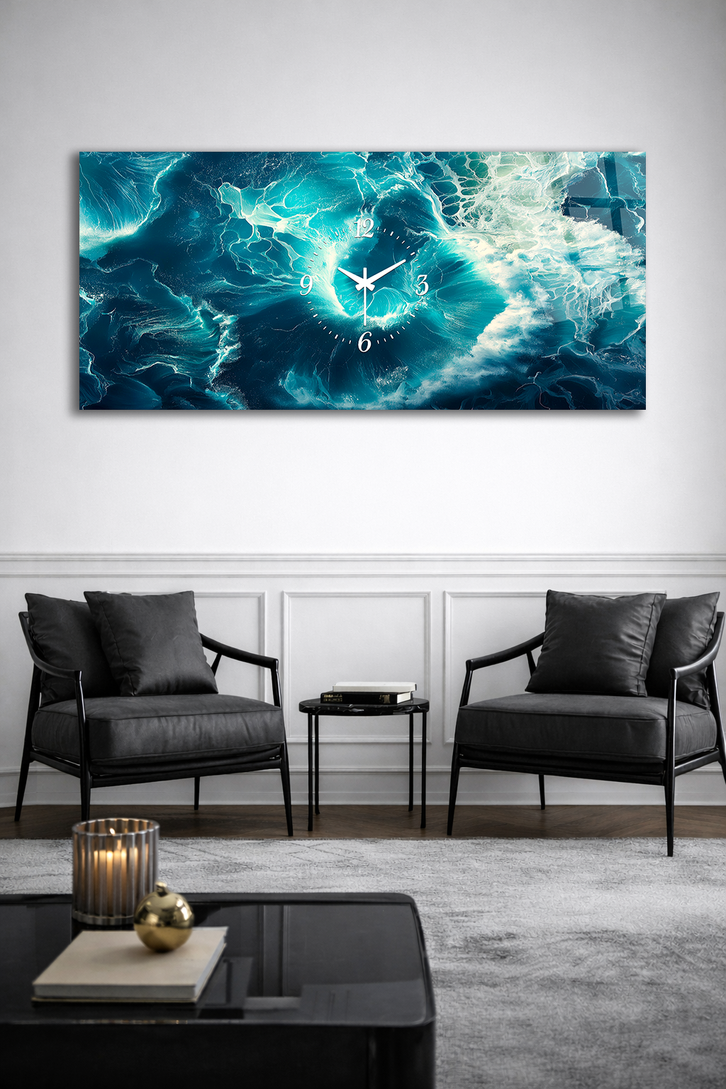Hem şık bir tablo hem de işlevsel bir saat olarak tasarlanan bu özel ürün, ev ve ofis dekorasyonuna modern bir dokunuş katar.