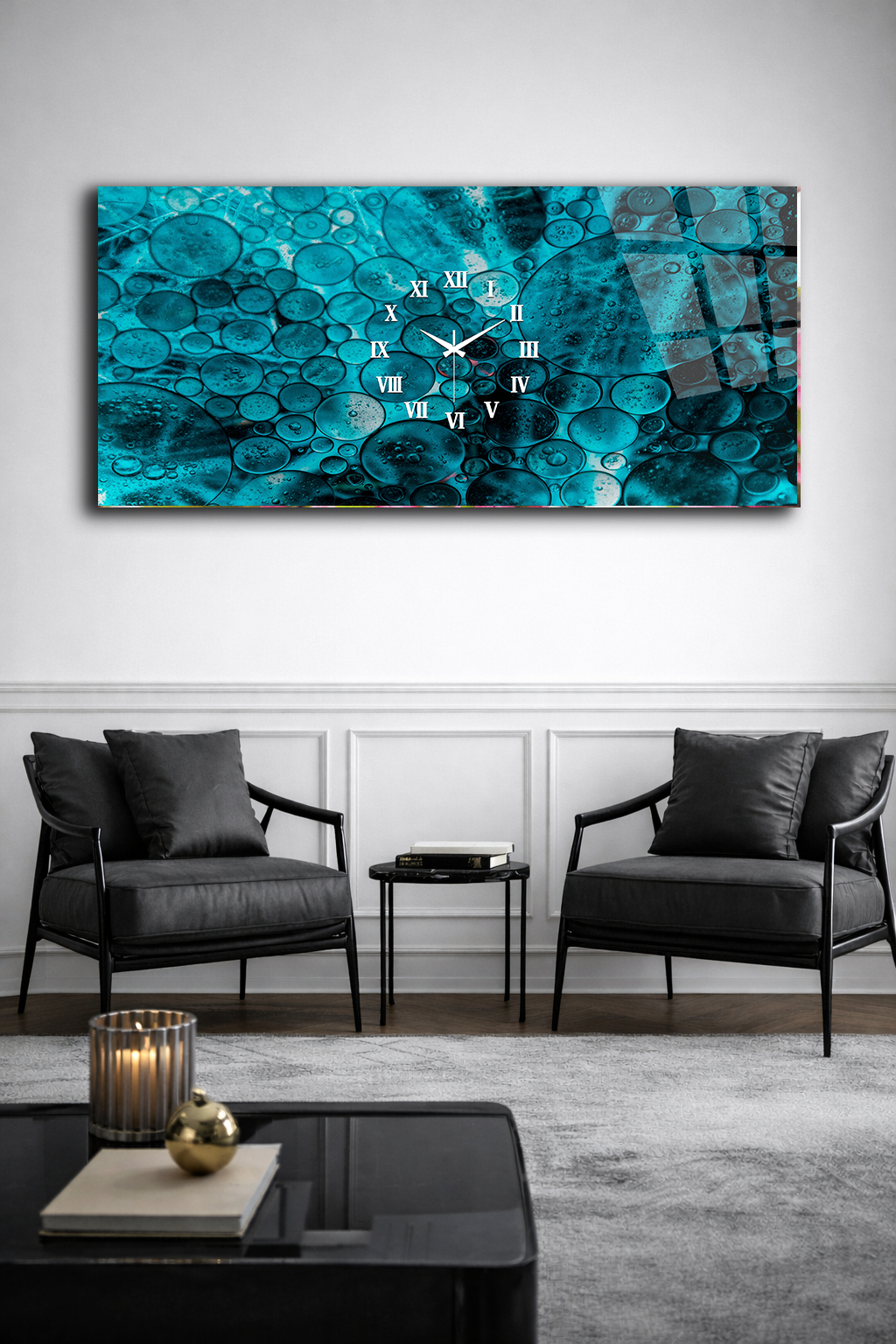 Hem şık bir tablo hem de işlevsel bir saat olarak tasarlanan bu özel ürün, ev ve ofis dekorasyonuna modern bir dokunuş katar.