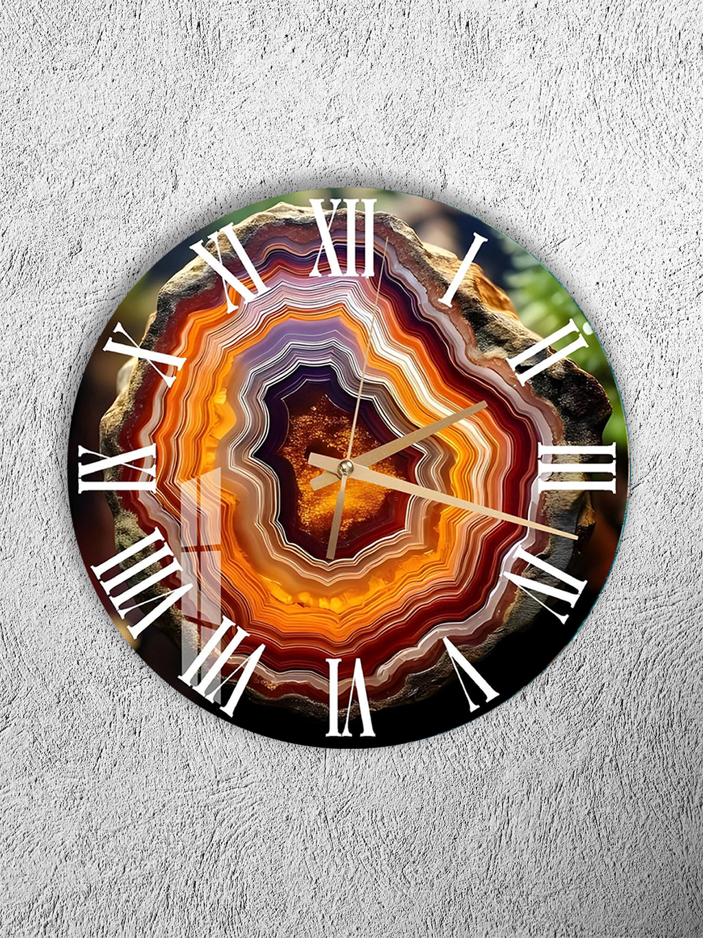 KIRILMAZ CAM DUVAR SAATİ, HEM TABLO HEM SAAT TURUNCU AKİK DOĞAL TAŞ LÜKS TASARIM EV OFİS HEDİYESİ