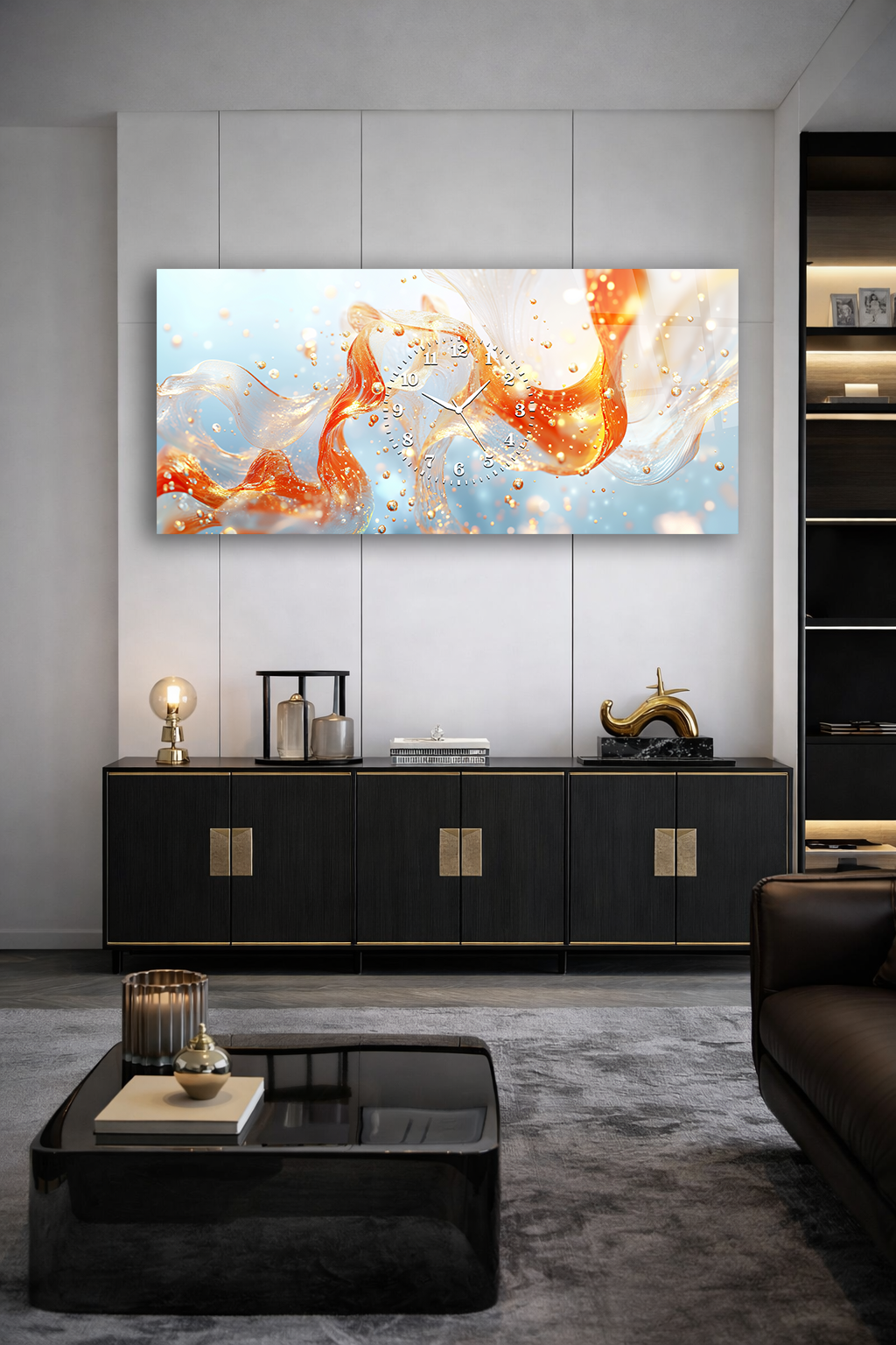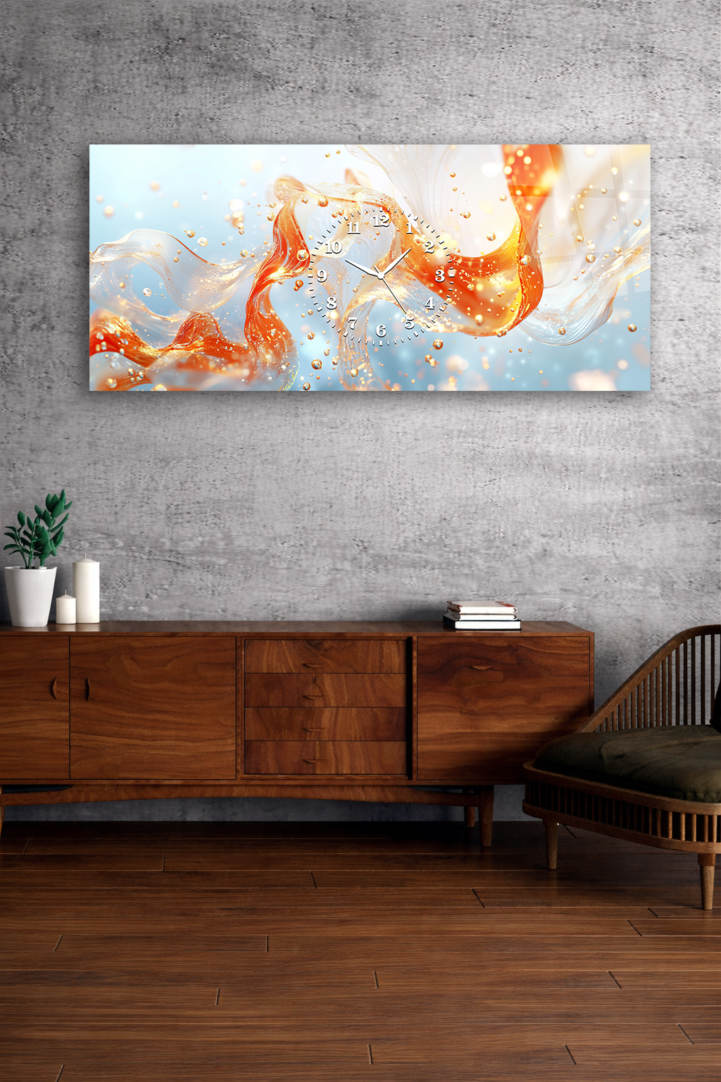 Hem şık bir tablo hem de işlevsel bir saat olarak tasarlanan bu özel ürün, ev ve ofis dekorasyonuna modern bir dokunuş katar.