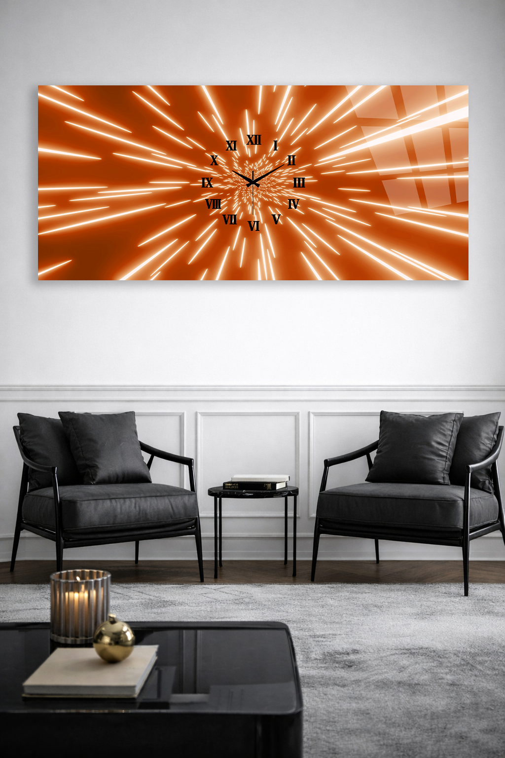 Hem şık bir tablo hem de işlevsel bir saat olarak tasarlanan bu özel ürün, ev ve ofis dekorasyonuna modern bir dokunuş katar.