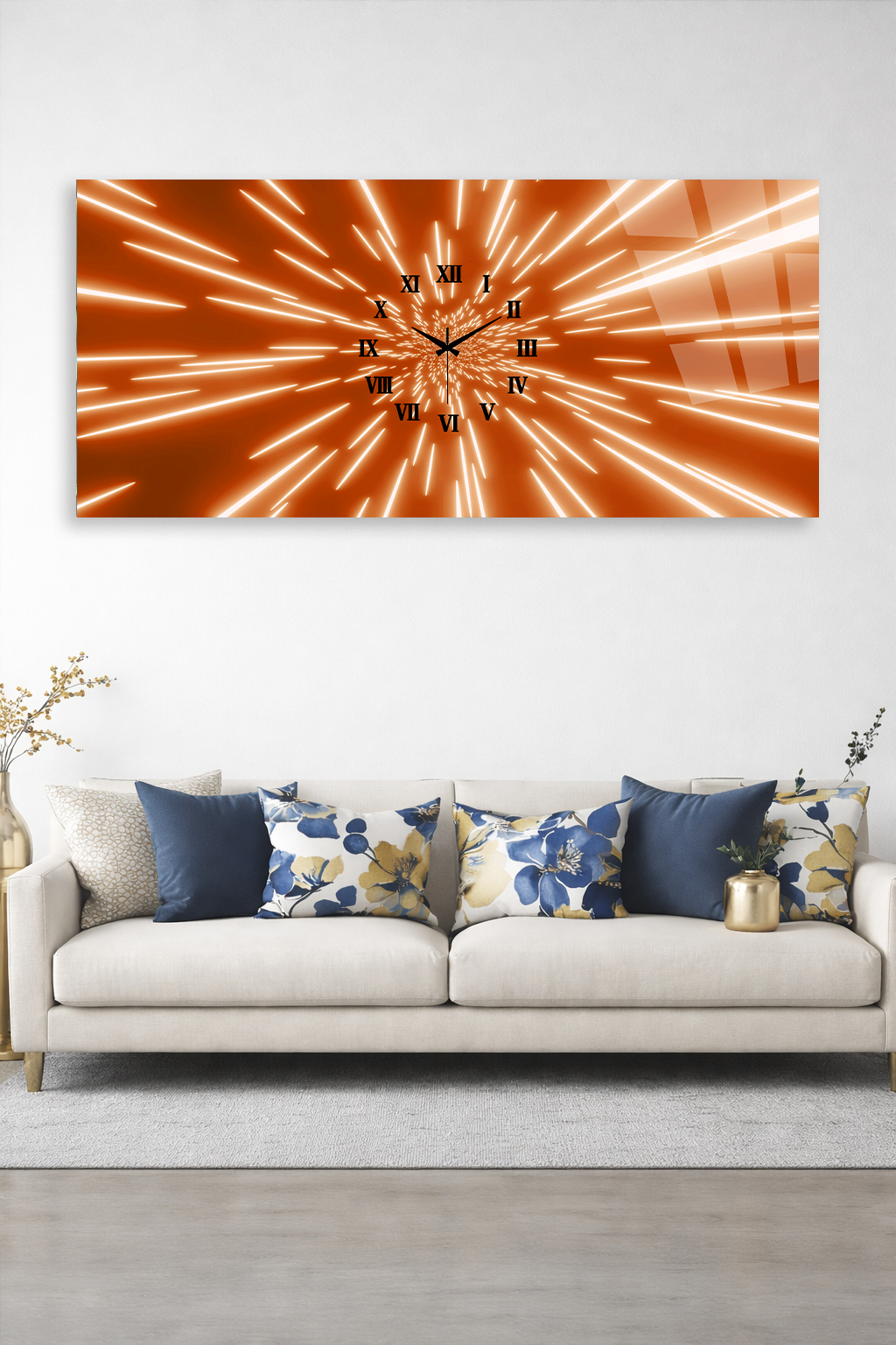 KIRILMAZ CAM DUVAR SAATİ , HEM TABLO HEM SAAT TURUNCU IŞIN EFEKTLİ MODERN EV OFİS HEDİYESİ