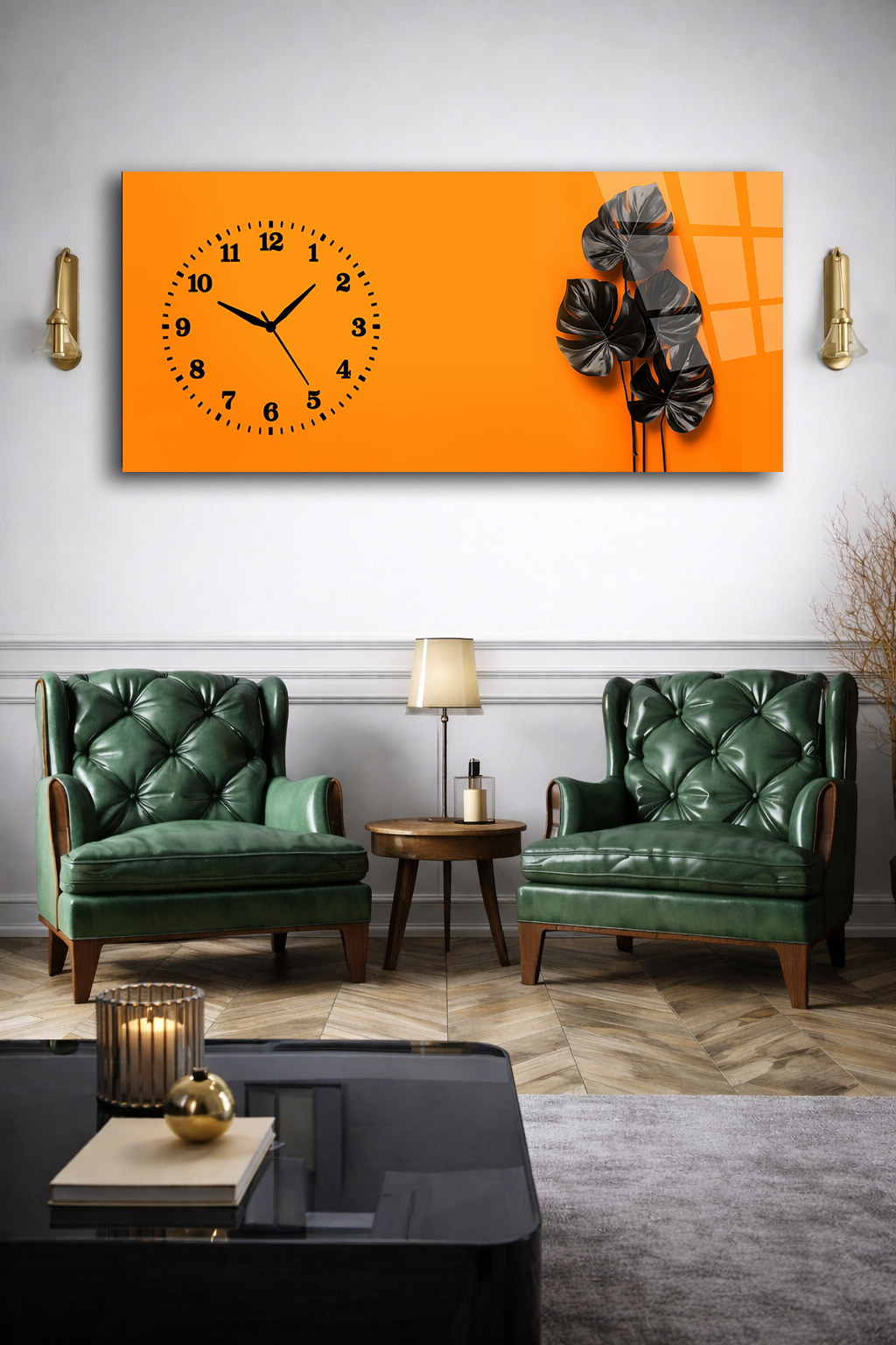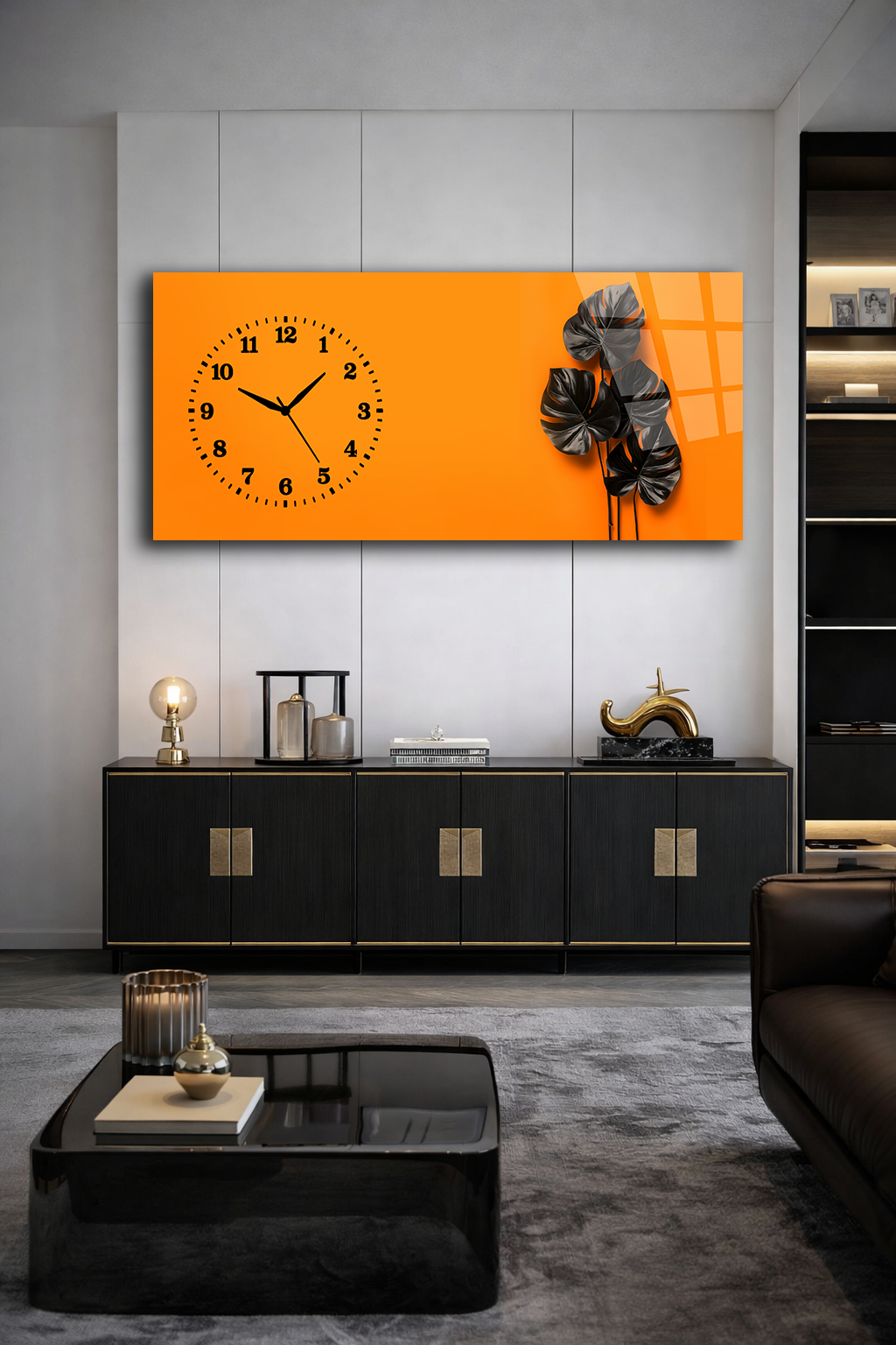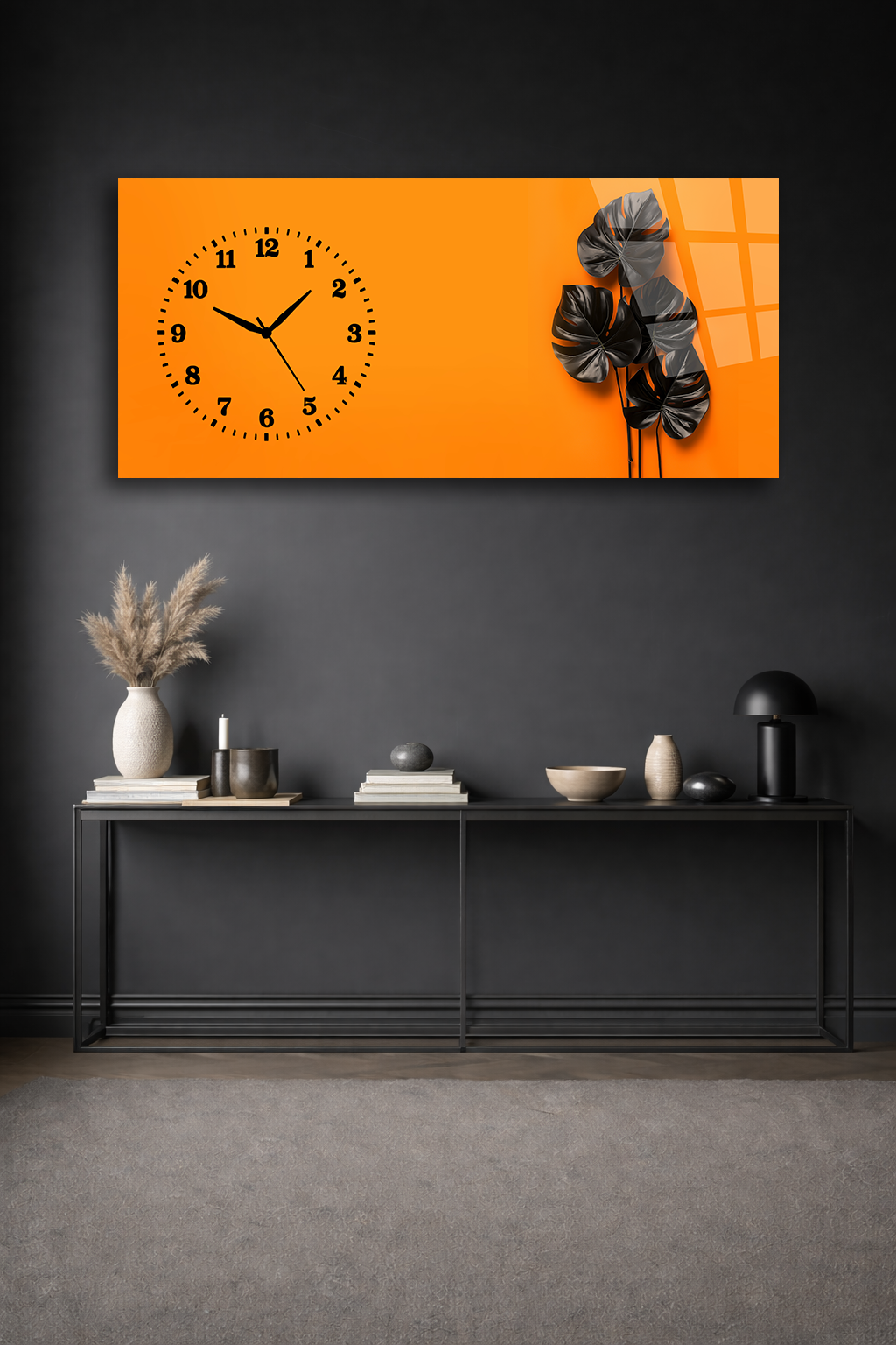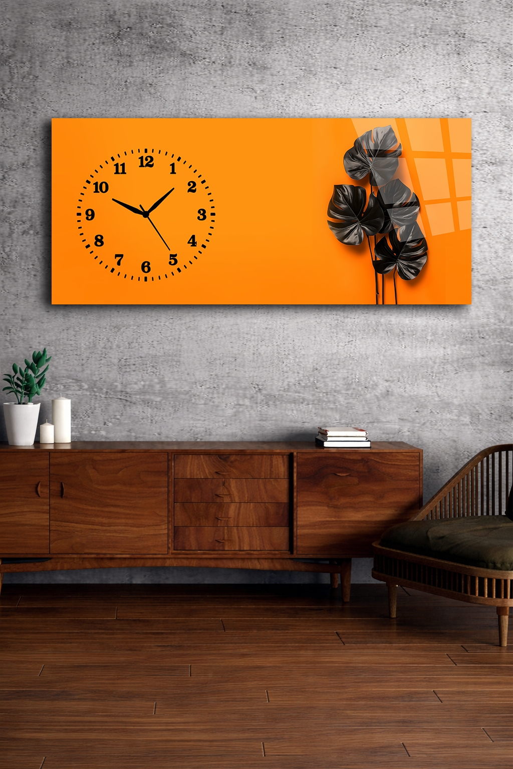 KIRILMAZ CAM DUVAR SAATİ , HEM TABLO HEM SAAT TURUNCU MİNİMAL ÇİÇEK TASARIMI EV OFİS HEDİYESİ