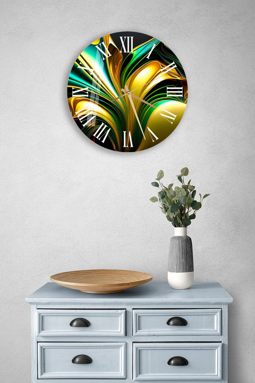 Kırılmaz cam duvar saati, dekoratif tablo görünümü ile zamanı estetikle buluşturur.
