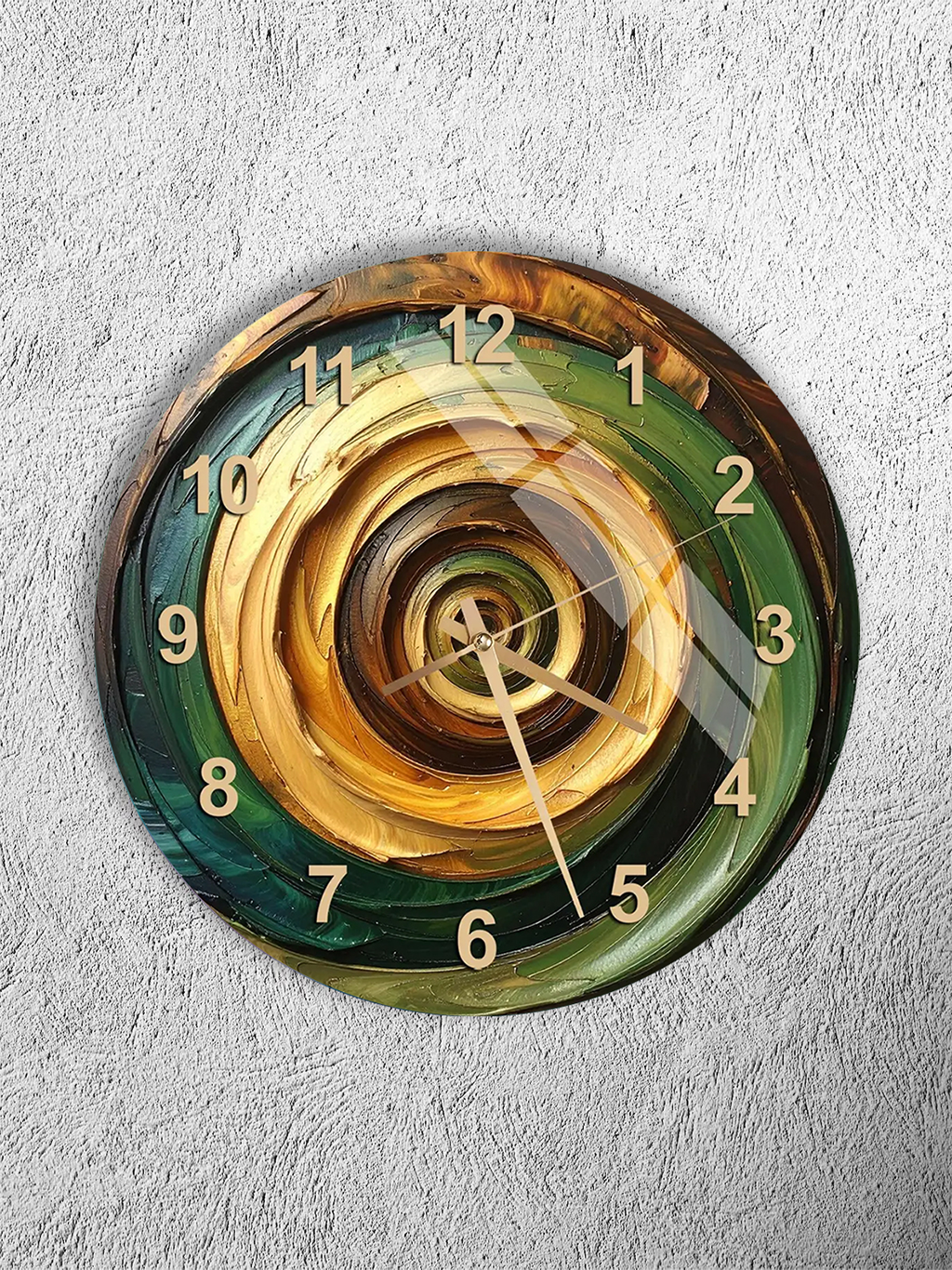 KIRILMAZ CAM DUVAR SAATİ, HEM TABLO HEM SAAT YEŞİL ALTIN SPİRAL ROMA RAKAMLI LÜKS EV OFİS HEDİYESİ