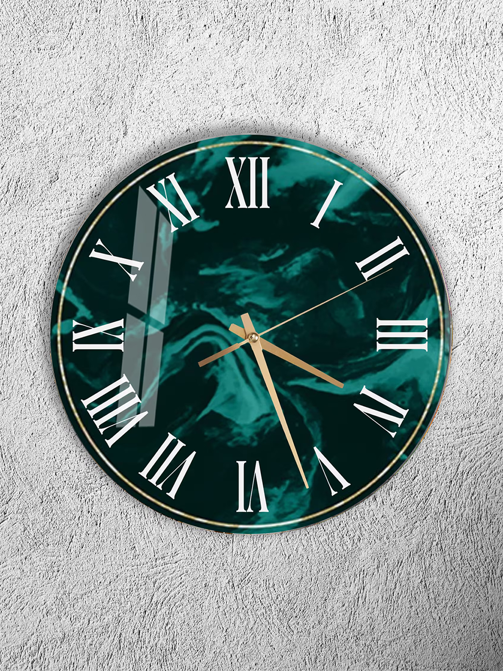 KIRILMAZ CAM DUVAR SAATİ, HEM TABLO HEM SAAT YEŞİL MERMER DESENLİ MODERN TASARIM EV OFİS HEDİYESİ