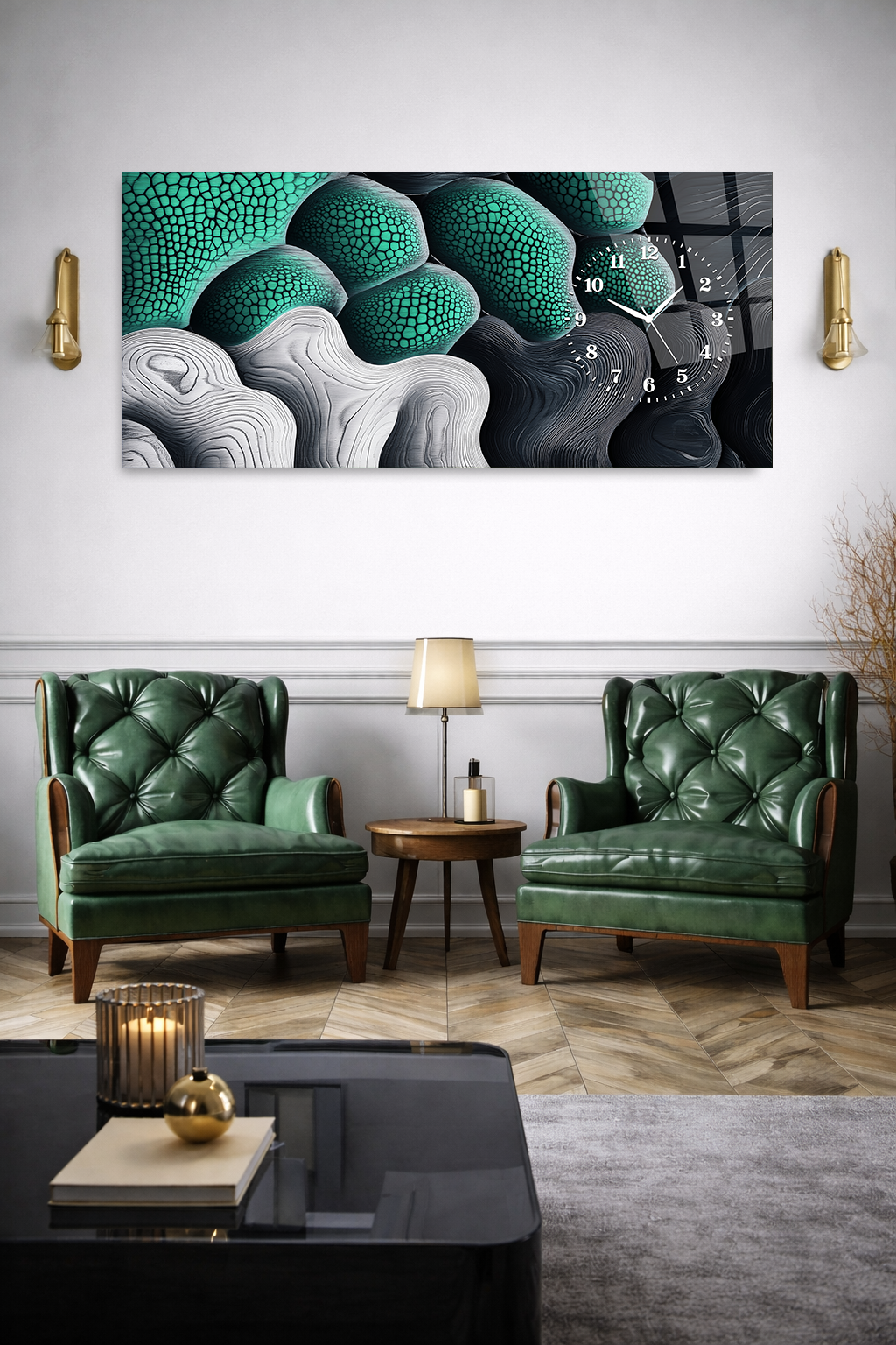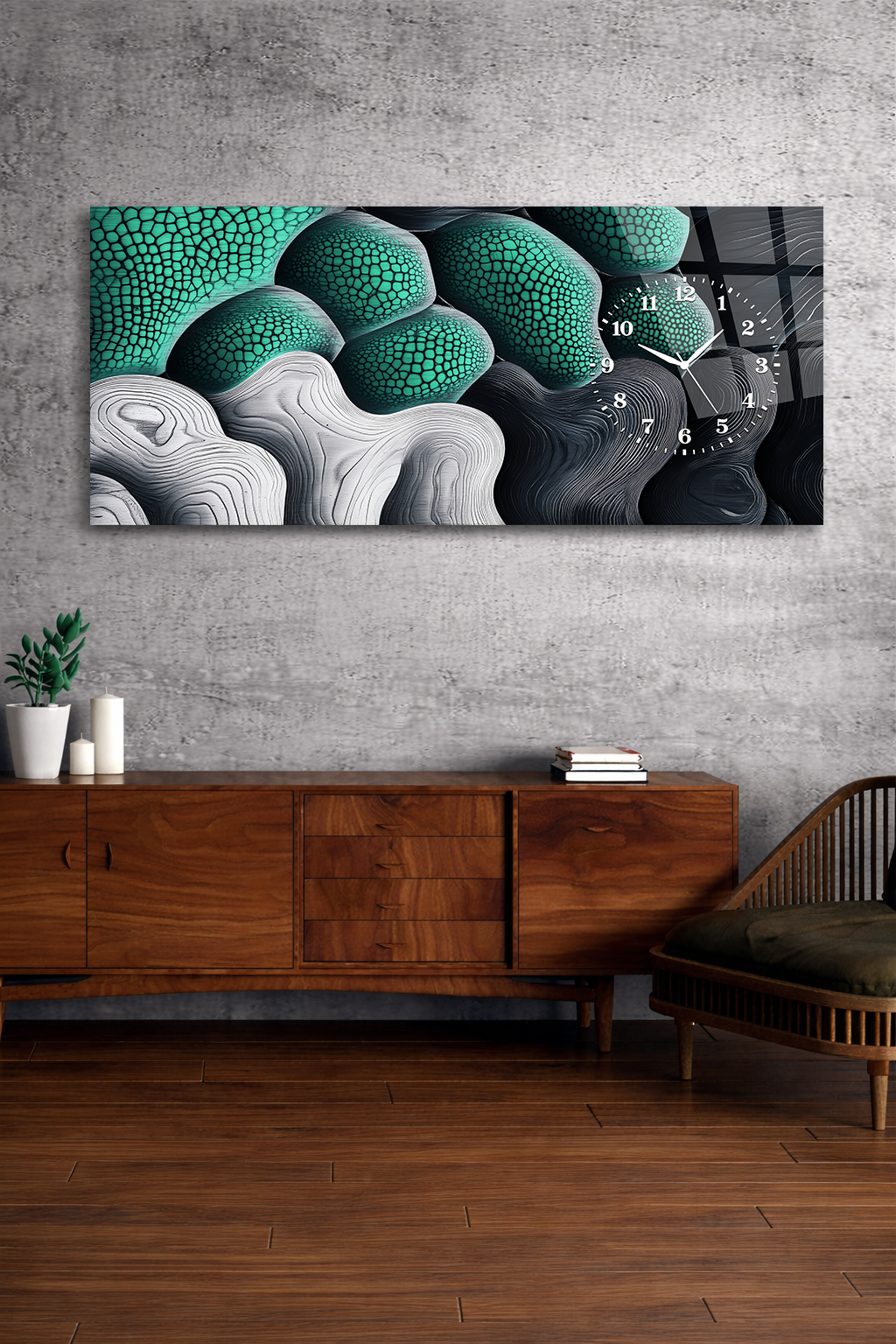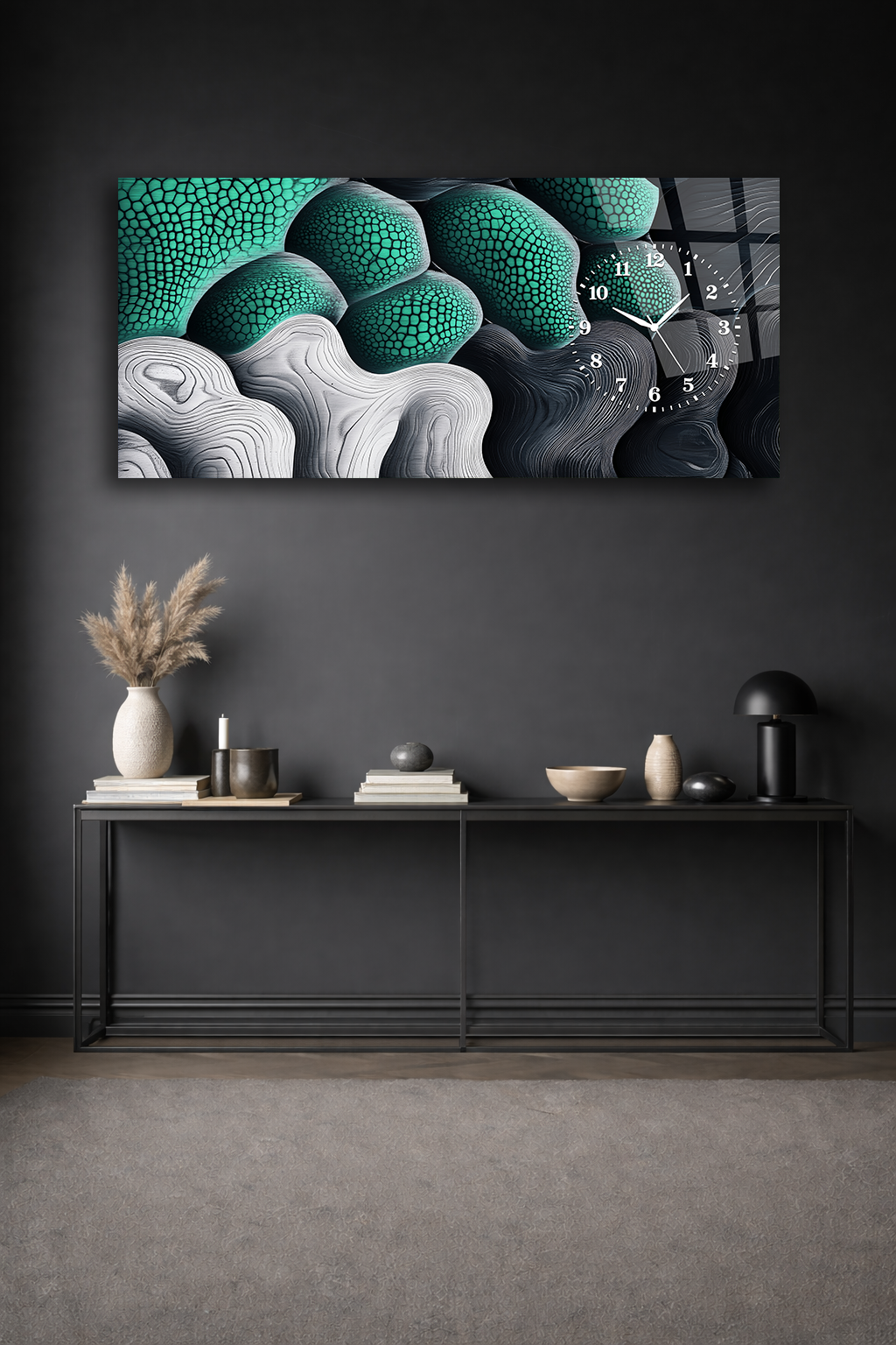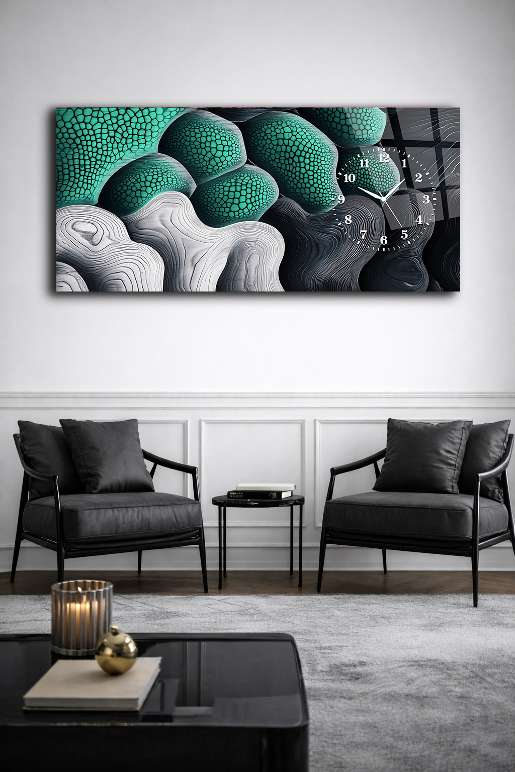 Hem şık bir tablo hem de işlevsel bir saat olarak tasarlanan bu özel ürün, ev ve ofis dekorasyonuna modern bir dokunuş katar.