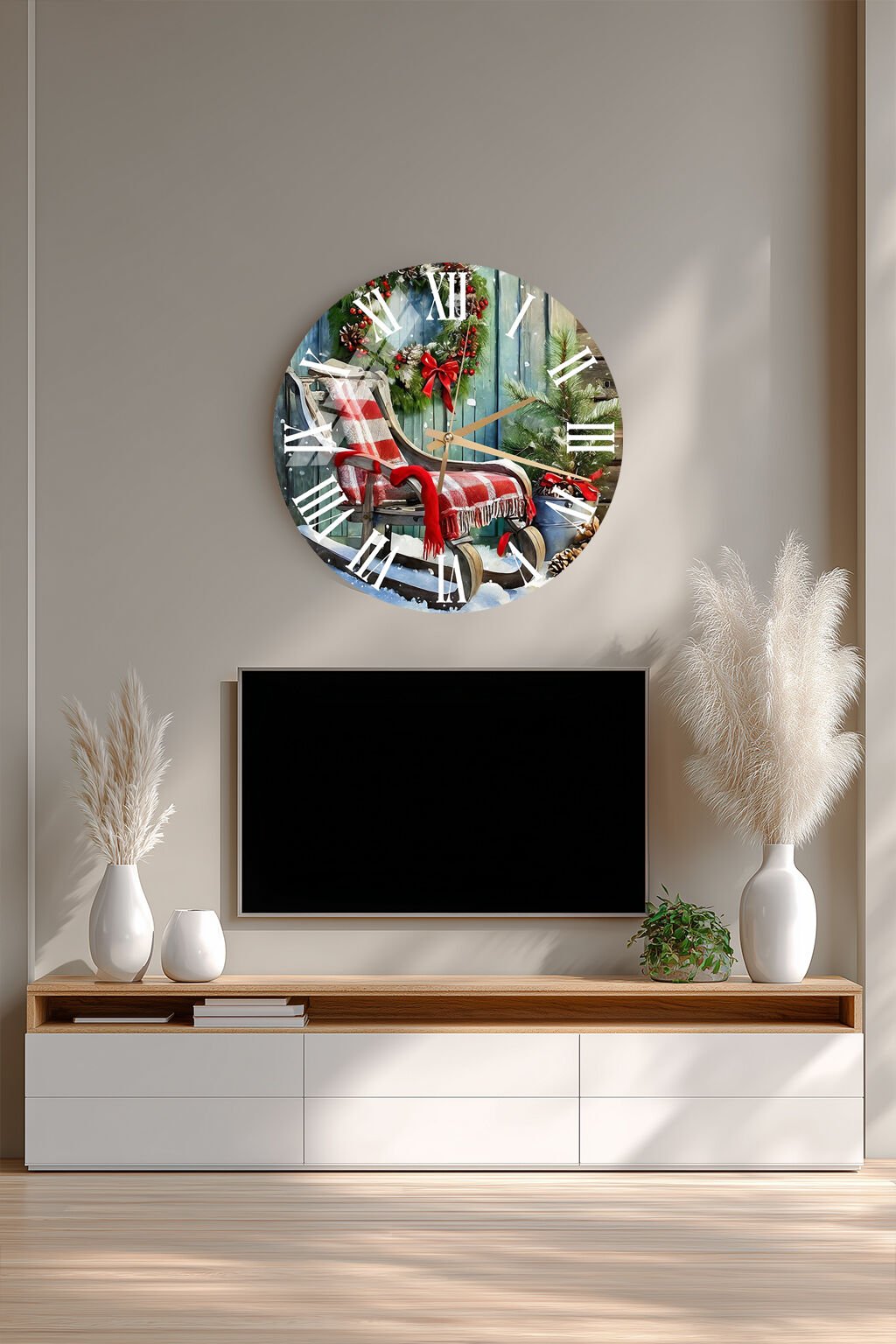 KIRILMAZ CAM DUVAR SAATİ, HEM TABLO HEM SAAT YILBAŞI SANDALYE KIŞ DEKORU ROMEN RAKAM EV OFİS HEDİYESİ
