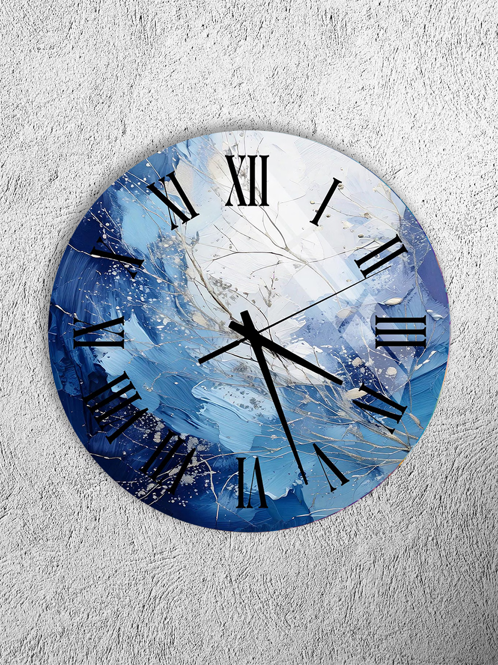 KIRILMAZ CAM DUVAR SAATİ, MAVİ SOYUT YAĞLI BOYA SANAT TASARIMI, HEM TABLO HEM SAAT, EV OFİS HEDİYESİ