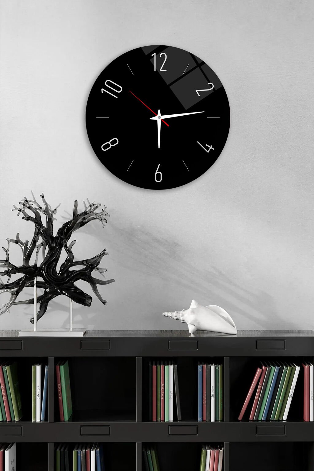 KIRILMAZ CAM DUVAR SAATİ, MİNİMAL SİYAH MODERN TASARIM, HEM TABLO HEM SAAT EV OFİS HEDİYESİ