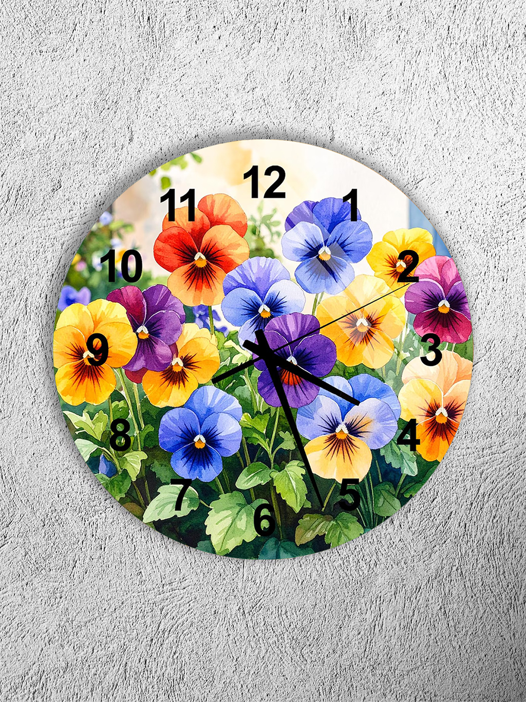 KIRILMAZ CAM DUVAR SAATİ, RENKLİ ÇİÇEK BAHÇESİ DESENLİ, HEM TABLO HEM SAAT, CANLI EV OFİS HEDİYESİ