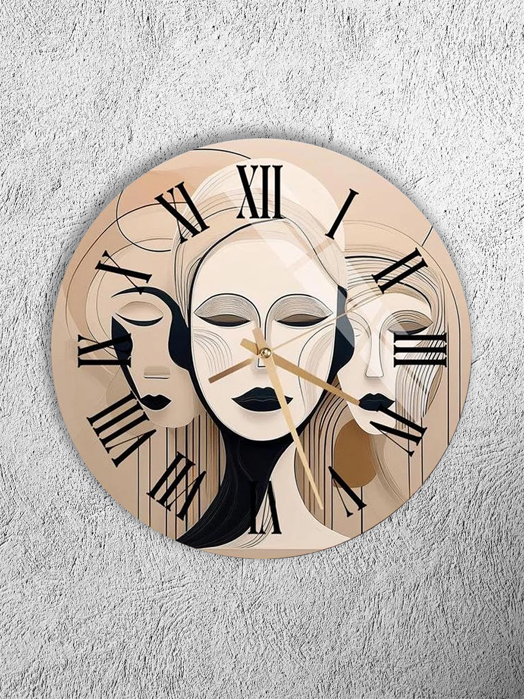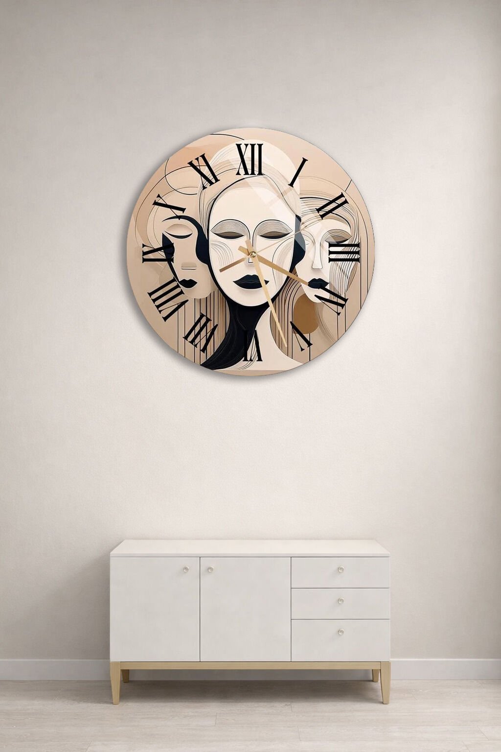 KIRILMAZ CAM DUVAR SAATİ, SOYUT YÜZLER MODERN SANAT TASARIMI, HEM TABLO HEM SAAT EV OFİS HEDİYESİ