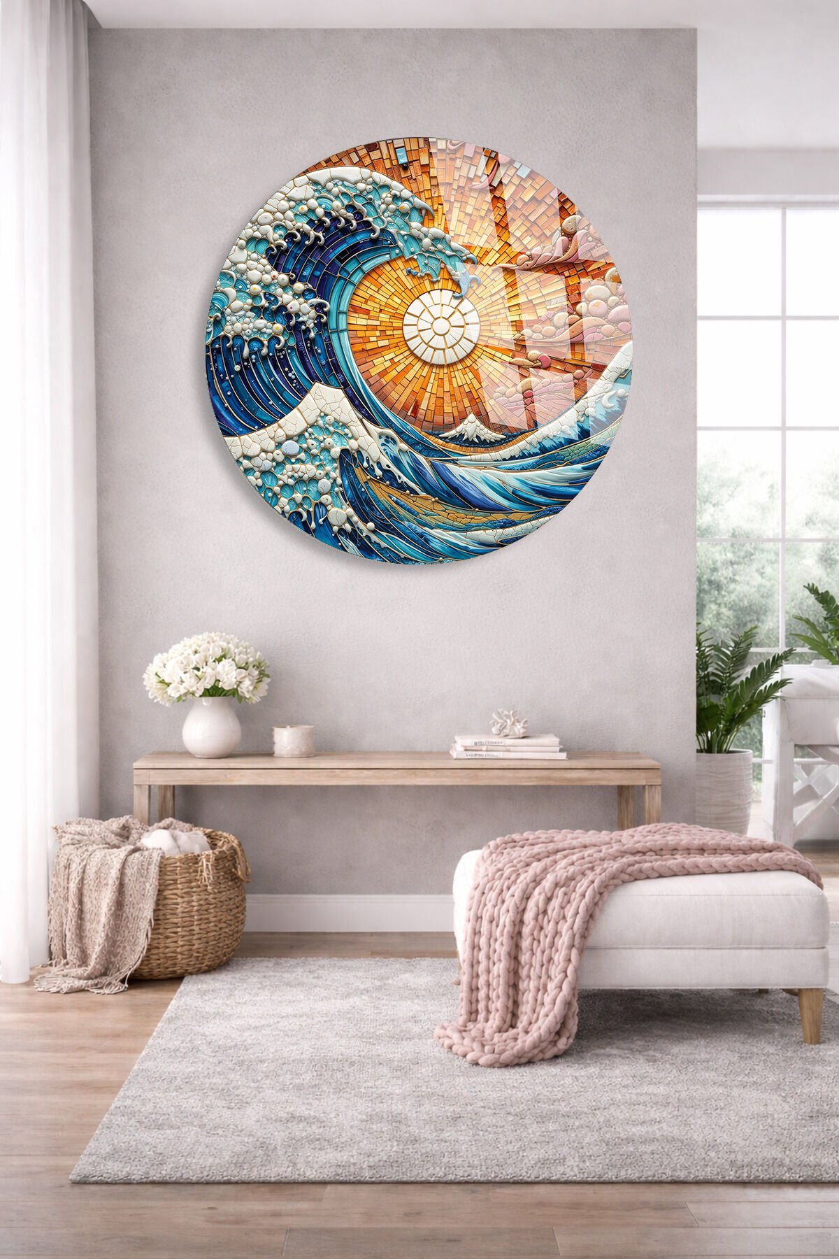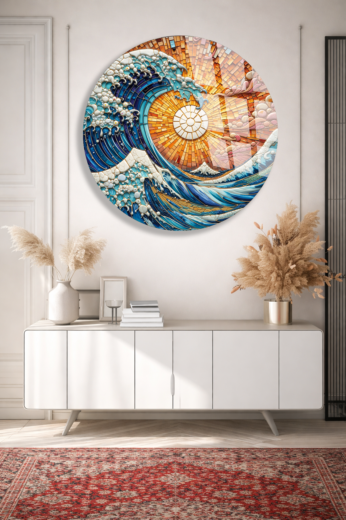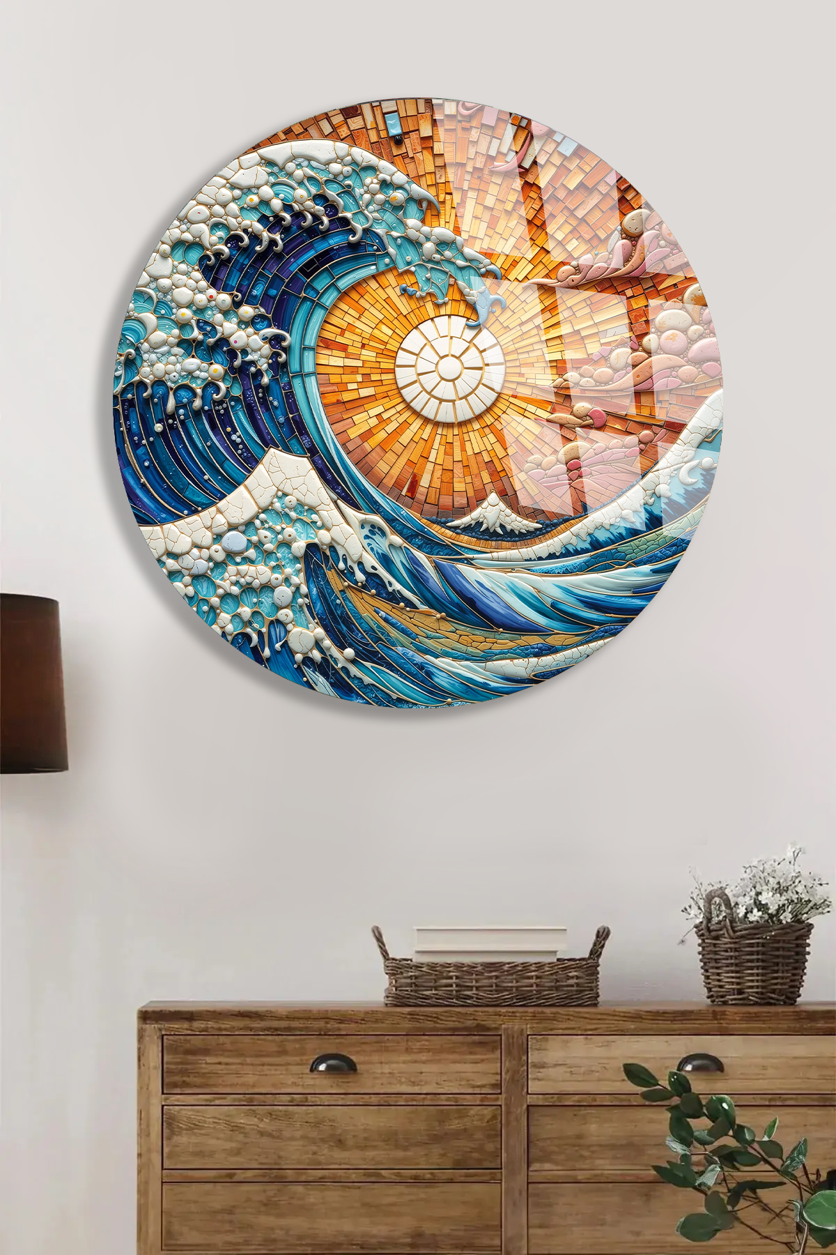 KIRILMAZ CAM DUVAR TABLOSU – OKYANUS DALGA MOZAİK SANAT TASARIMI | MODERN DENİZ TEMASI
