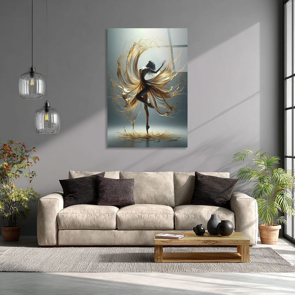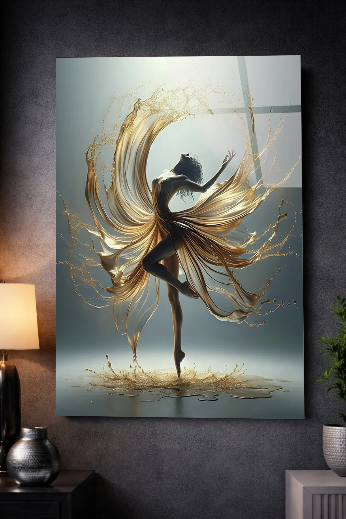 KIRILMAZ CAM TABLO ALTIN SU DANSI BALE SANATSAL MODERN TASARIM