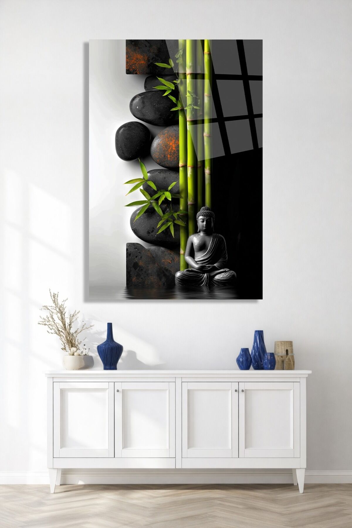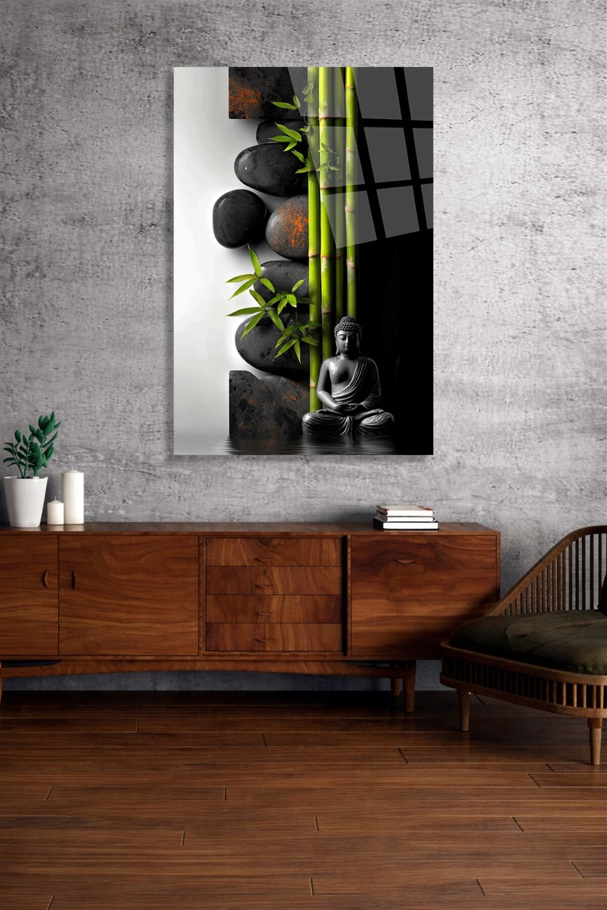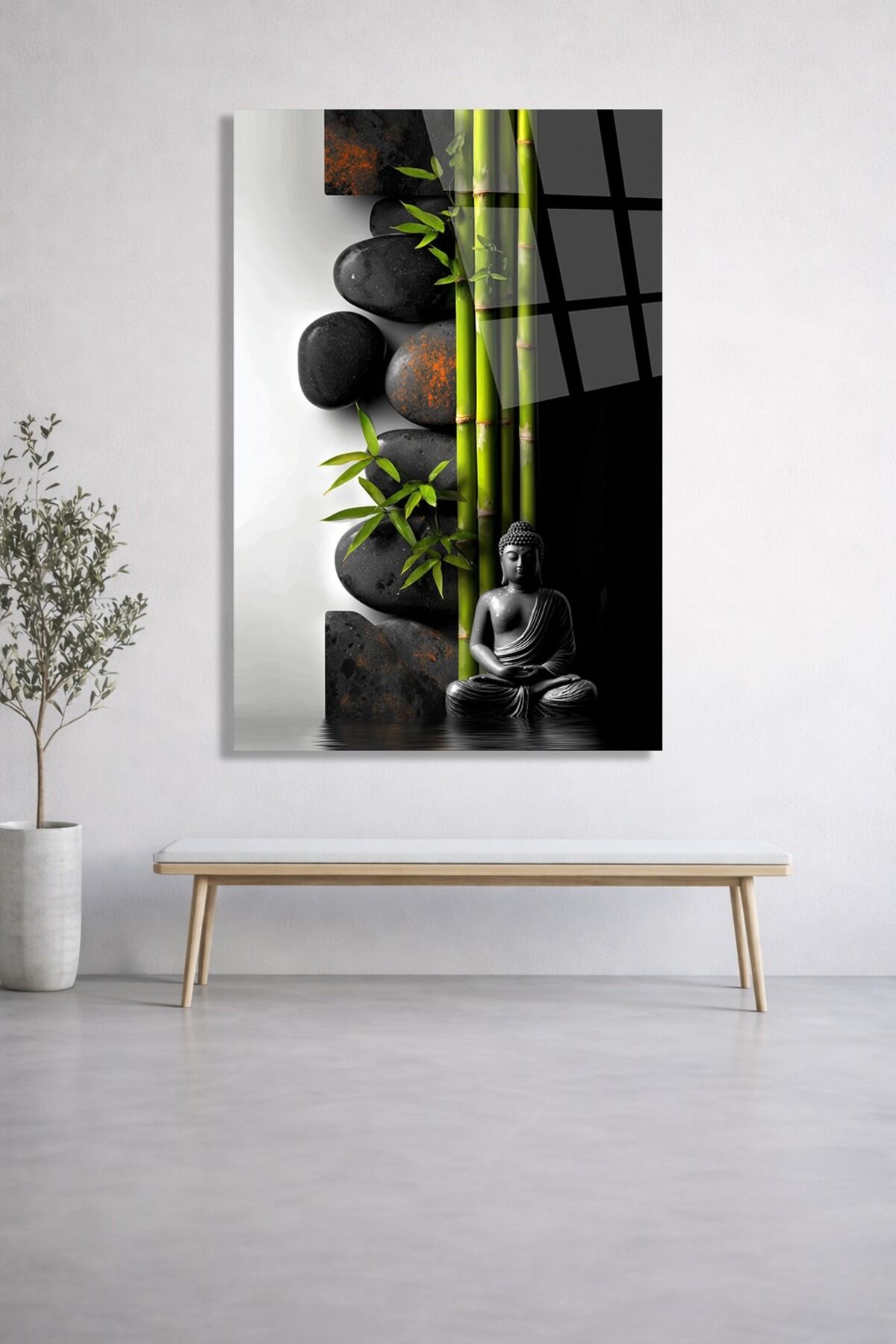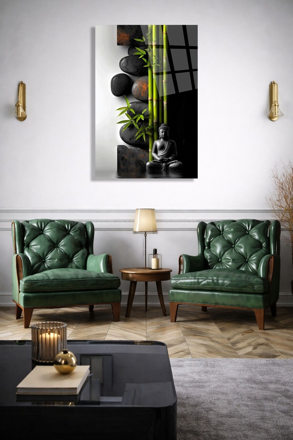 KIRILMAZ CAM TABLO BUDDHA ZEN BAMBU DUVAR TABLOSU Yeşil