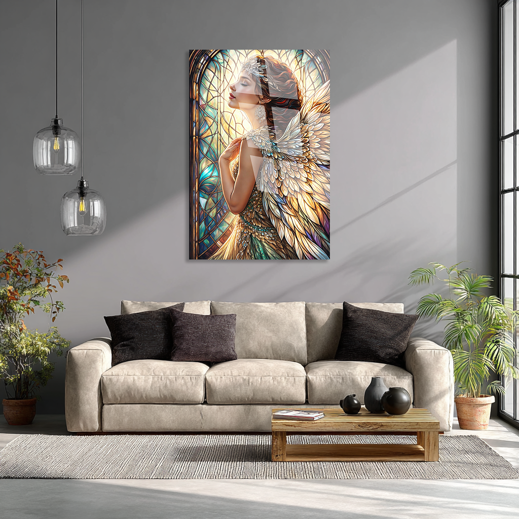 KIRILMAZ CAM TABLO MELEK KADIN VİTRAY SANATI LÜKS DEKORATİF TASARIM