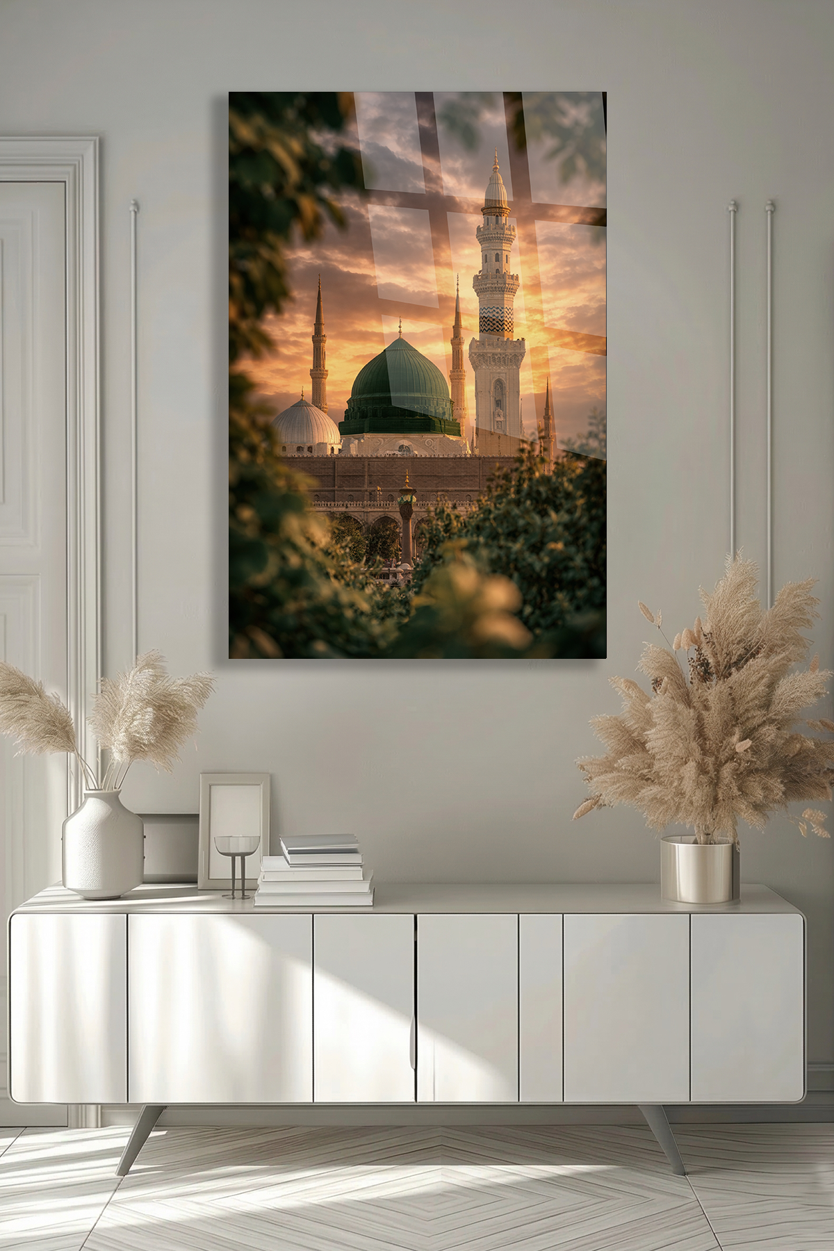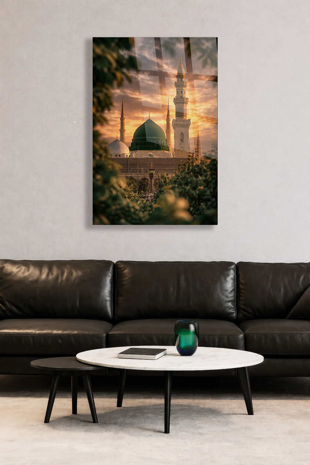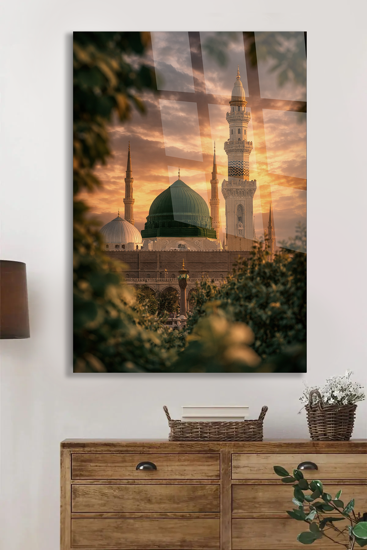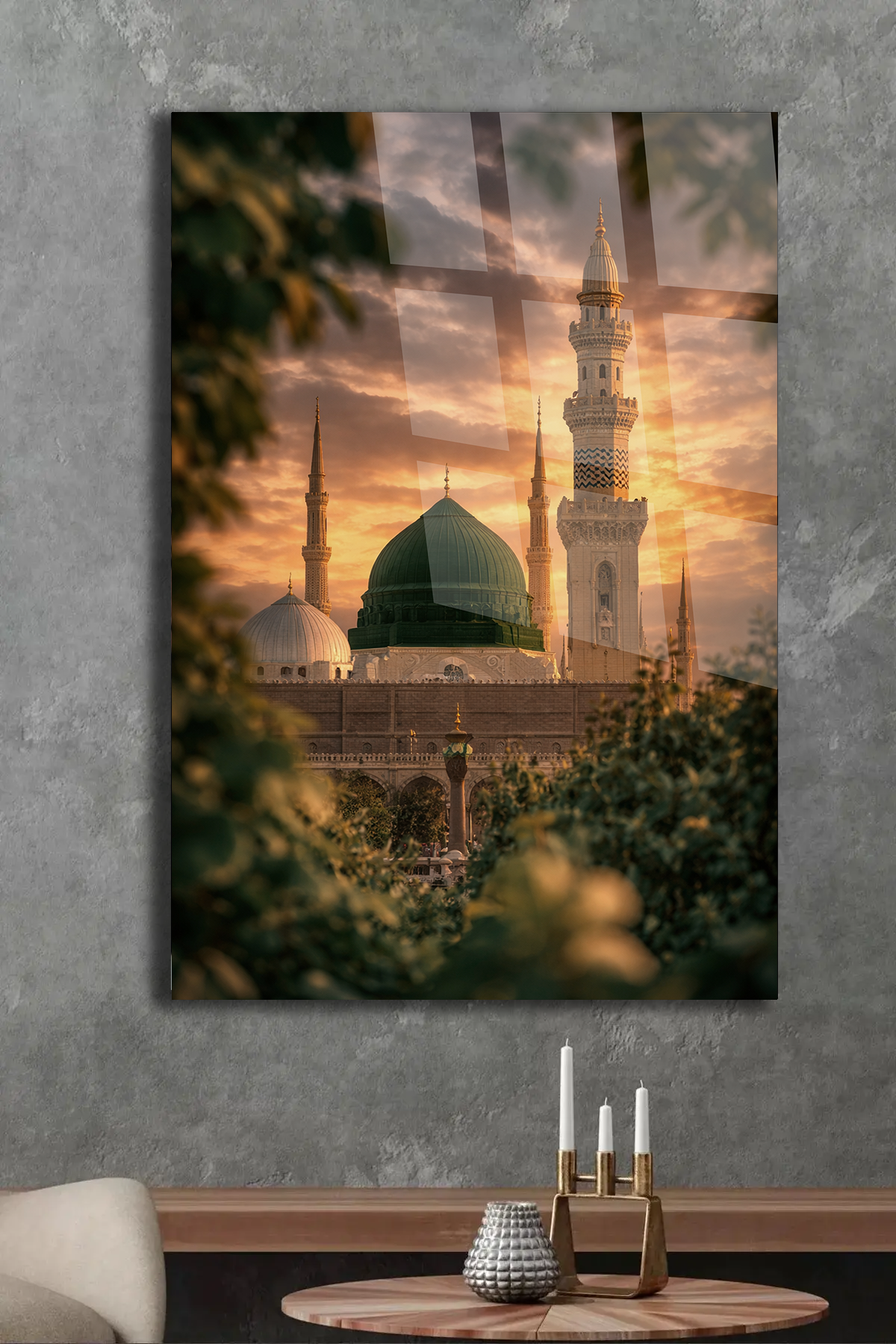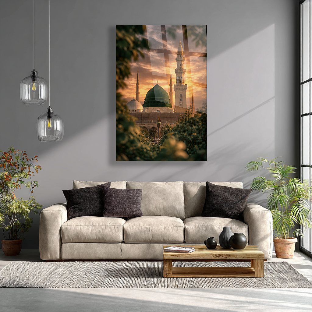 KIRILMAZ CAM TABLO MESCİD-İ NEBEVİ YEŞİL KUBBE İSLAMİ MANZARA TASARIMI