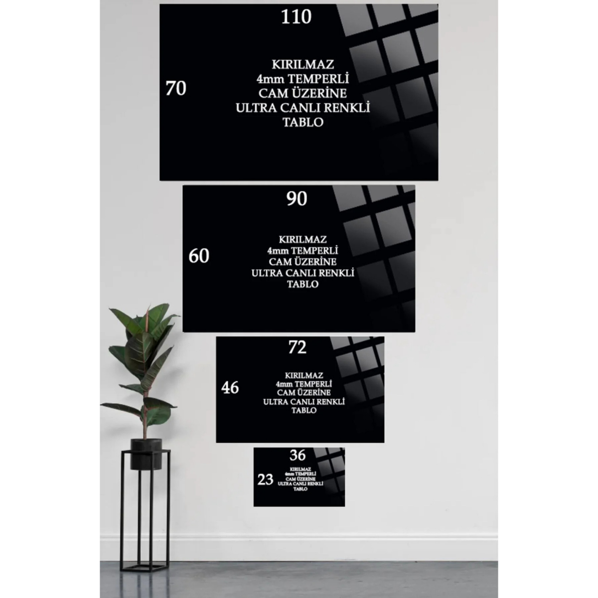 Cam tablolarımız 4 mm kalınlığında temper işlemi (ısıl işlem) görmüştür.; Kenarları rodajlanmış (kesiciliği giderilmiş) yüksek kaliteli düz camlardan oluşmaktadır.; Normal camlara göre kırılmaya 10 kat daha dayanıklıdır.; Gönderilirken özel koruma aparat ve ambalajları ile gönderilmektedir.; ; Tarafımızca hazırlanan özel tasarımlar doğrudan cam yüzeyine uv baskı tekniğiyle yüksek çözünürlüklü makinalarımız tarafından uygulanır.; Bu nedenle yüksek kaliteli,mükemmel bir görüntü derinliği sağlar.; Herhangi bir medyaya(folyo,kağıt v.; b.; ) baskı yapılmış görselin cam yüzeyine yapıştırılması şeklinde değildir.; Görsellerimiz camın arka yüzeyine doğrudan uv cam boyası kullanılarak basılır ve özel koruma boyası ile arka yüzey kapatılır.; Baskı cam ile arka koruma boyası arasında kalır.; Tasarımları ön yüzeyden camın parlaklığı ve şıklığı ile görürsünüz.; Cam tablolar zamanla solmazlar ve renkler canlılığını hiç kaybetmez.; ; Özel tasarım cam tablolar duvar dekorasyonunda yeni bir sayfa açmaktadır.; Özellikle ev ve ofis dekorasyonunda büyük tablolar duvarlarda çok şık bir görünüm sağlarlar.; Dekoratif ve zarif tablolar ev ve ofis duvarlarınıza estetik bir hava katar.; ; Tablolarımız sizler için özel olarak tasarlanmıştır.; ; Temizliği son derece kolay olan cam tablolarımızı,herhangi bir kimyasal ürünle veya nemli bez ile gönül rahatlığıyla silebilirsiniz.; Özel askı aparatı sayesinde ürünlerimizin duvardan kazara düşme olasılığı çok düşüktür.; Tek çivi ile kolayca duvara monte edebilirsiniz.; Ürün asıldığında duvardan 2 cm önde durmaktadır.; ; Kargo esnasında yaşanacak her türlü olumsuzluk(kırılma v.; b.; ) firmamıza aittir.; Kırılma olasılığı %1 in altındadır.; Özel çerçeveli kargo metodumuz Türkiyede yalnızca tarafımıza aittir bu sayede kırılma yaşanmamaktadır.; En ufak bir sorunda ise sizlere sağlam şekilde ulaşıncaya kadar tekrar gönderilir.; ; Üretici firma olarak özel tasarımlarıyla camı birleştirerek yaşam alanlarınıza şık bir görünüm ve modern bir hava katmayı amaç edinilmiştir.Kişiye özel Tablo seçeneğimiz de mevcuttur kişiye özel cam tablolalar için iletişime geçiniz.