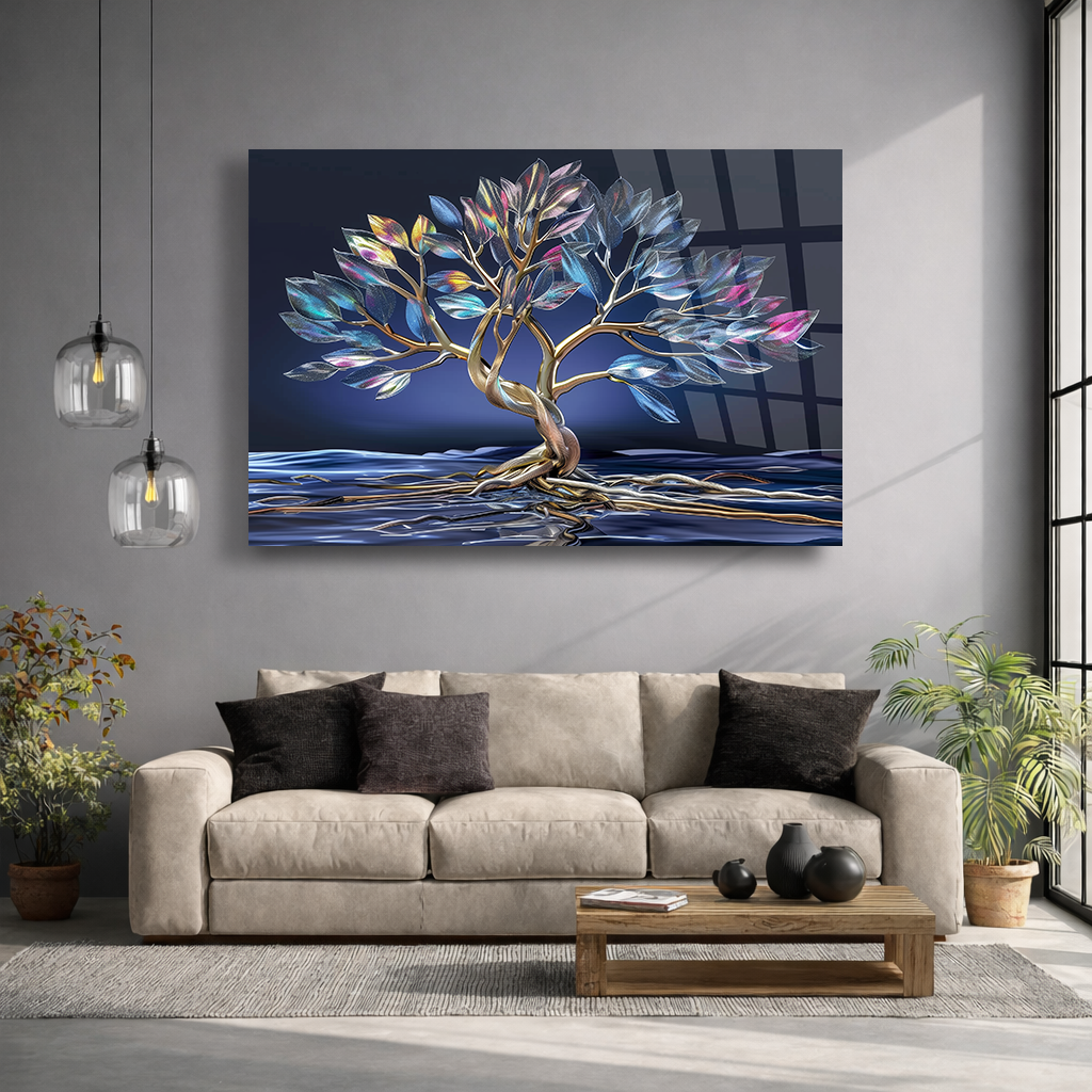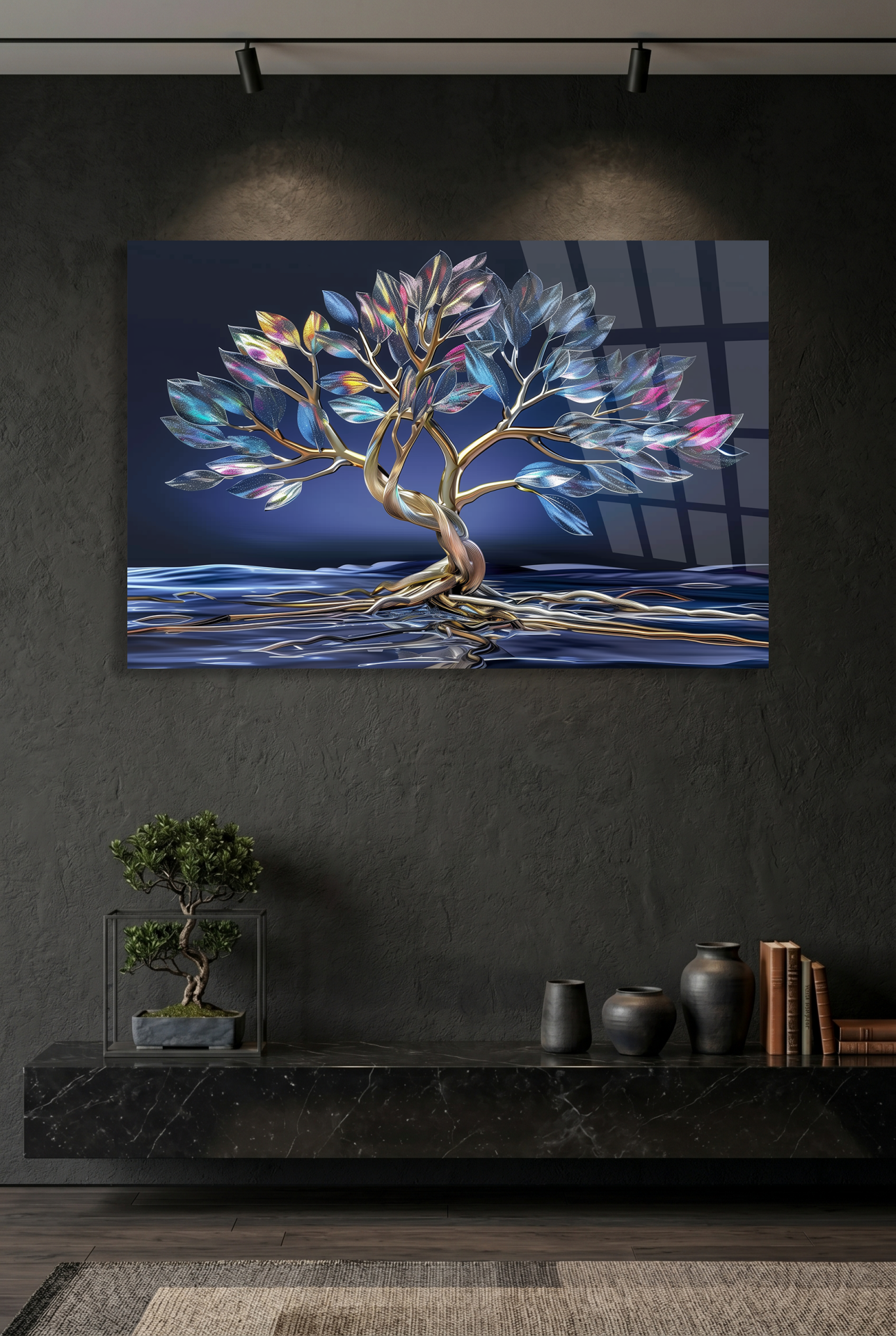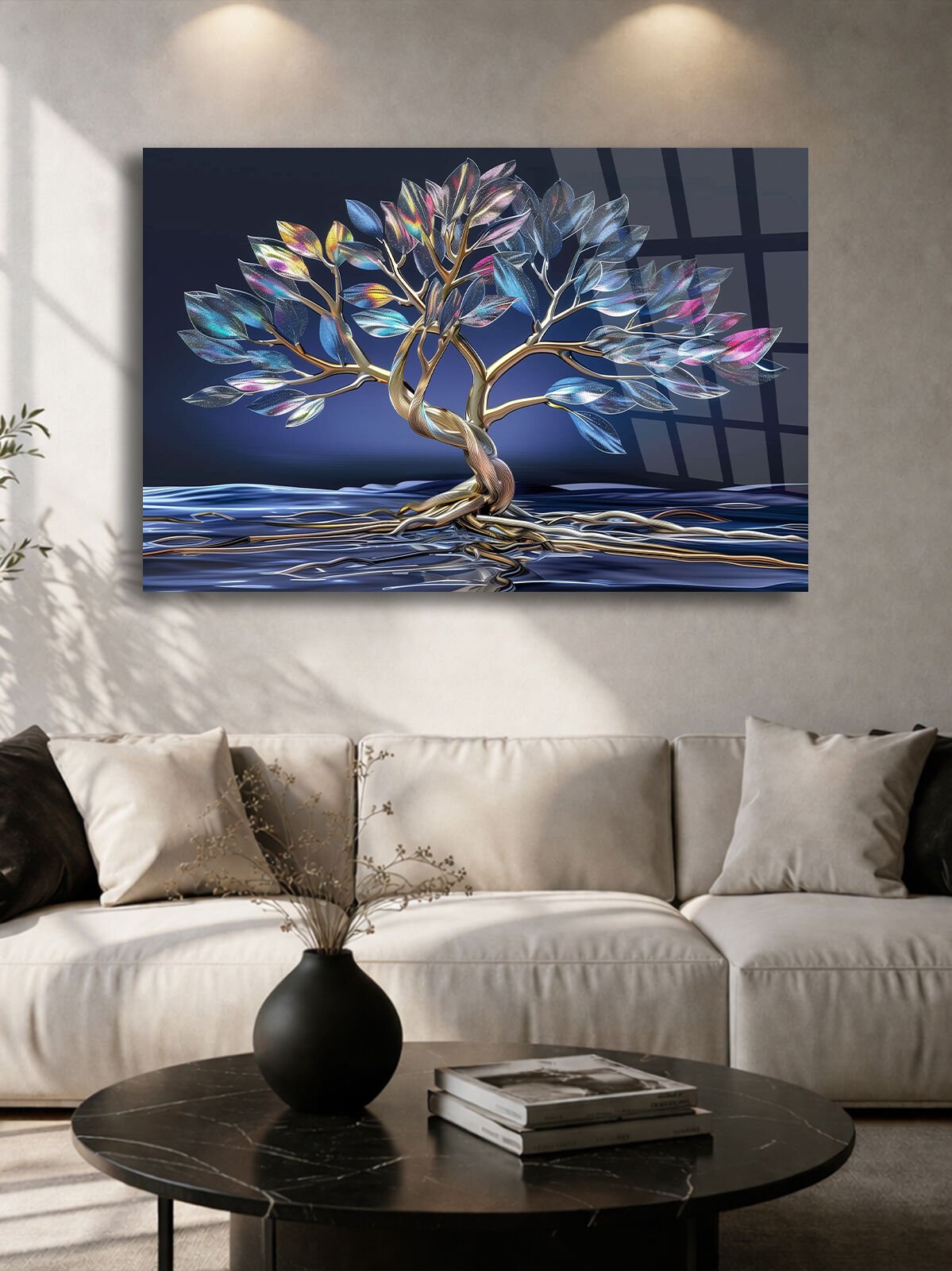 KIRILMAZ CAM TABLO , MODERN DUVAR DEKORASYONU METALİK AĞAÇ MODERN SANAT EV OFİS HEDİYESİ