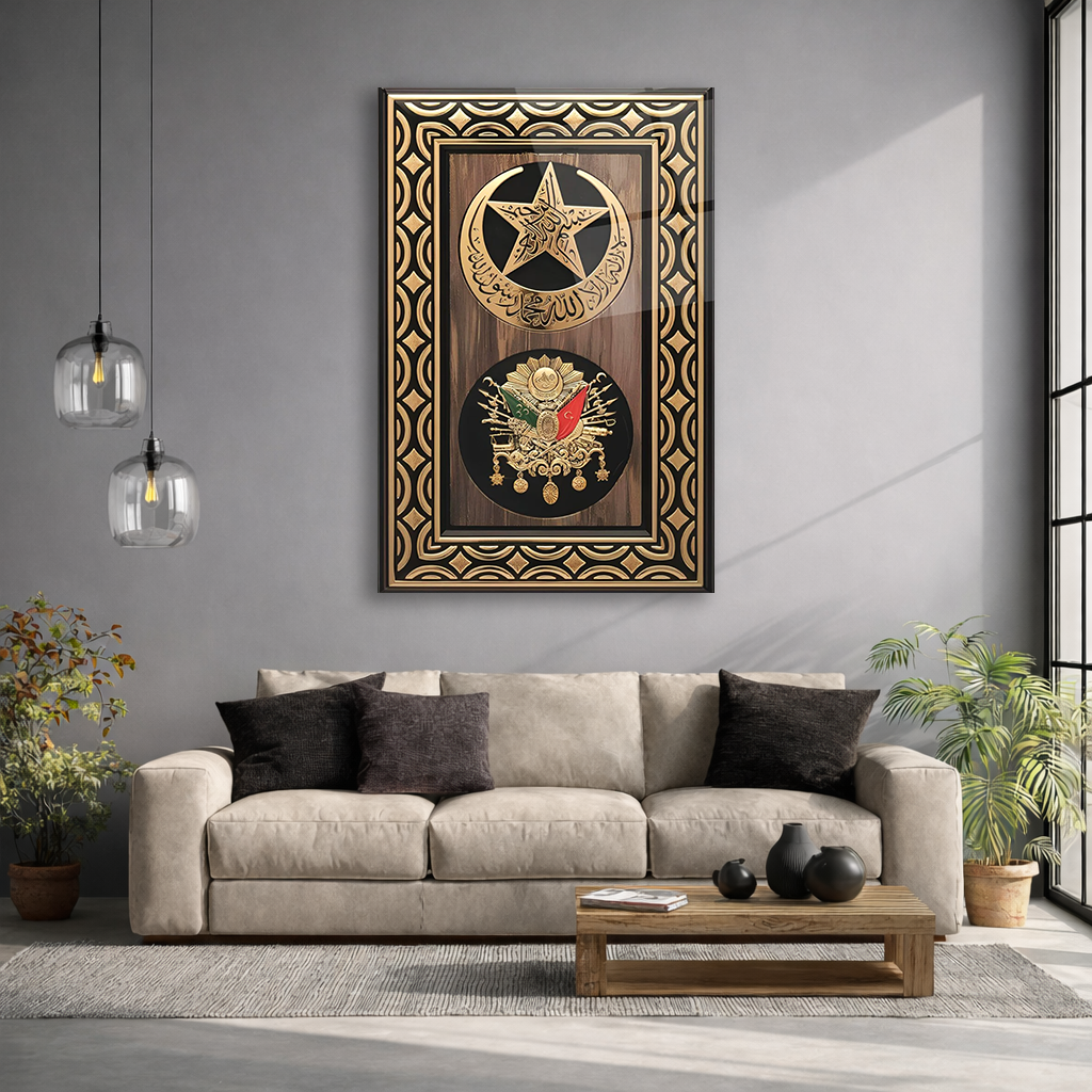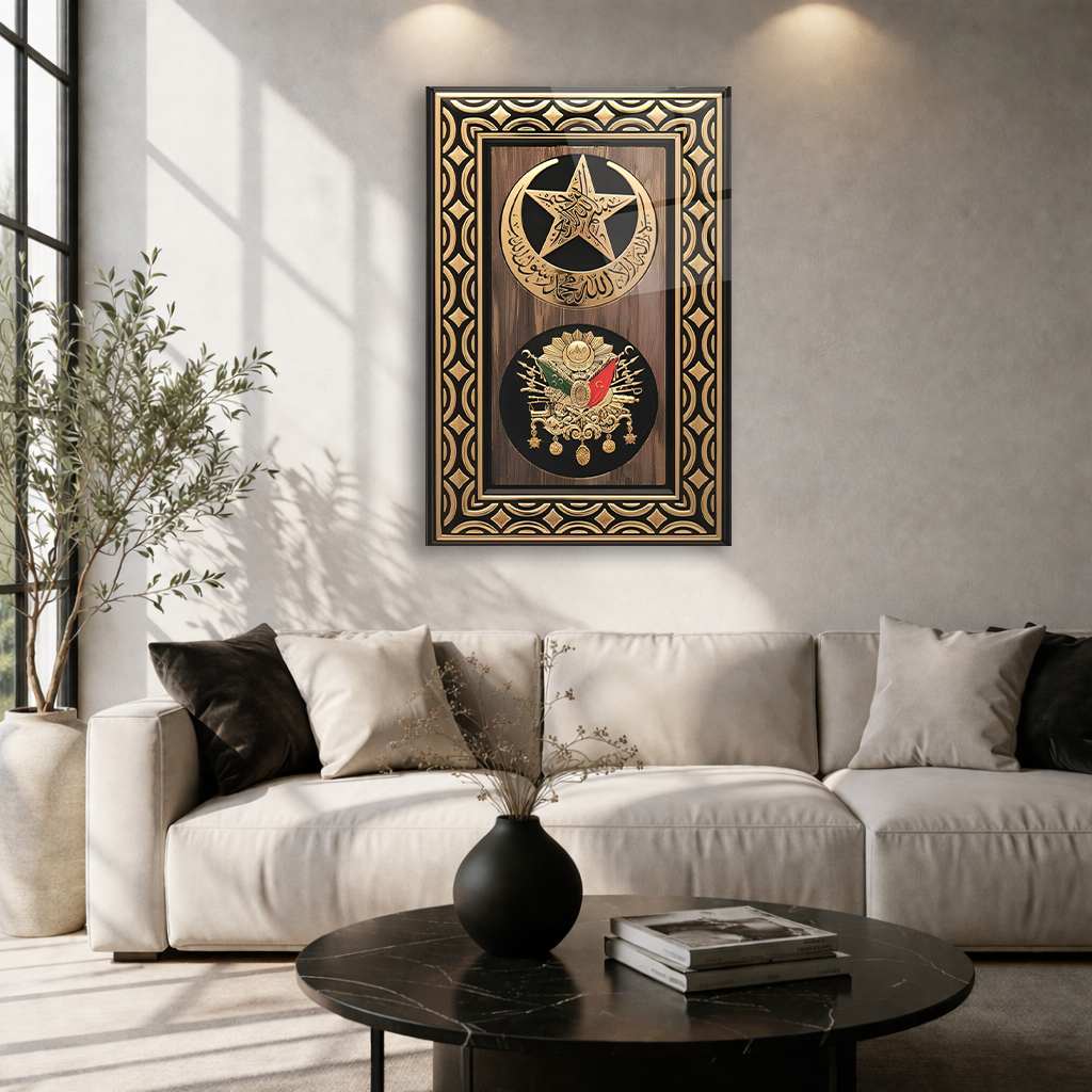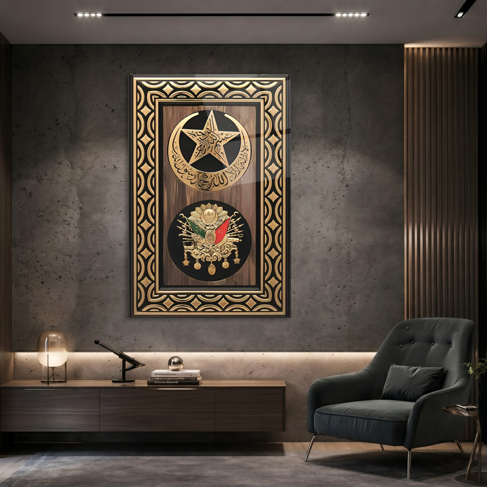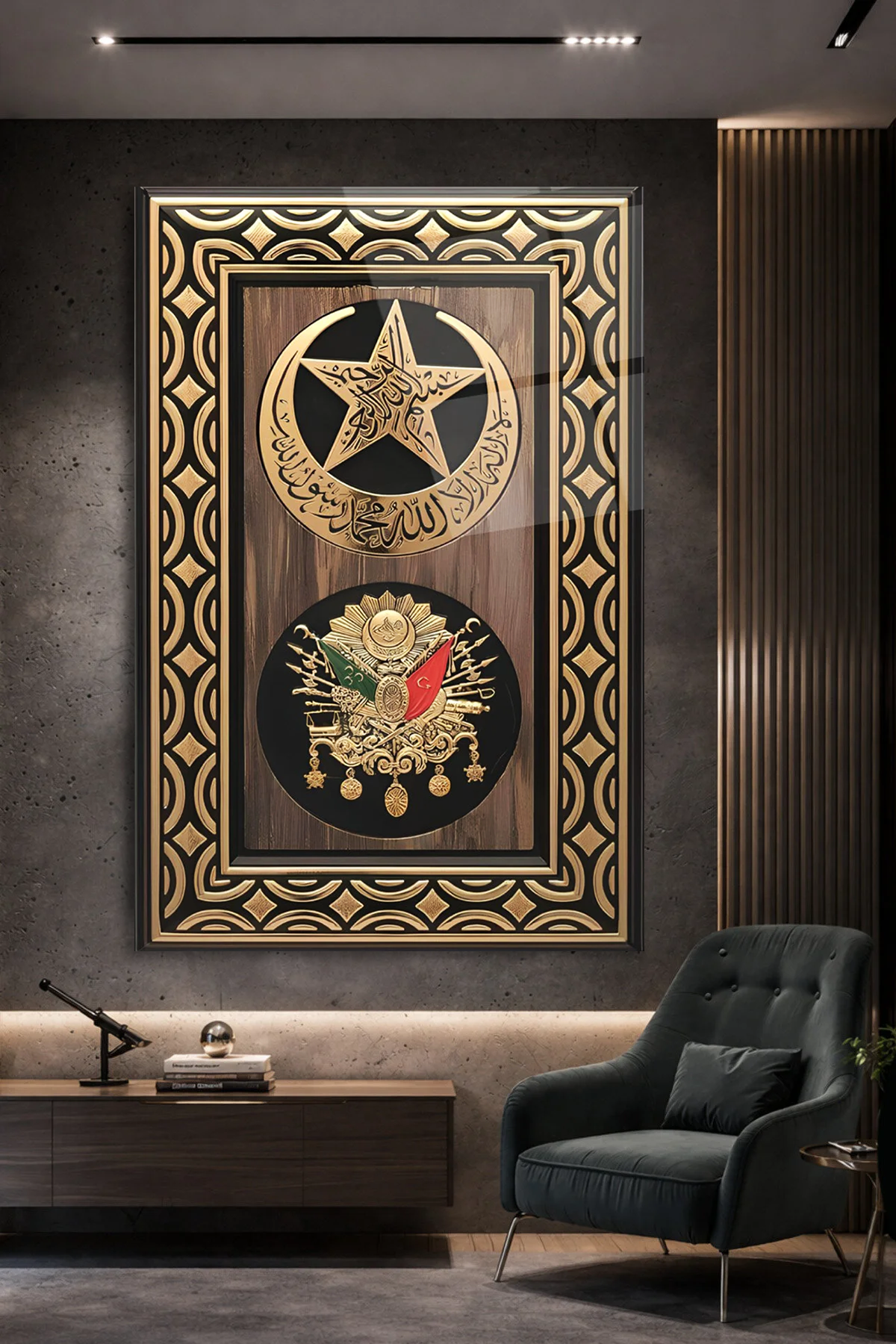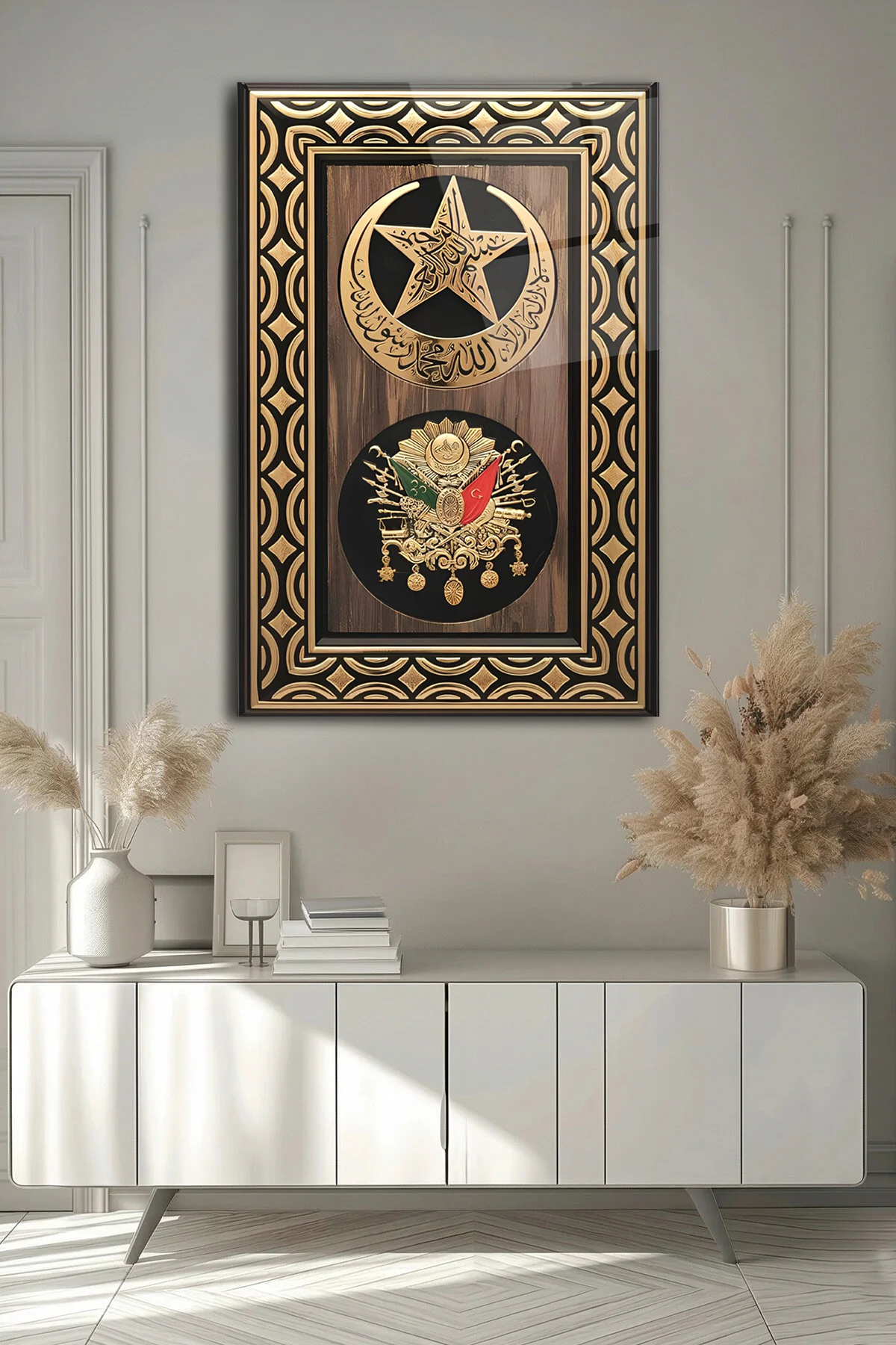 KIRILMAZ CAM TABLO , MODERN DUVAR DEKORASYONU OSMANLI TUĞRA ARMASI KLASİK TASARIM EV OFİS HEDİYESİ