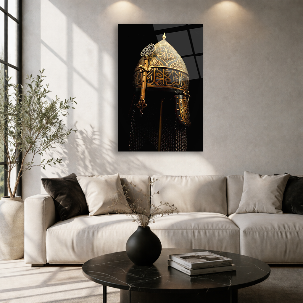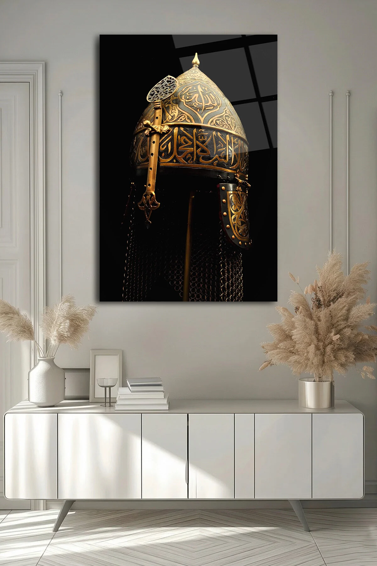 KIRILMAZ CAM TABLO , MODERN DUVAR DEKORASYONU OSMANLI ZIRH MIĞFER TARİHİ TASARIM EV OFİS HEDİYESİ