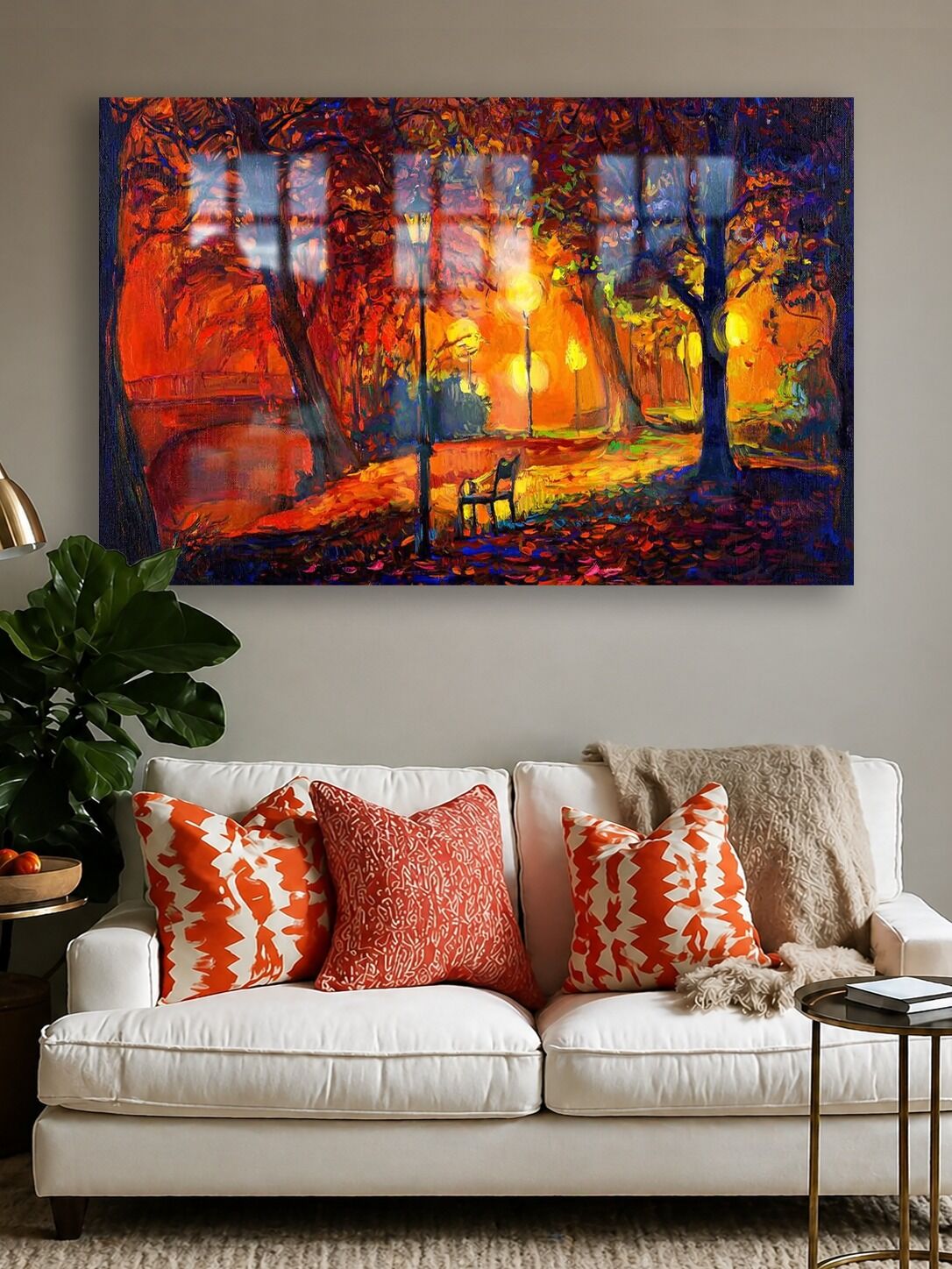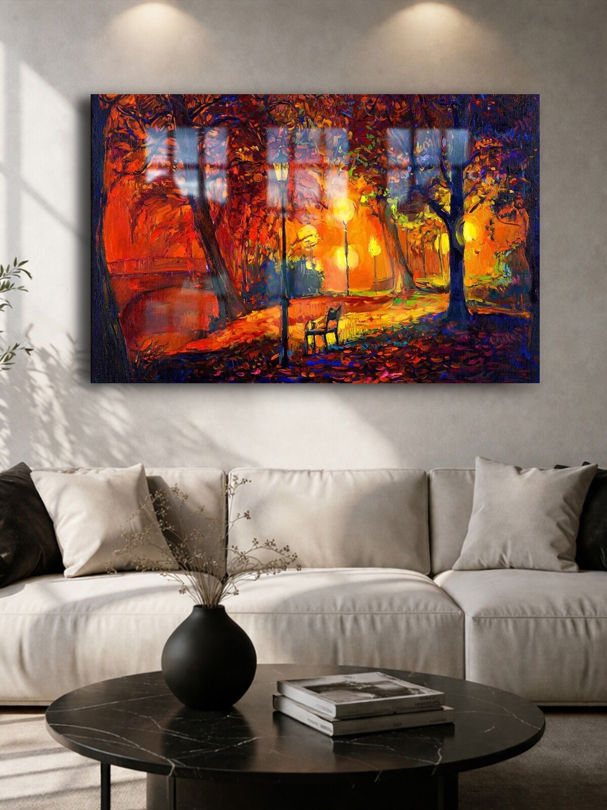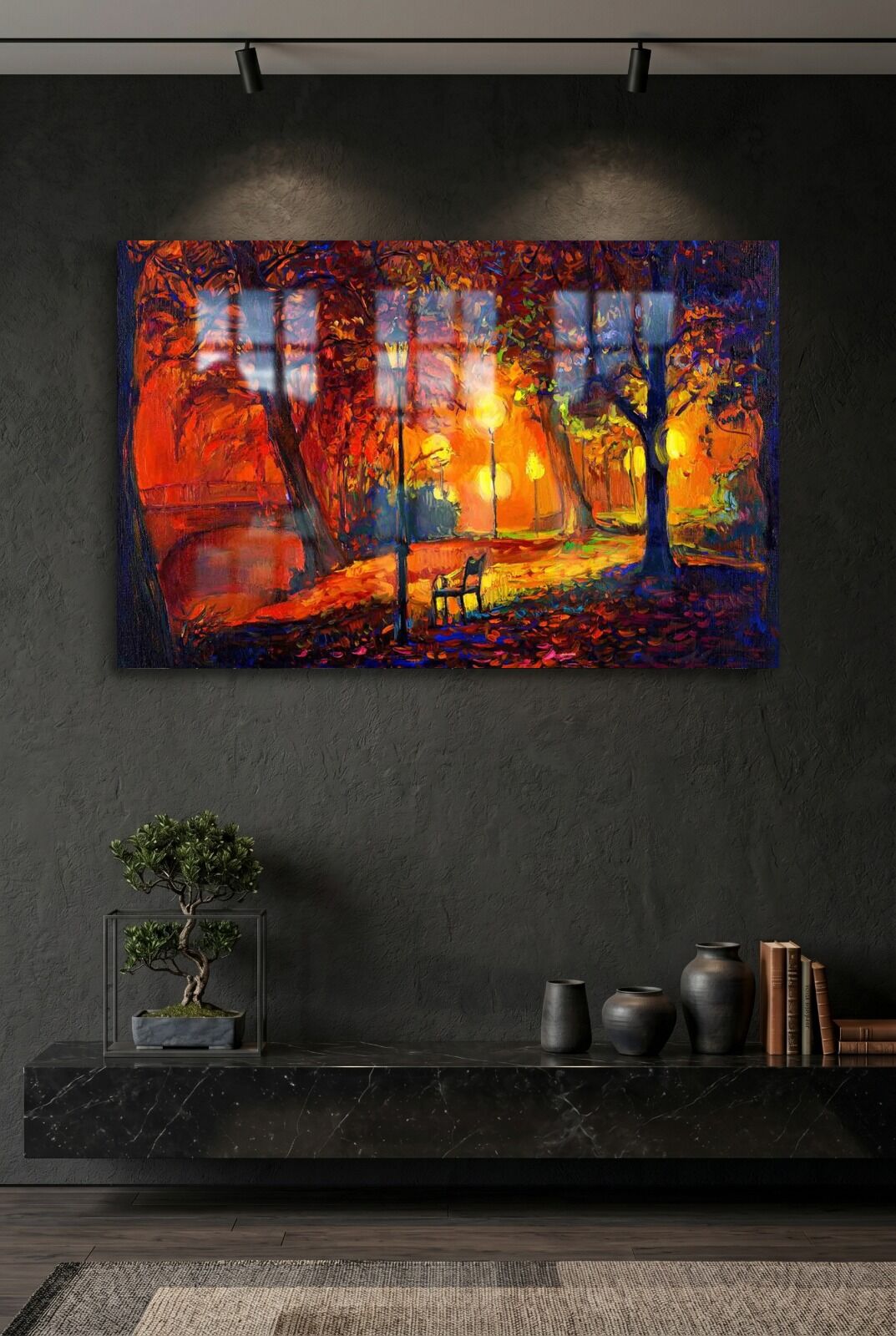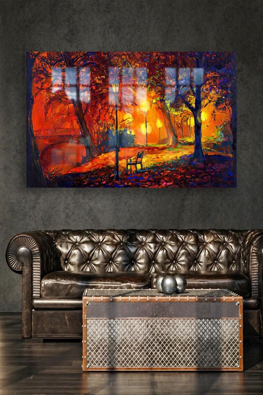 KIRILMAZ CAM TABLO , MODERN DUVAR DEKORASYONU SONBAHAR PARK MANZARA SANAT EV OFİS HEDİYESİ