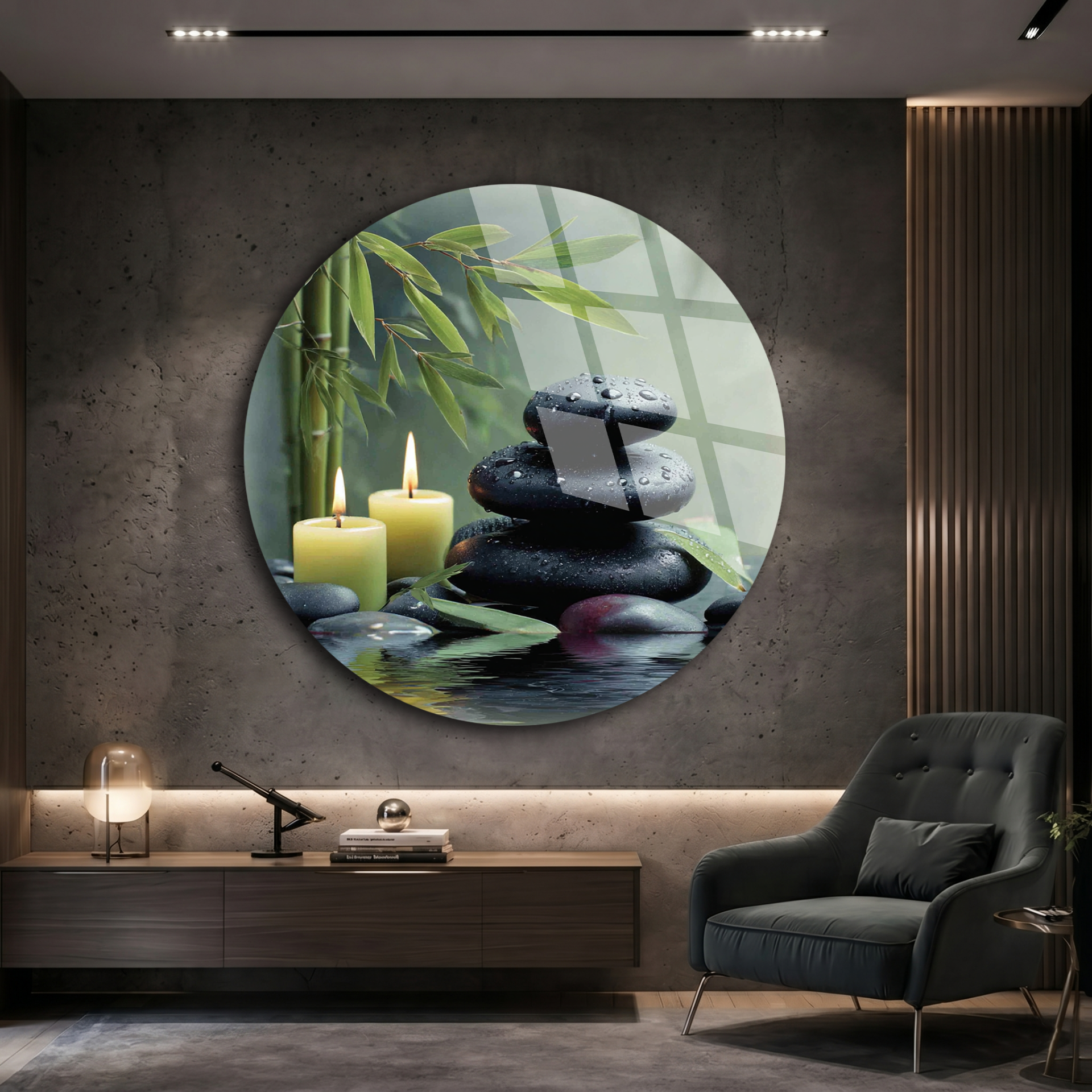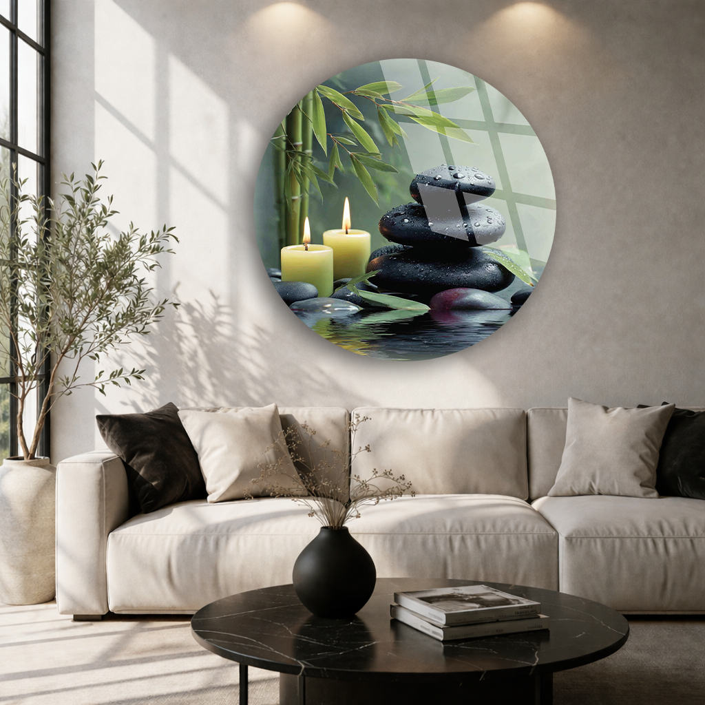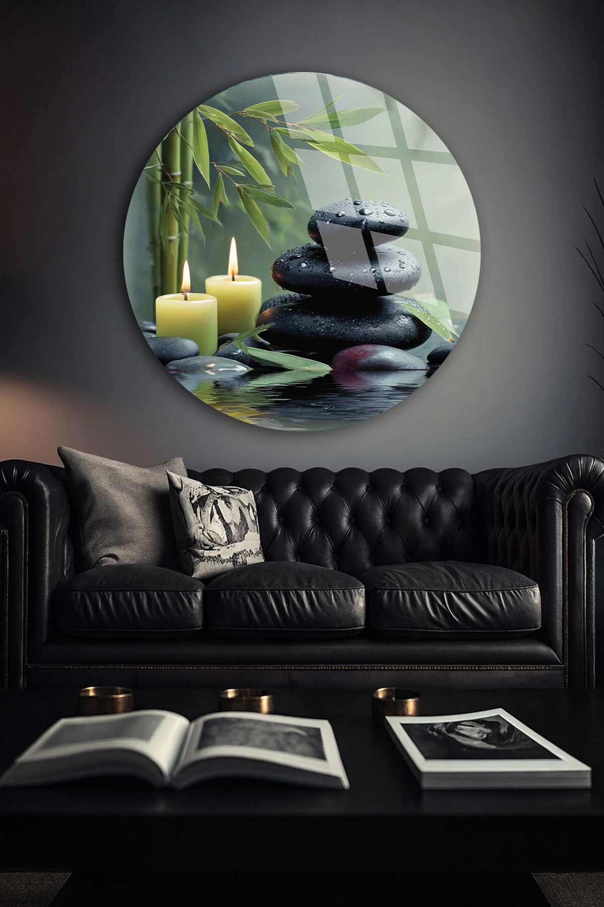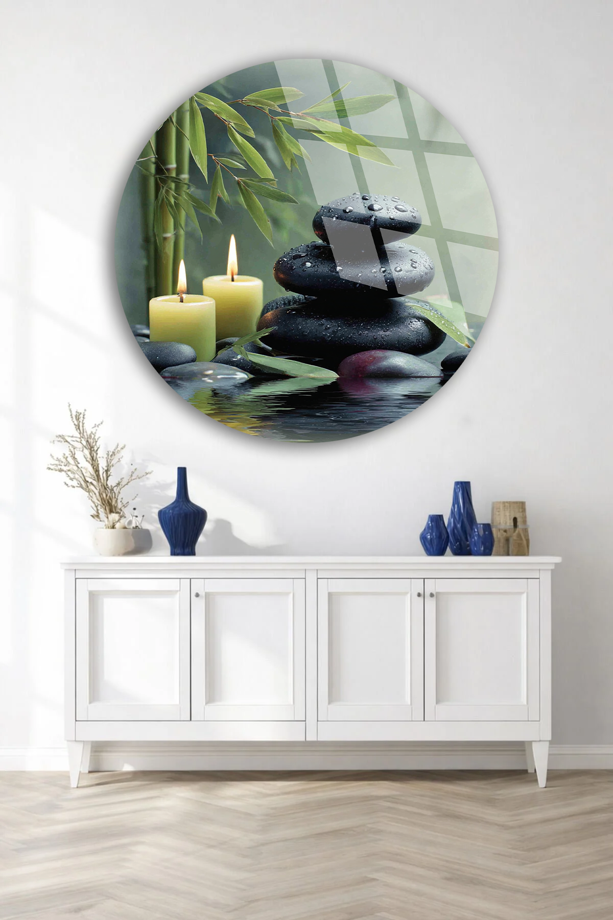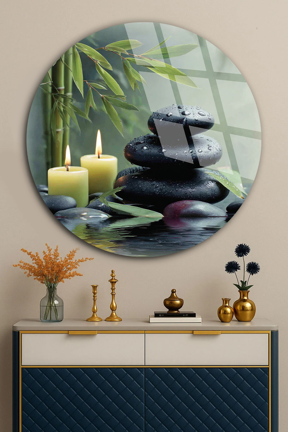 KIRILMAZ CAM TABLO , MODERN DUVAR DEKORASYONU ZEN TAŞ MUM SPA EV OFİS HEDİYESİ