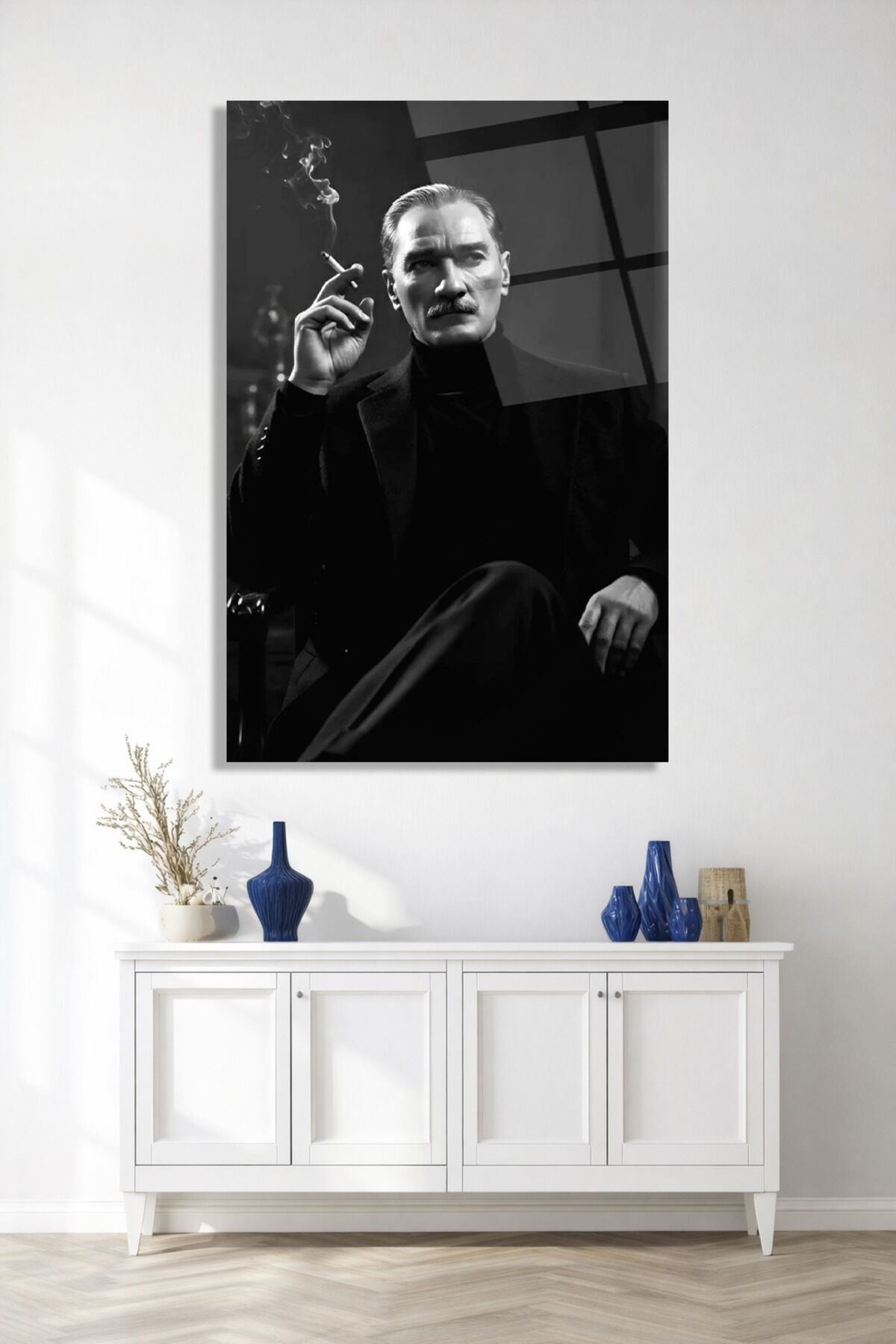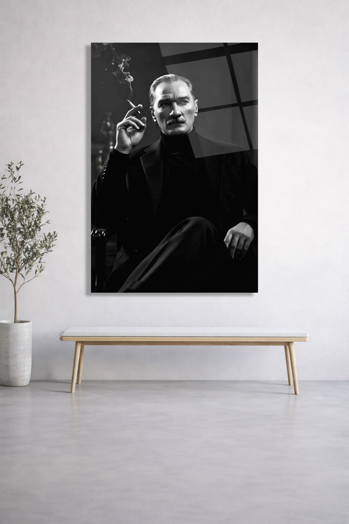 KIRILMAZ CAM TABLO MUSTAFA KEMAL ATATÜRK SİYAH BEYAZ PORTRE Siyah