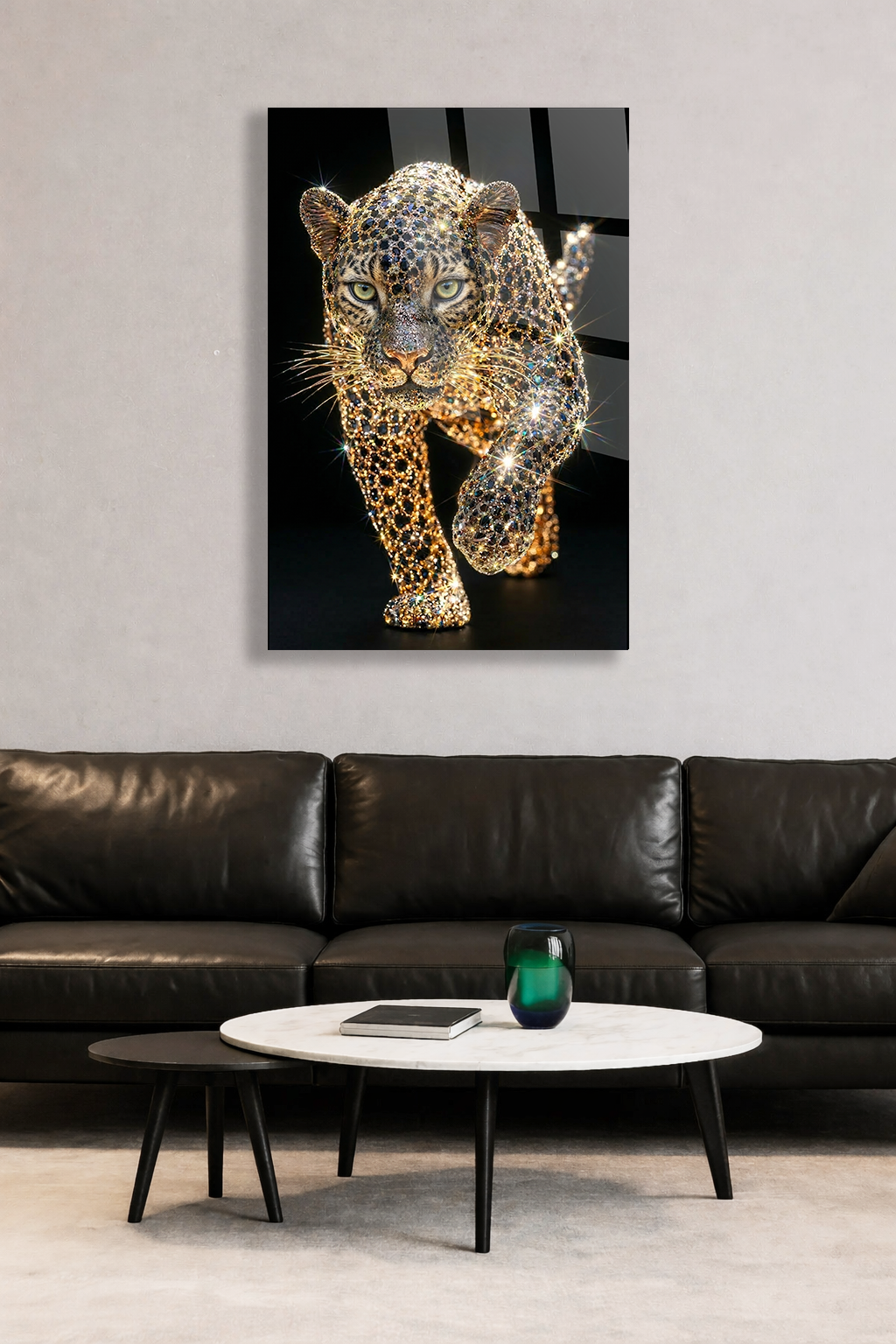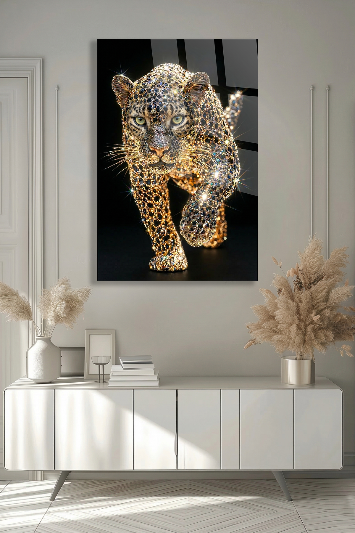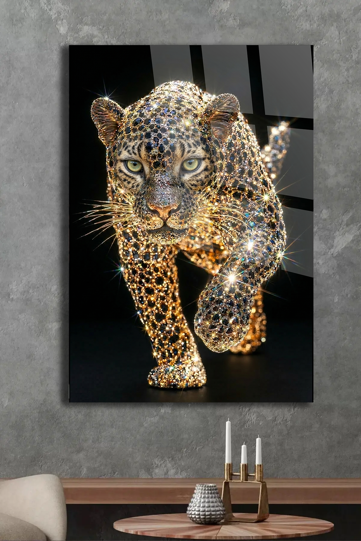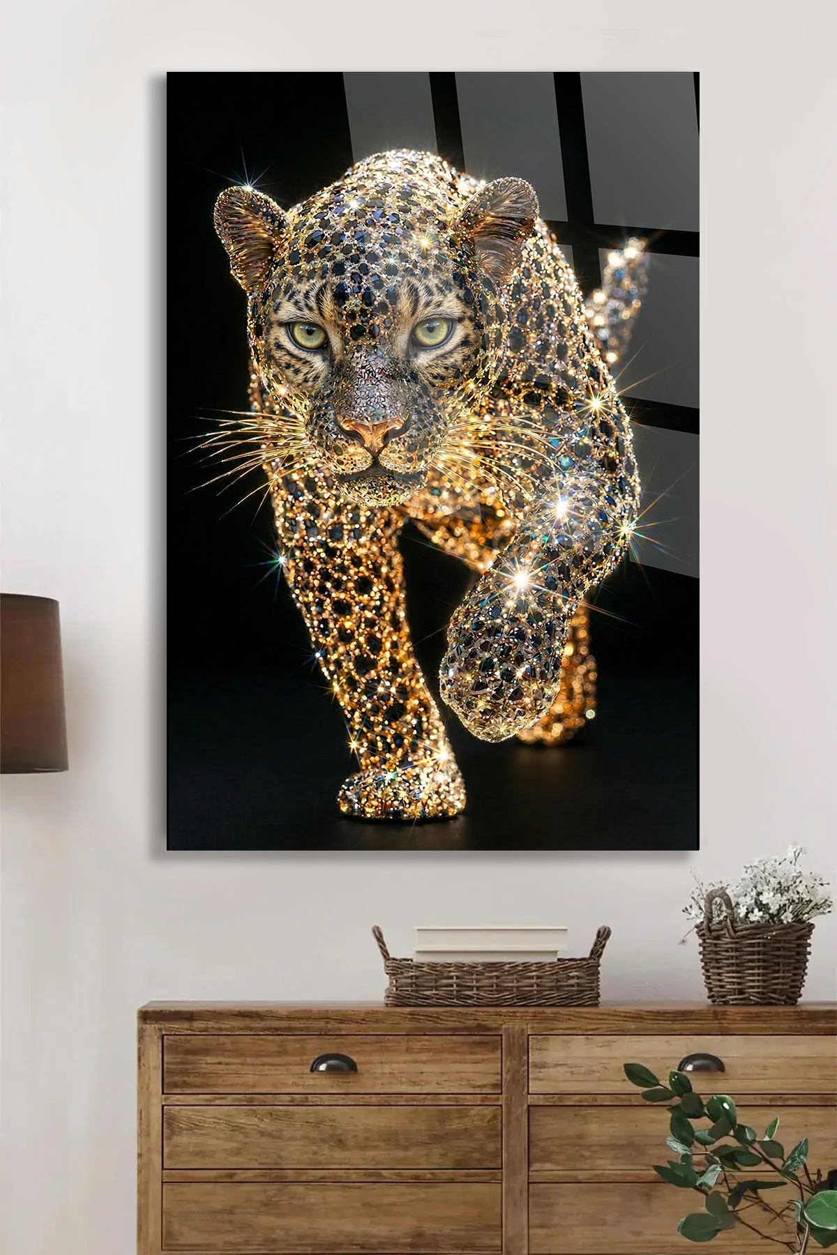 KIRILMAZ CAM TABLO PIRLANTA LEOPAR LÜKS VAHŞİ HAYVAN SANATI
