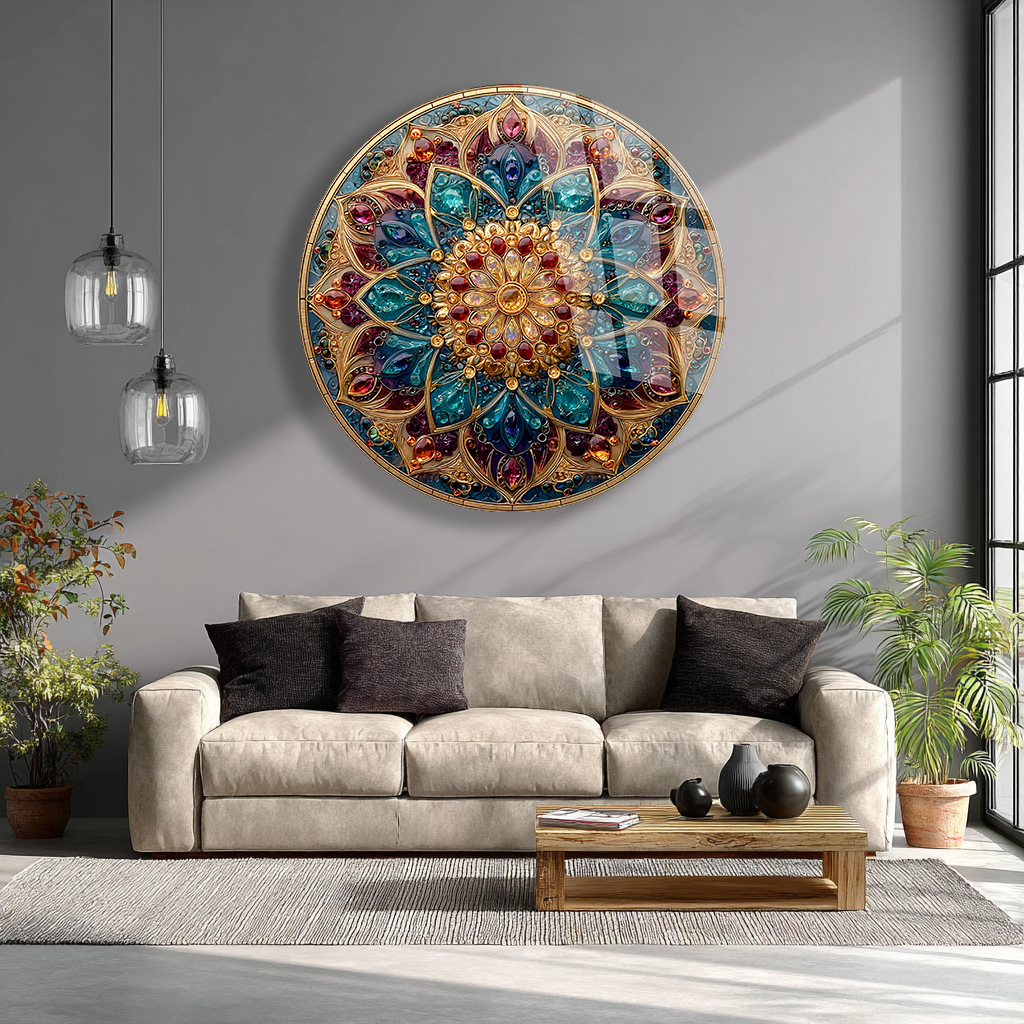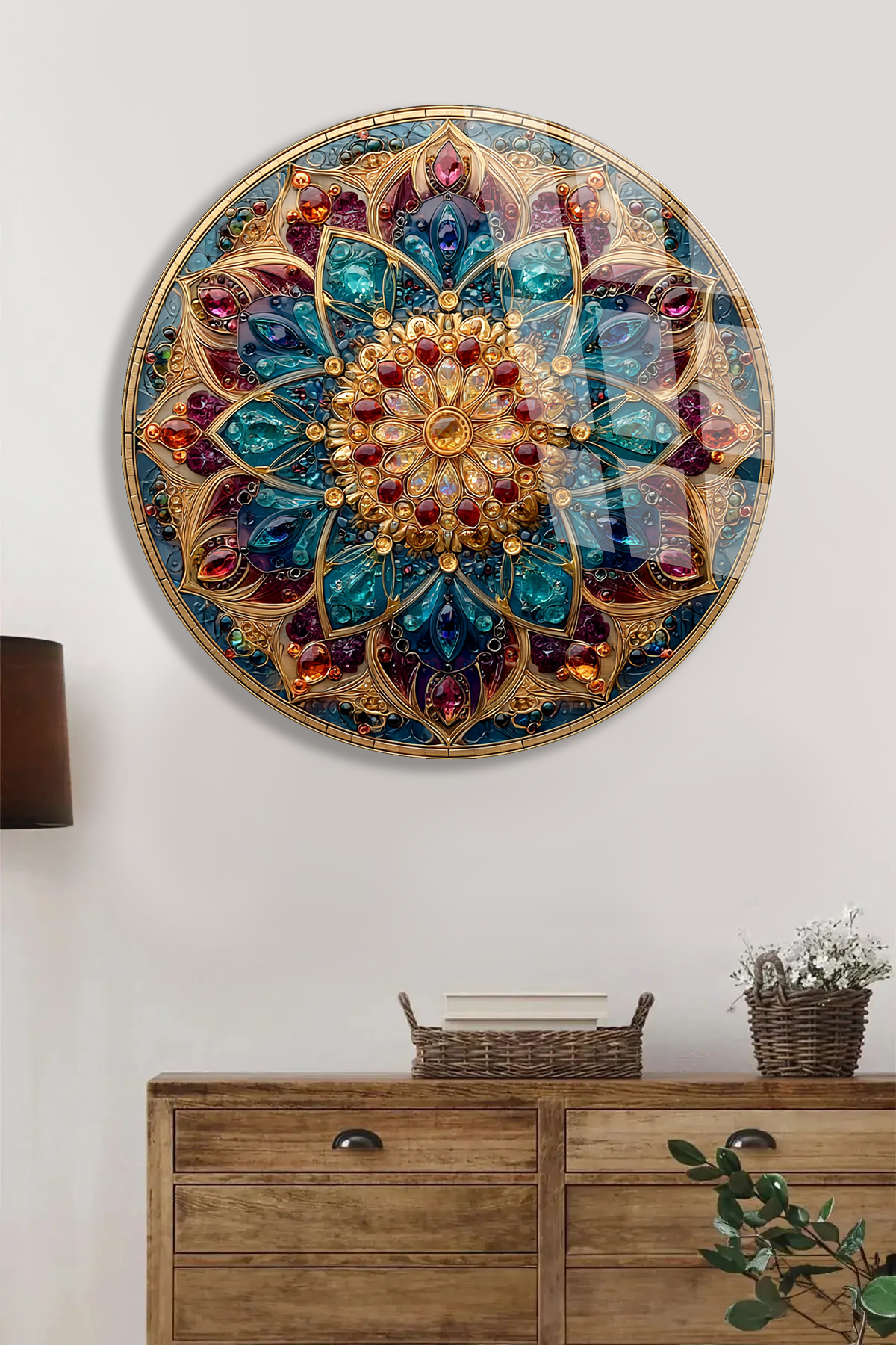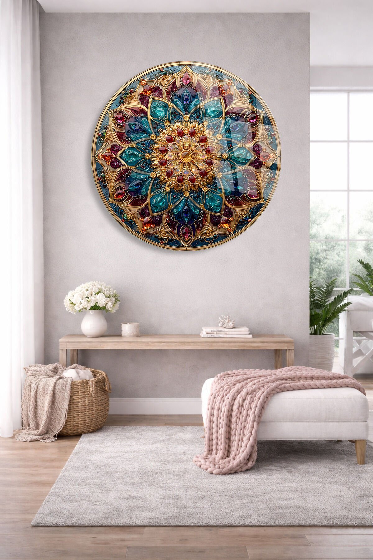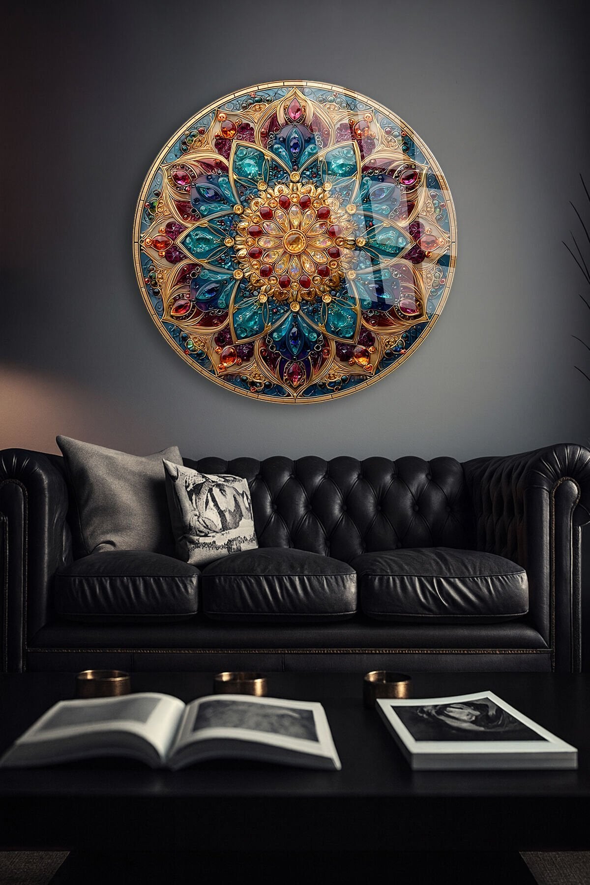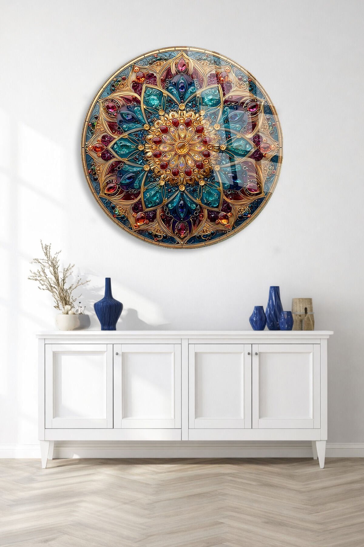 KIRILMAZ CAM TABLO – RENKLİ TAŞLI MANDALA LÜKS MOZAIK SANAT TASARIMI