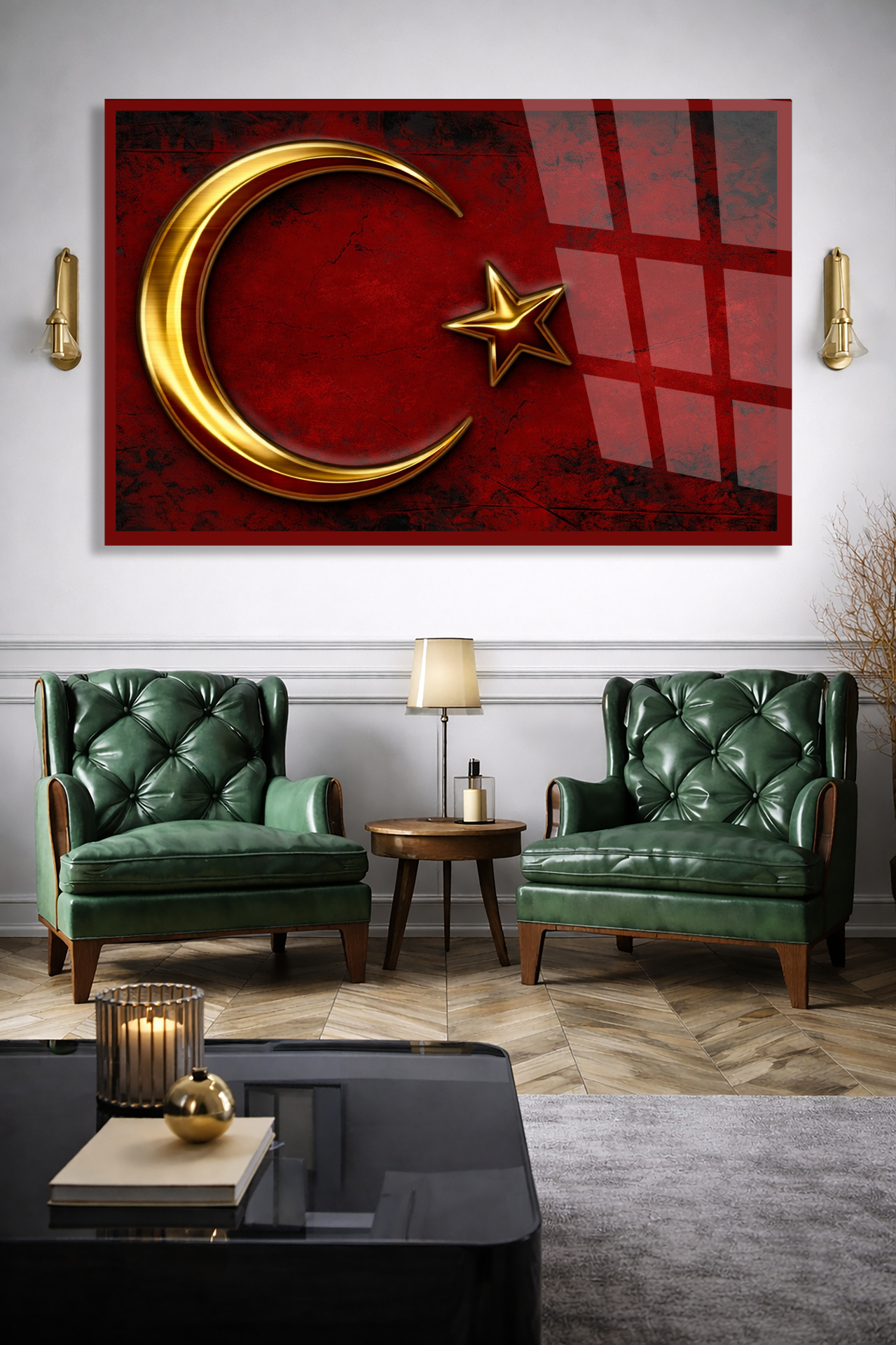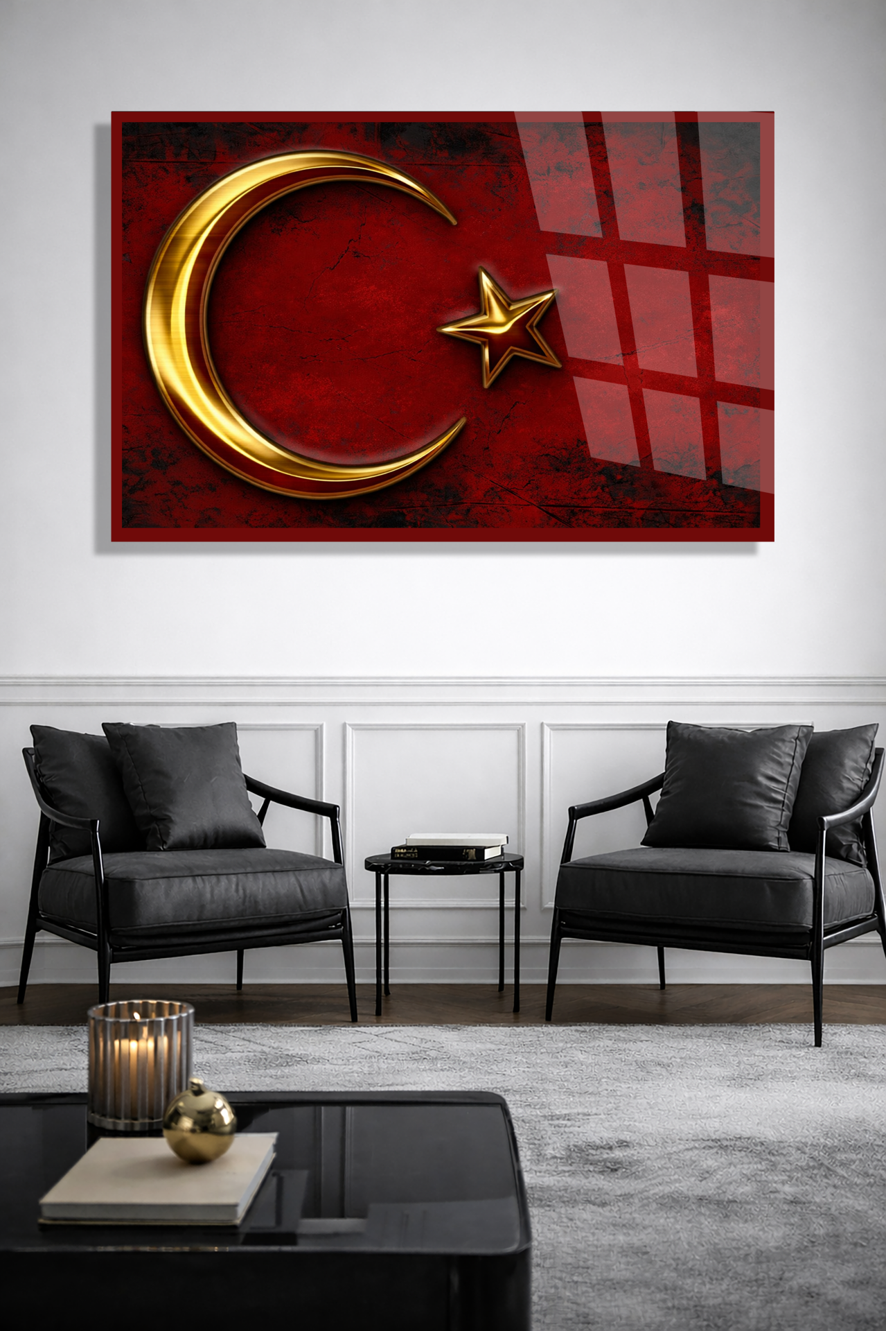 KIRILMAZ CAM TABLO TÜRK BAYRAĞI AY YILDIZ KIRMIZI MİLLİ DUVAR DEKORU