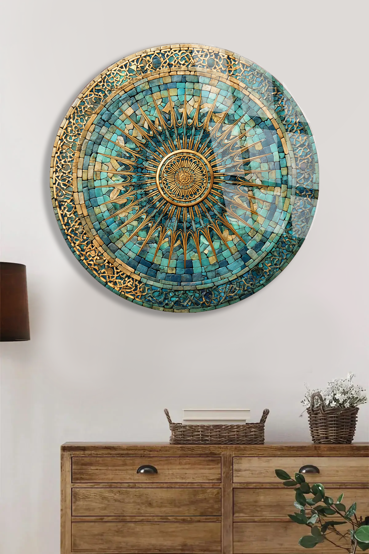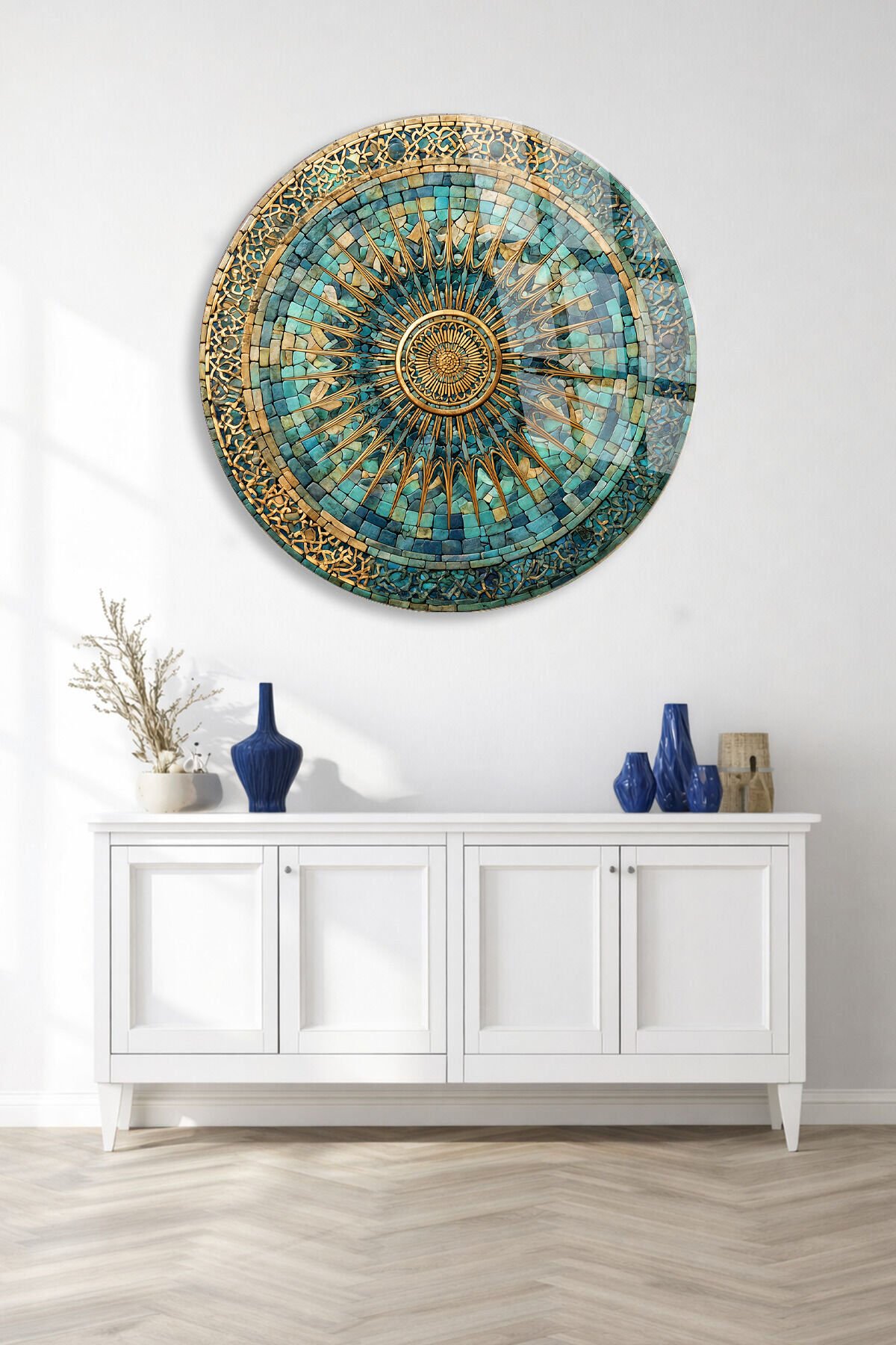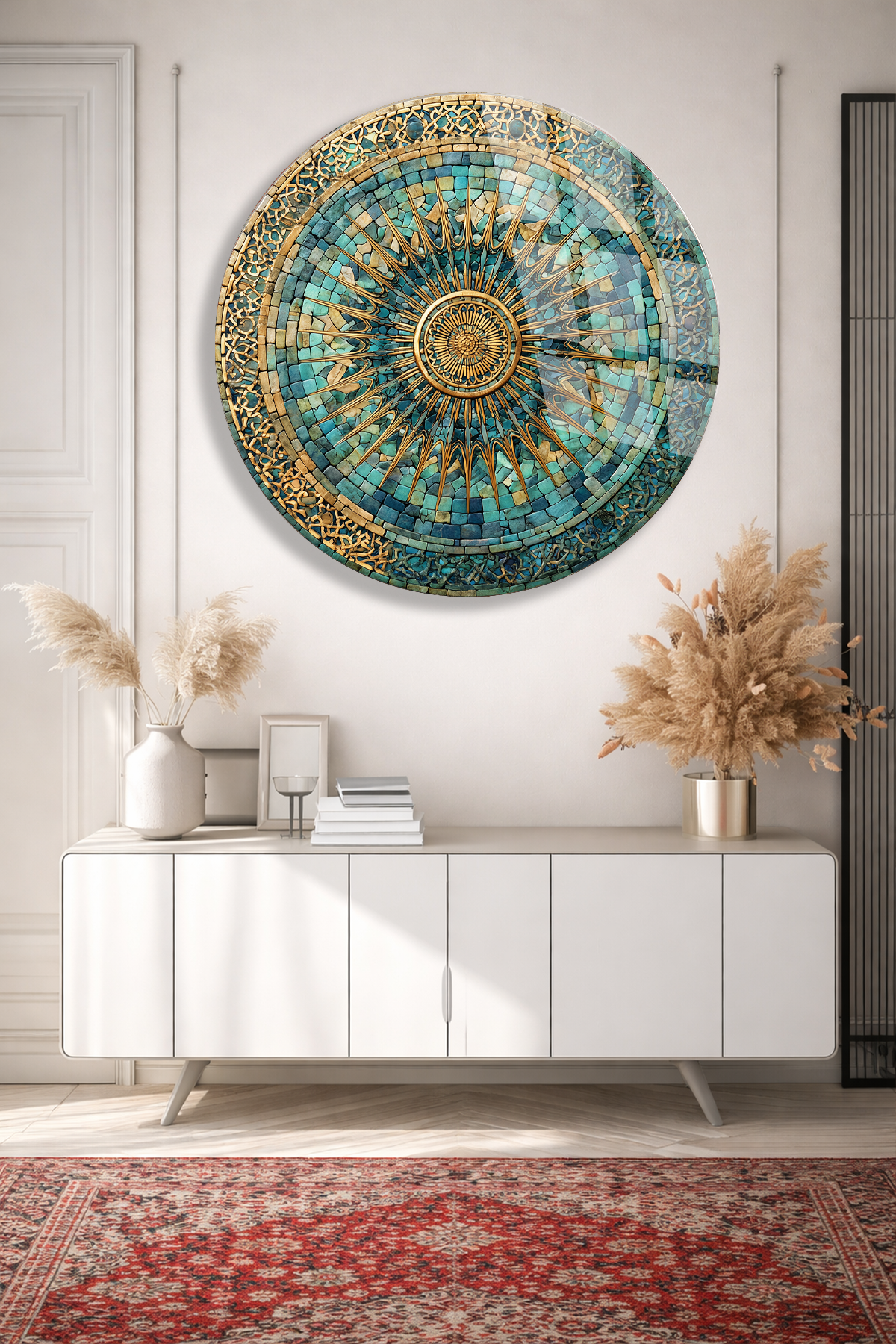 KIRILMAZ CAM TABLO – TURKUAZ ALTIN OSMANLI MOZAİK MANDALA SANAT TASARIMI