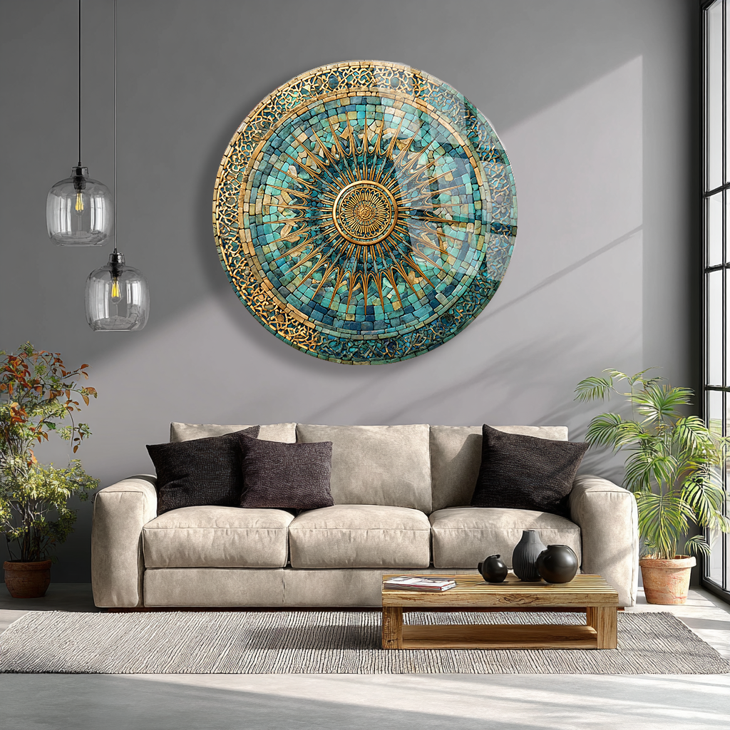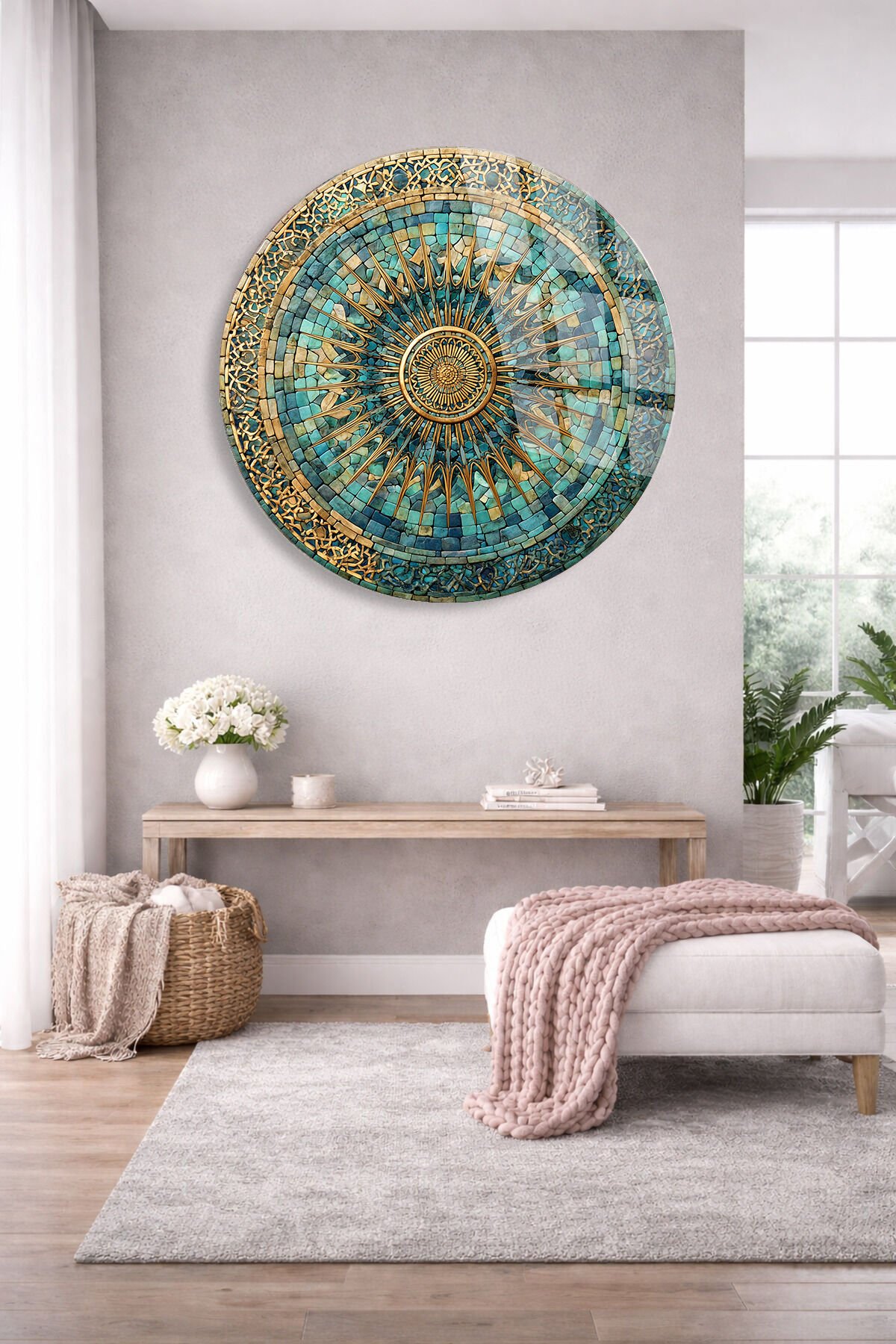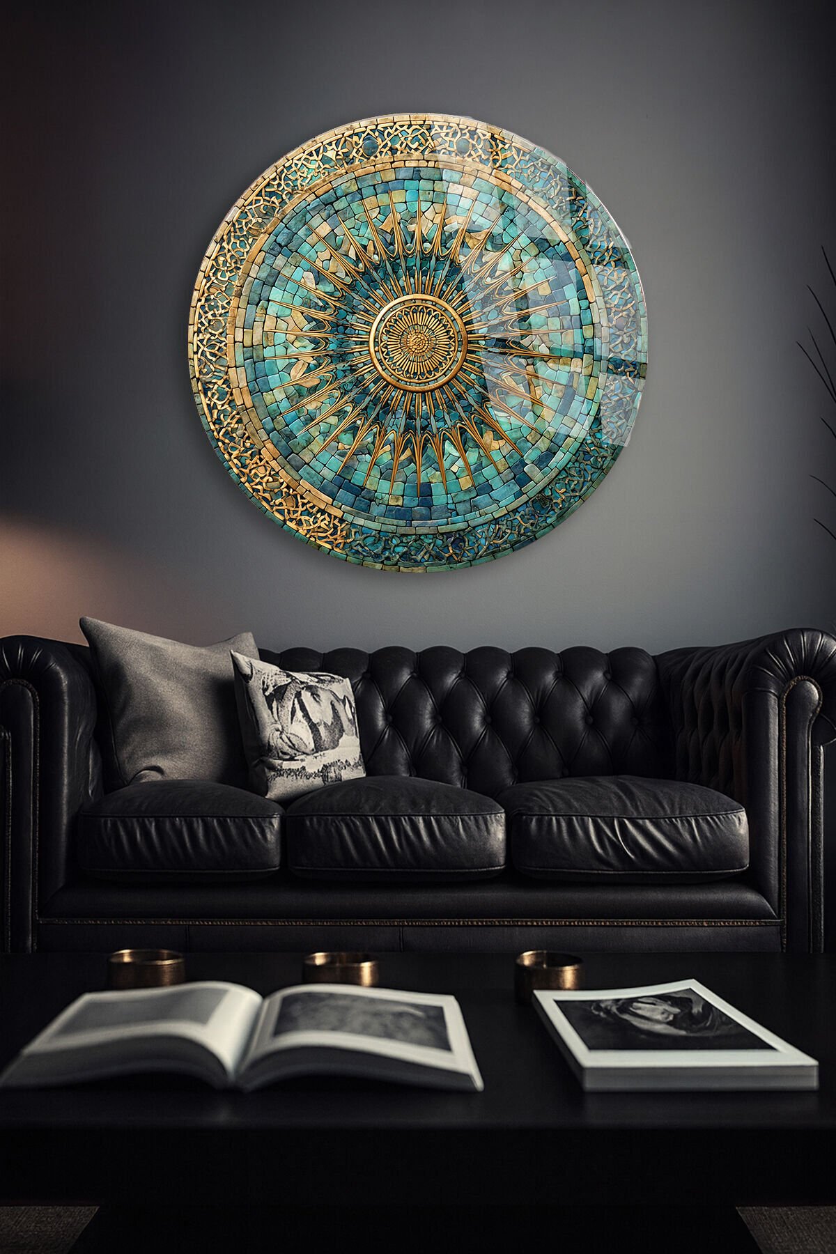 KIRILMAZ CAM TABLO – TURKUAZ ALTIN OSMANLI MOZAİK MANDALA SANAT TASARIMI