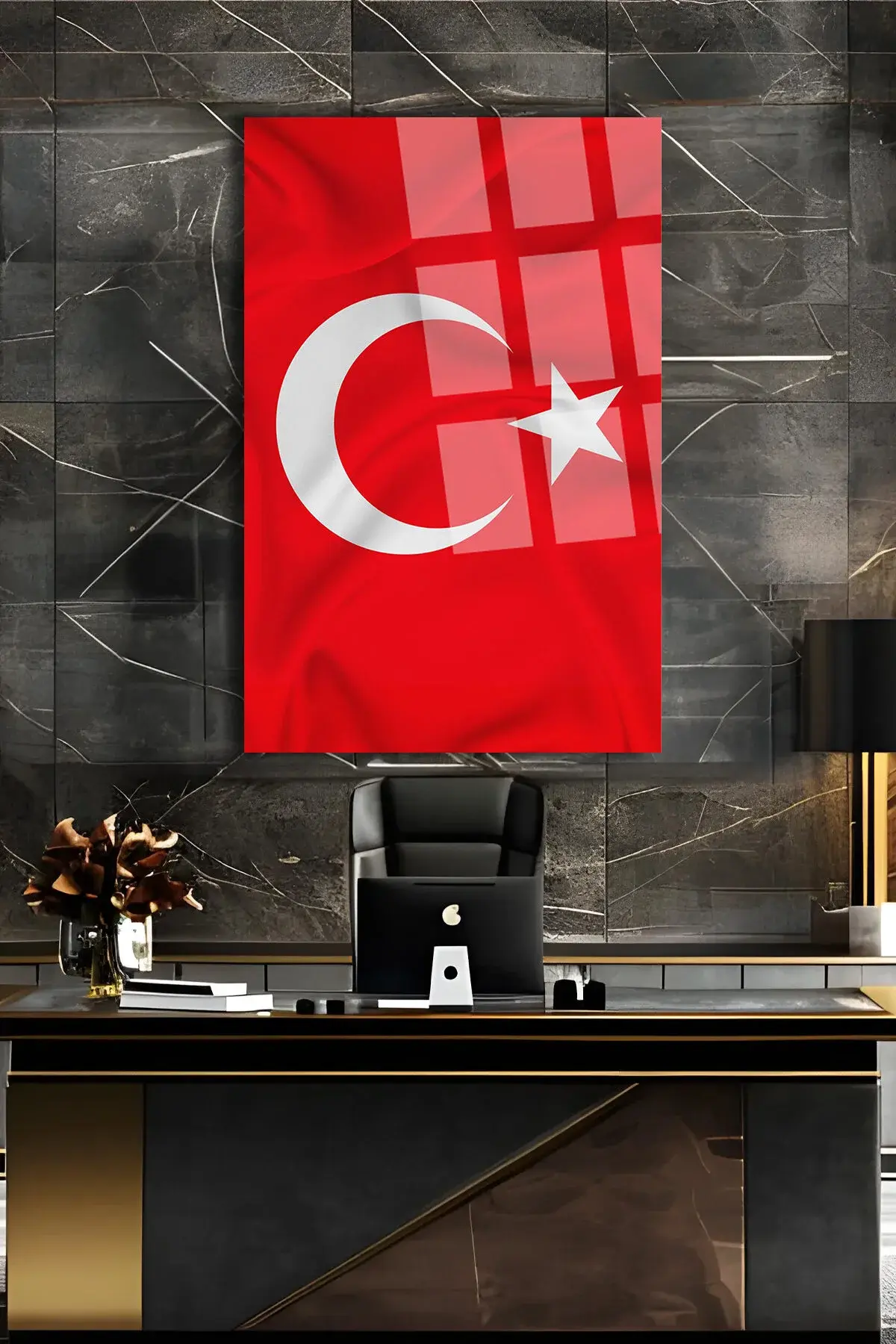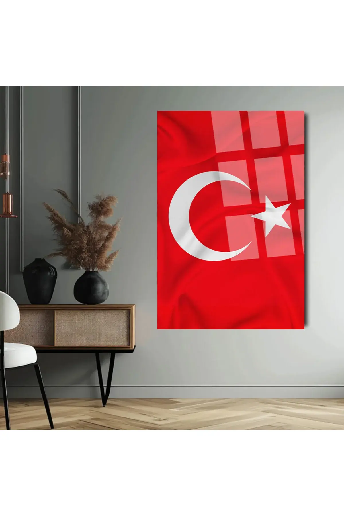 KIRMIZI DİKEY TÜRK BAYRAĞI TABLOSU 4MM KIRILMAZ CAM TABLO EV İŞ YERİ OFİS HEDİYESİ Kırmızı