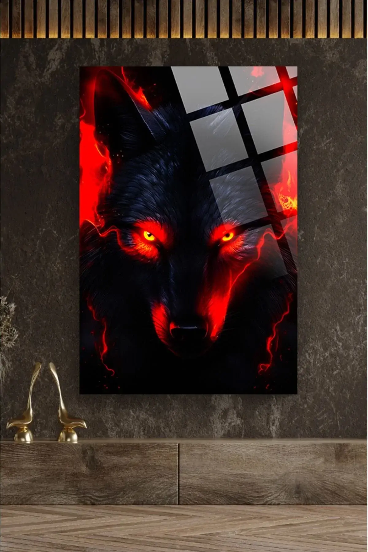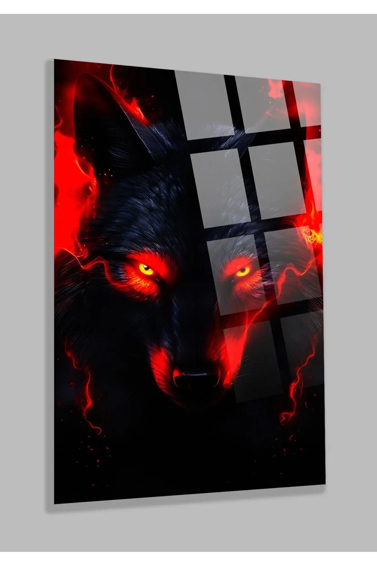 Kırmızı Gözlü Kurt 4mm Lüks Kırılmaz Temperli Yüksek Çözünürlüklü Cam Tablo