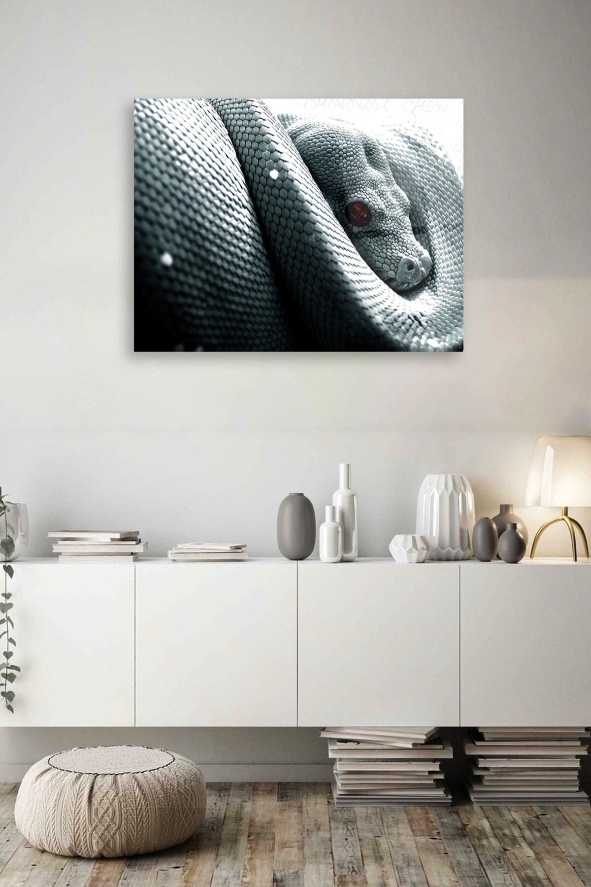 Kırmızı Gözlü Yılan Cam Tablo Renkli