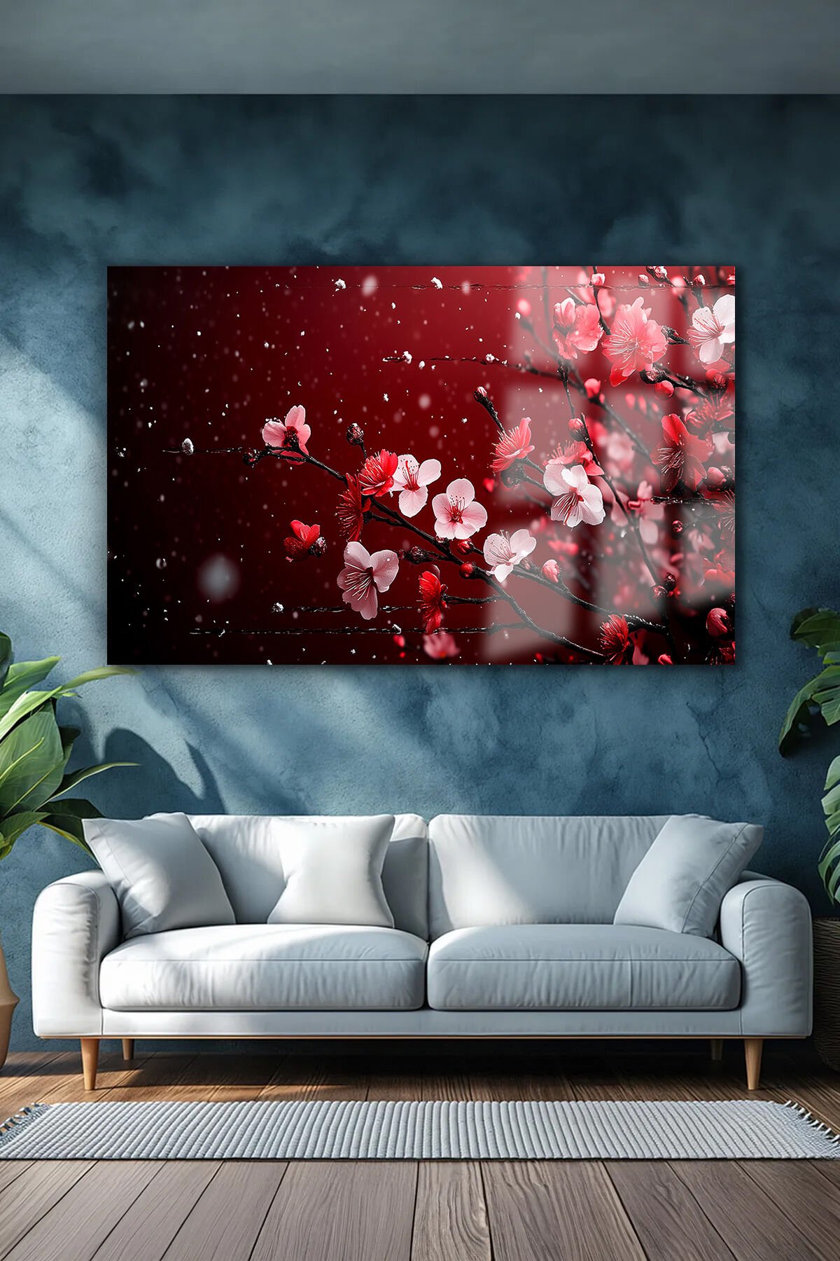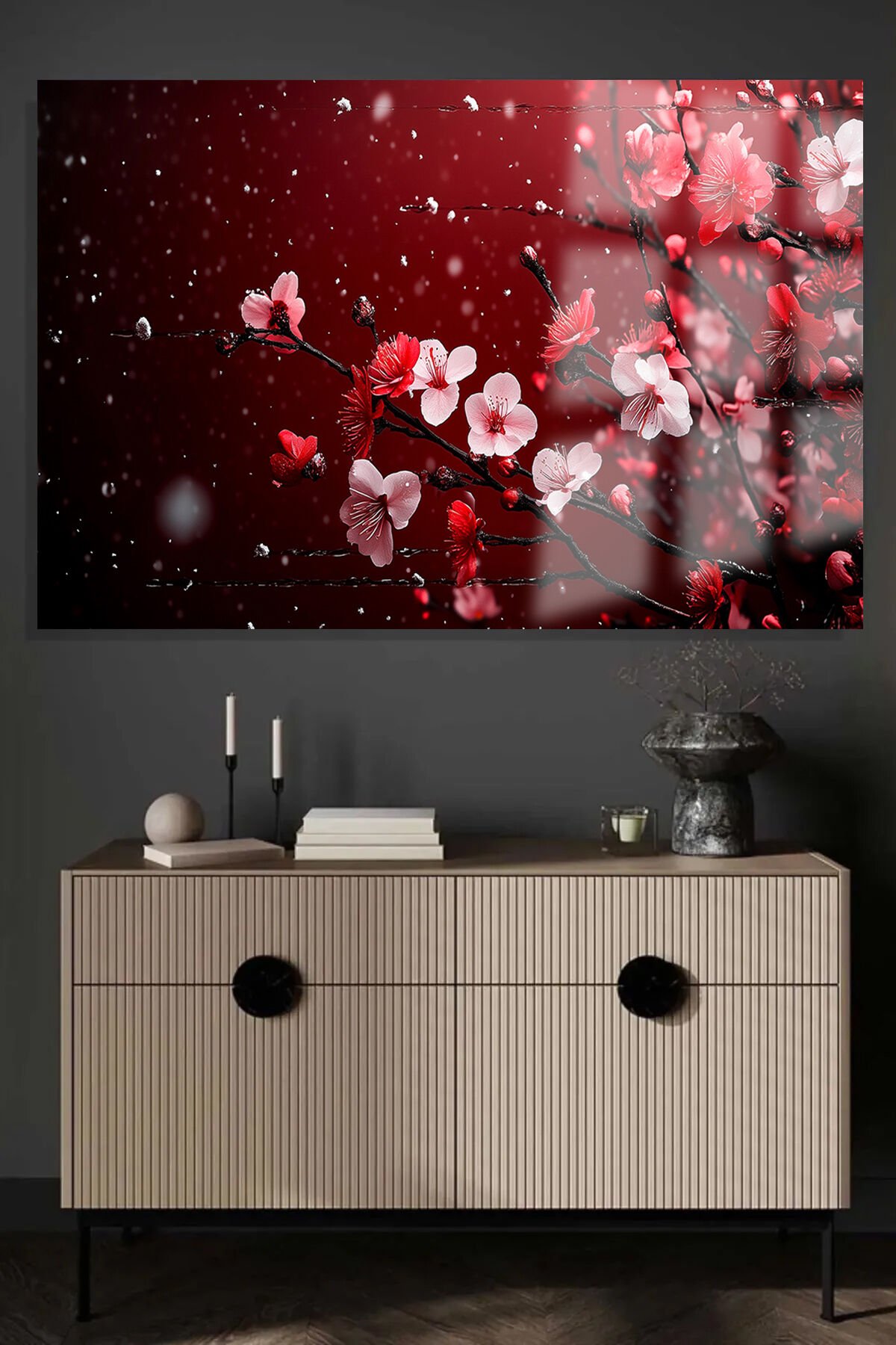 KIRMIZI VE SİYAHIN HARİKA UYUMU AÇAN ÇİÇEKLER LÜKS KIRILMAZ CAM TABLO EV HEDİYESİ TABLO