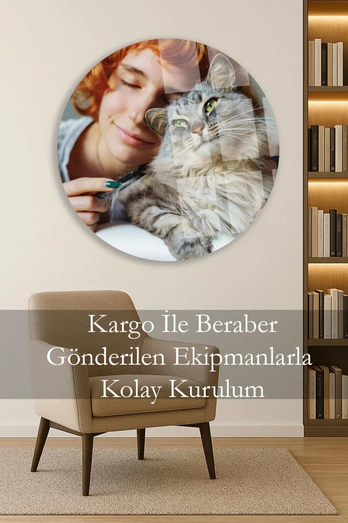 KİŞİYE ÖZEL MODERN YUVARLAK KIRILMAZ CAM TABLO LOGO BASKI, ÖZEL FOTOĞRAF BASKI EV HEDİYESİ TABLO Beyaz