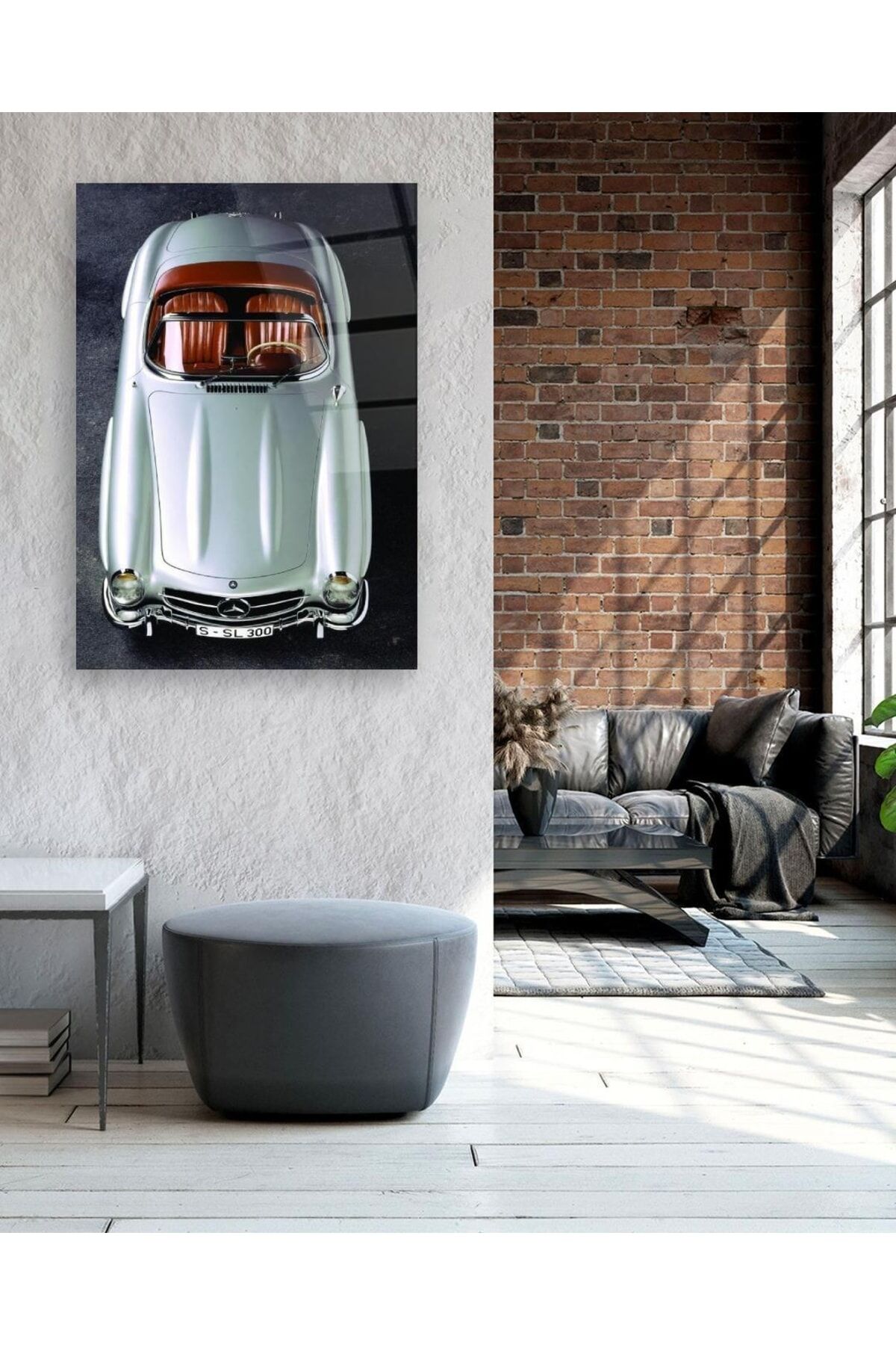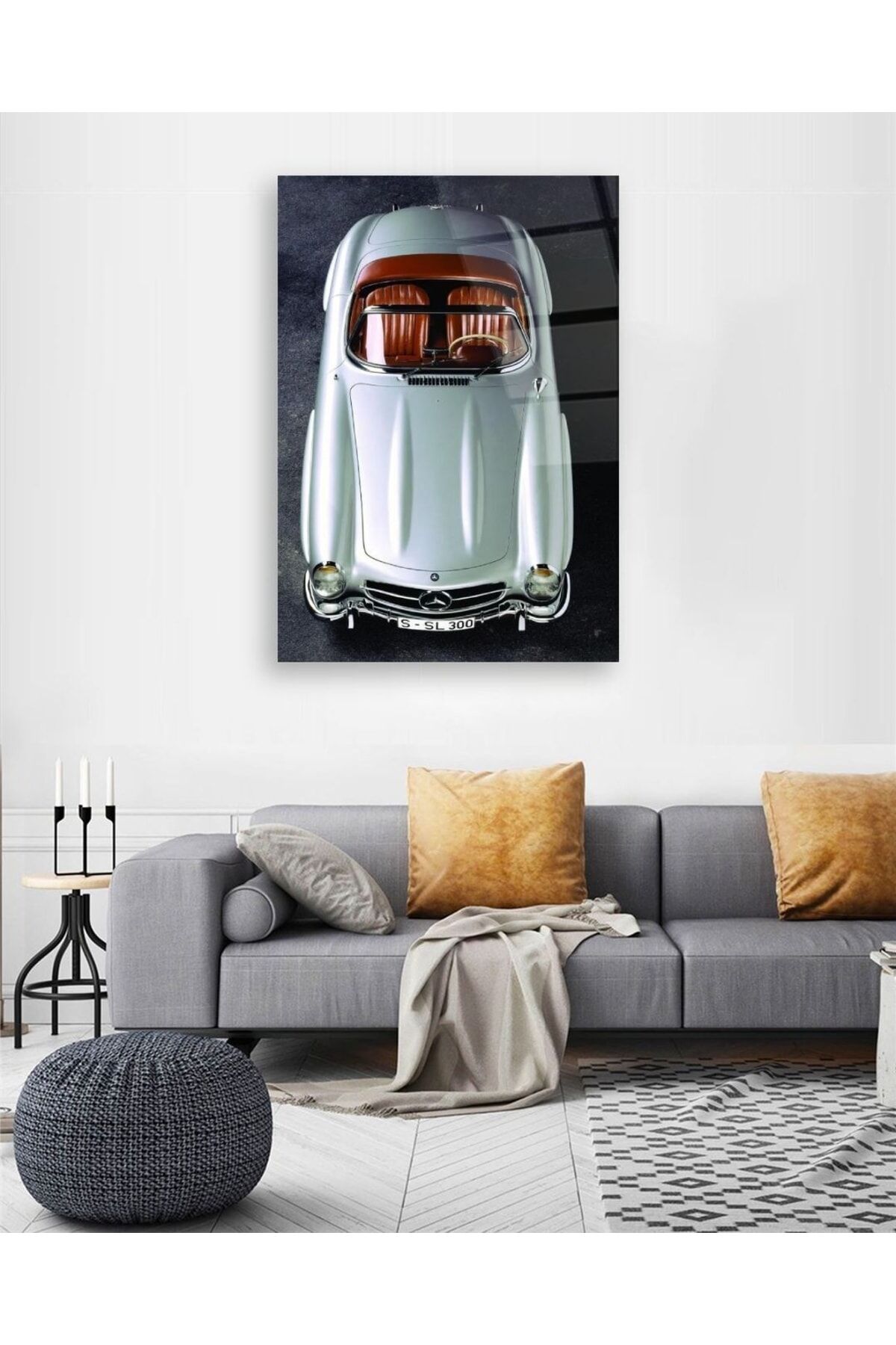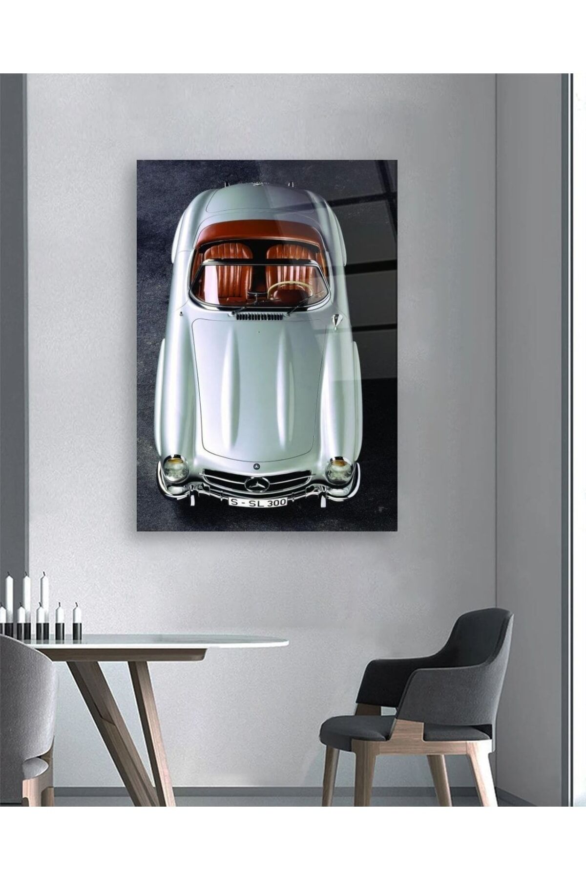 Klasik Araba Dikey Cam Tablo Renkli