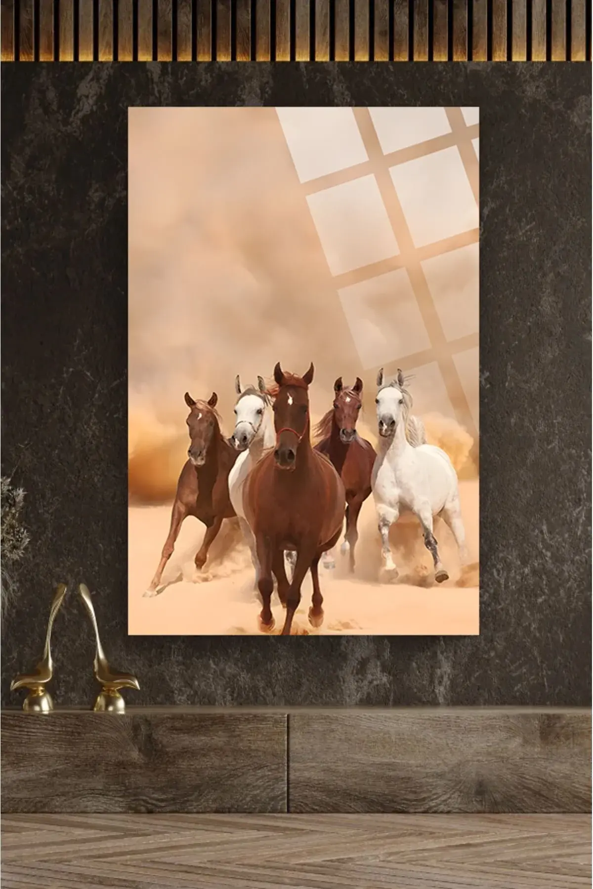 Koşan Asil Yarış Atları 4mm Lüks Kırılmaz Temperli Yüksek Çözünürlüklü Cam Tablo