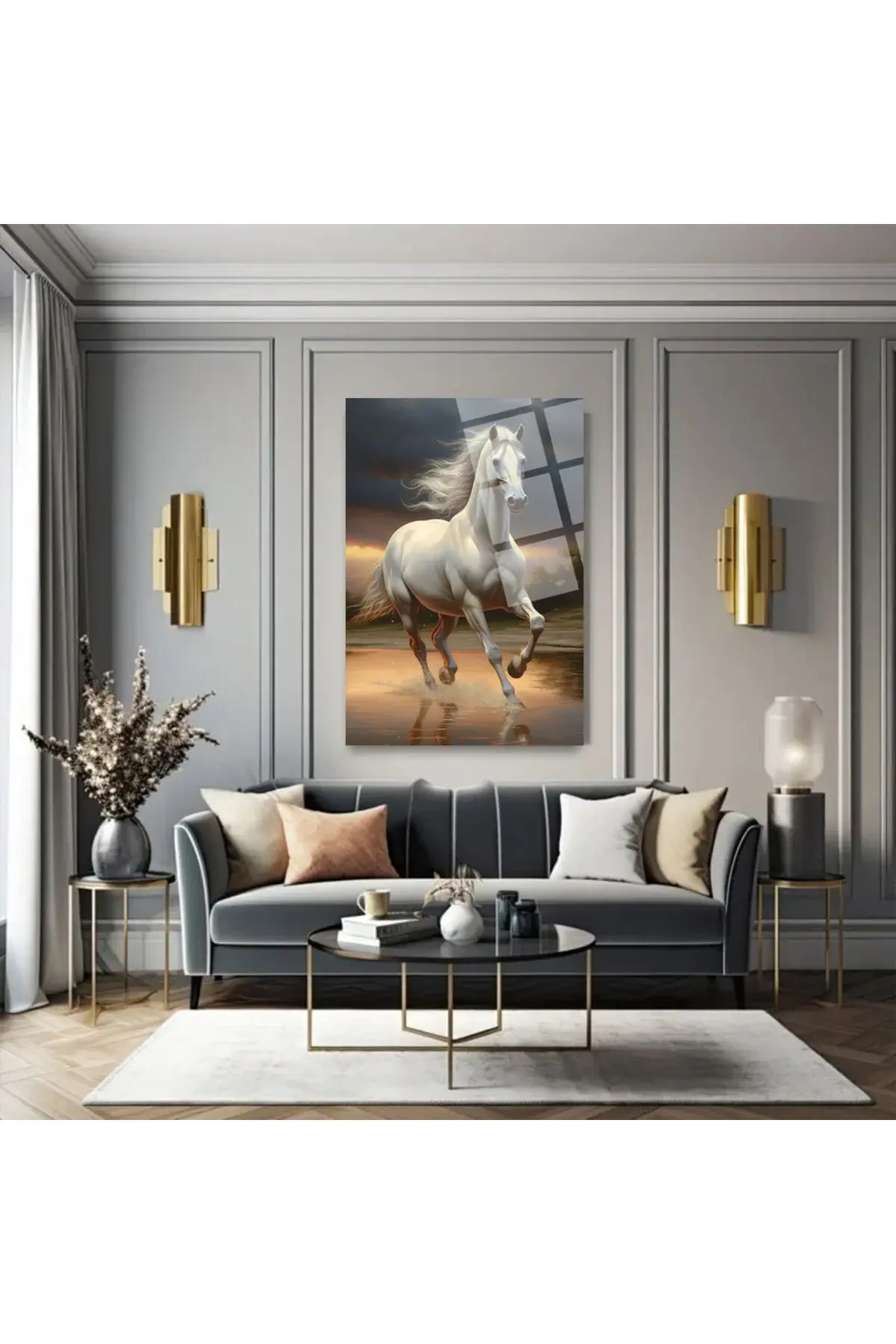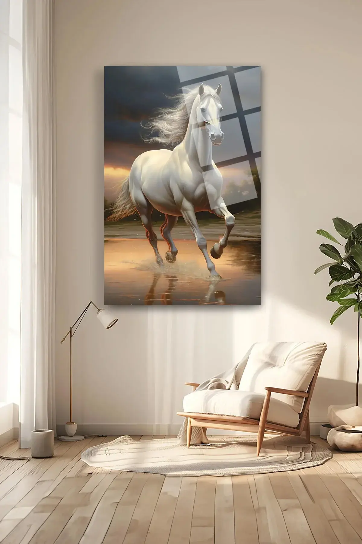KOŞAN AT ASİL AT KIRILMAZ LÜKS CAM TABLO ULTRA YÜKSEK ÇÖZÜNÜRLÜKLÜ EV HEDİYESİ TABLO Kahverengi